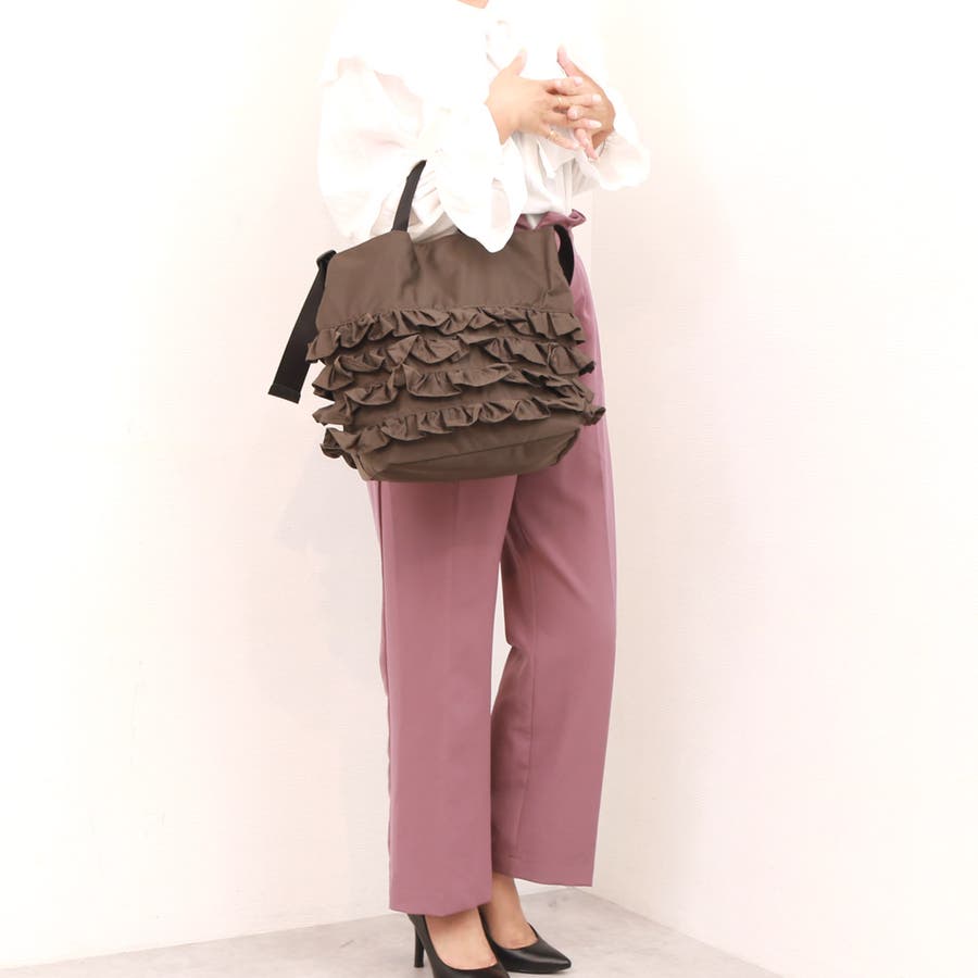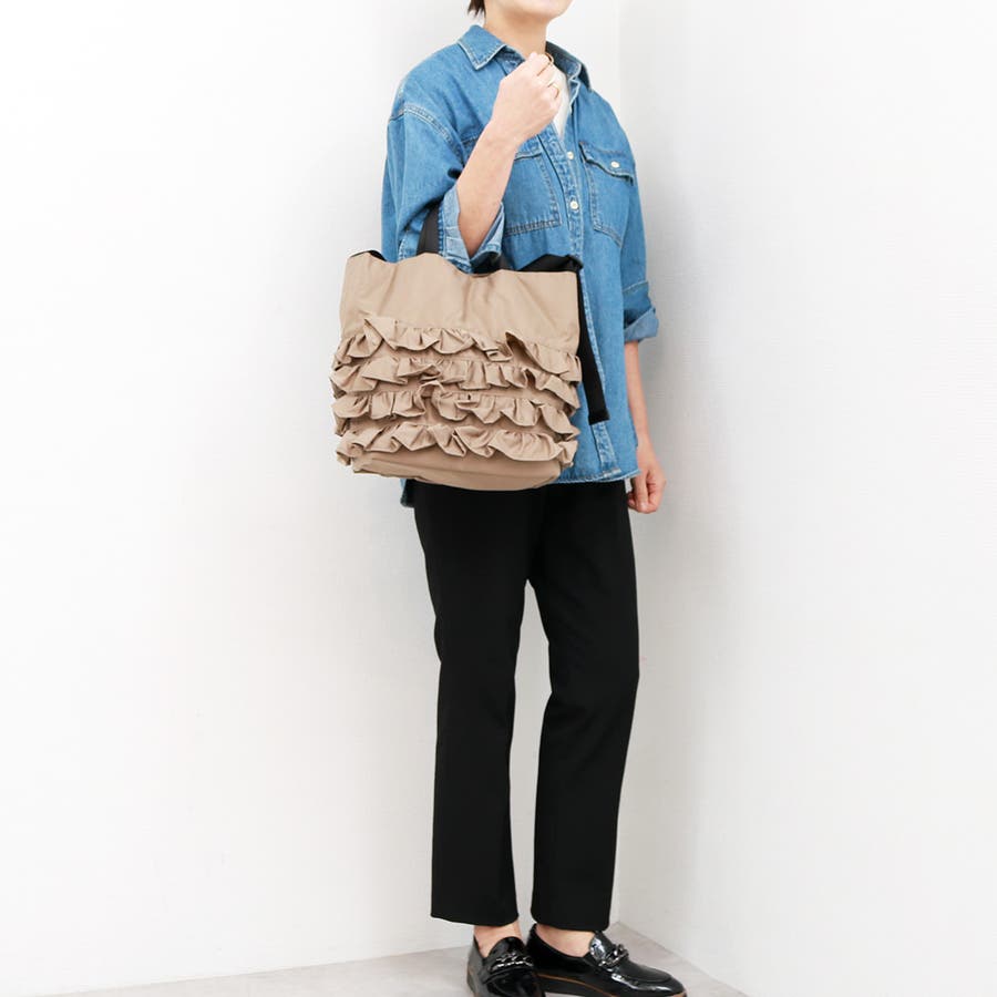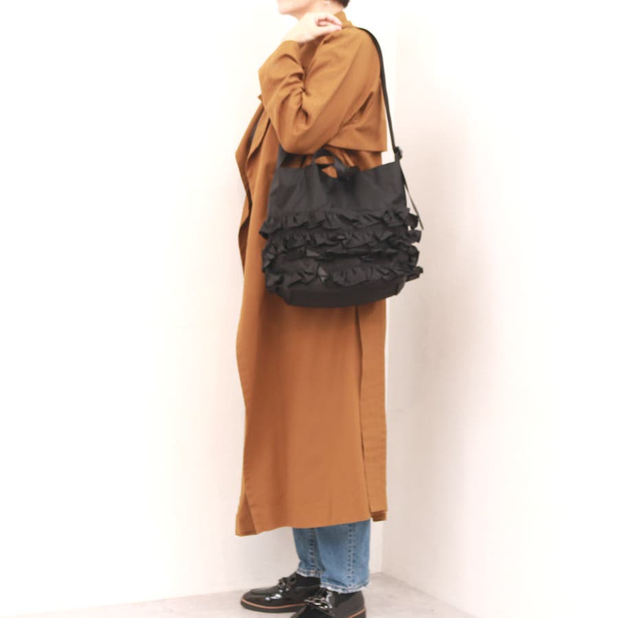 カラートーンが抑えてあるので甘くなりすぎないフリルトートに仕上がりました。