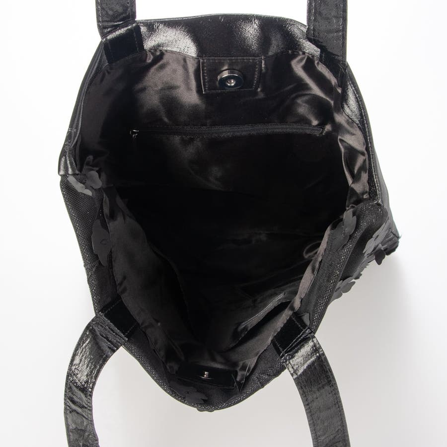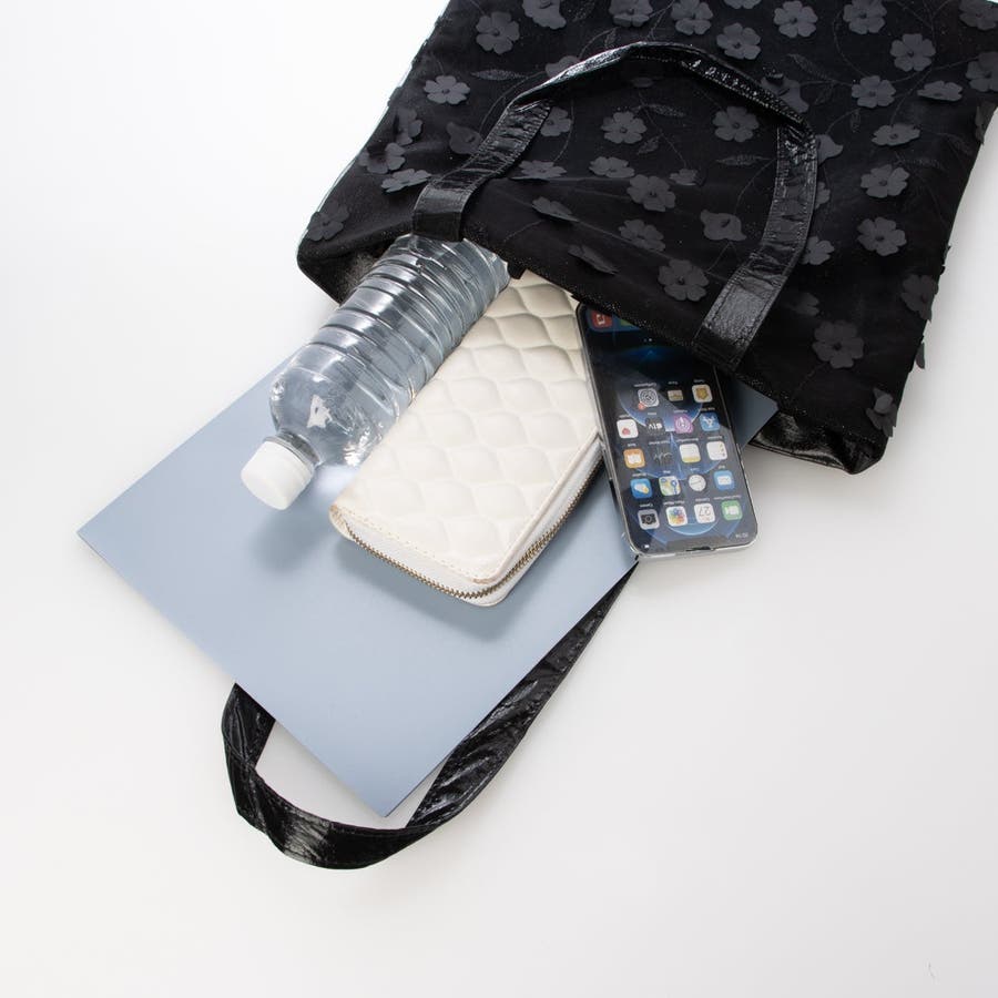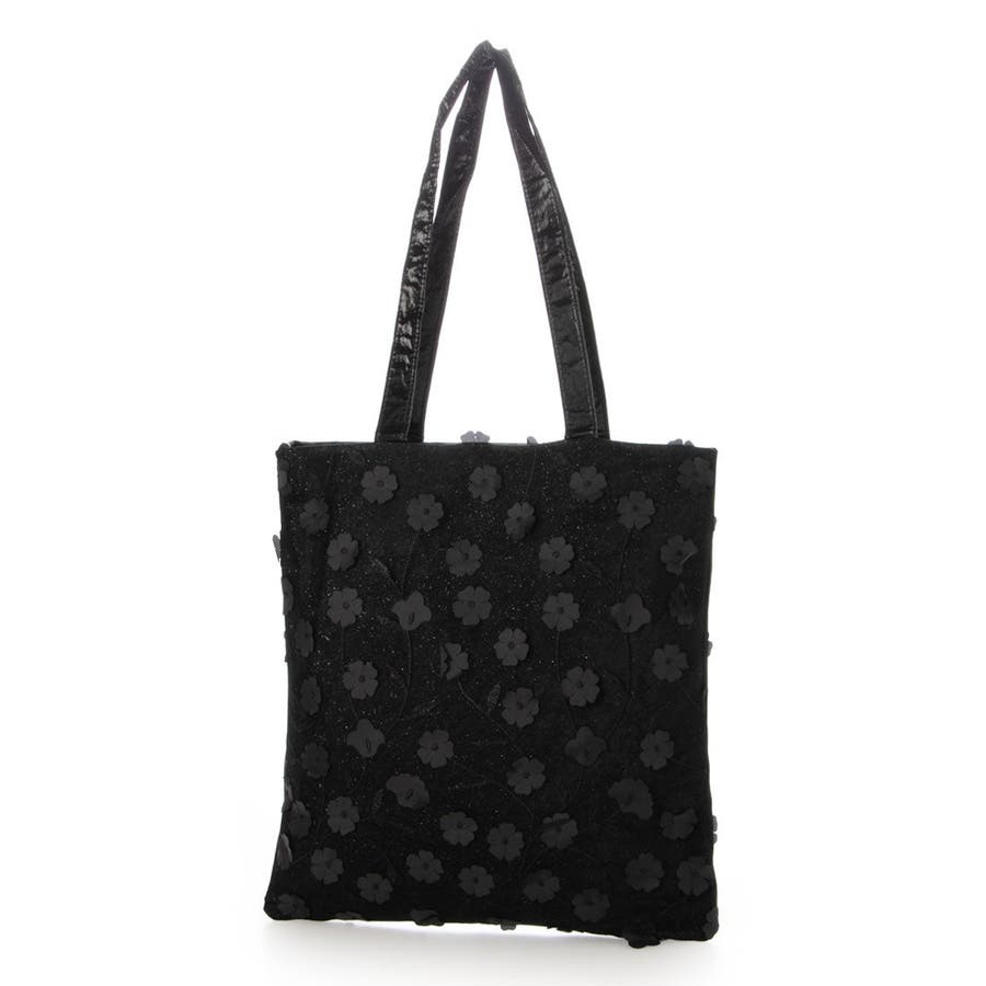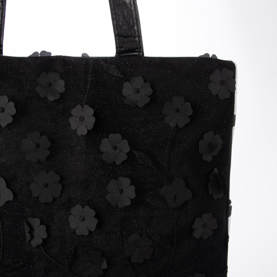 チュール素材にフラワーモチーフと刺繍をあしらったトートバッグ。