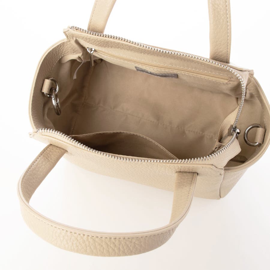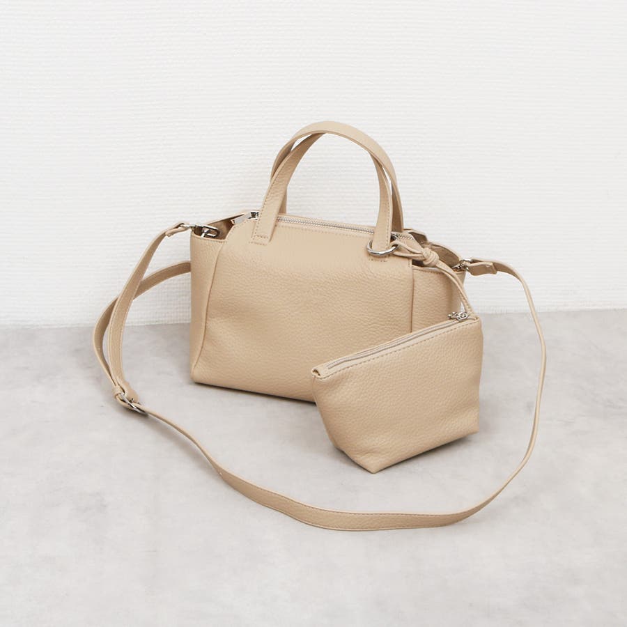 シボ加工をかけたソフトな風合いの合皮を使ったミニボストン。