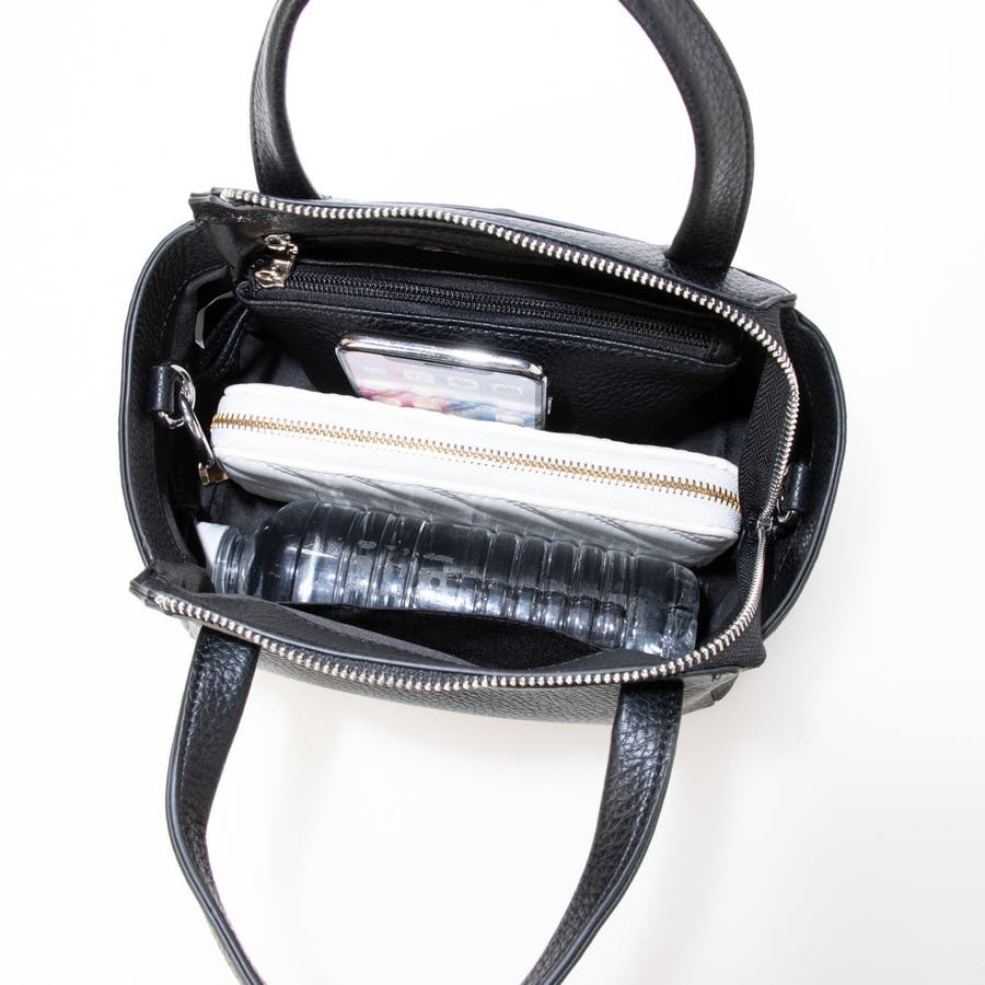 コンパクトなサイズながらも長財布や500mlボトルが入るのでデイリーにも使いやすく、ショルダーやポーチを外せば晴れの日のイベントにも使って頂けます。
