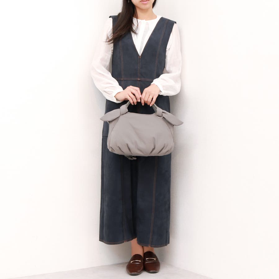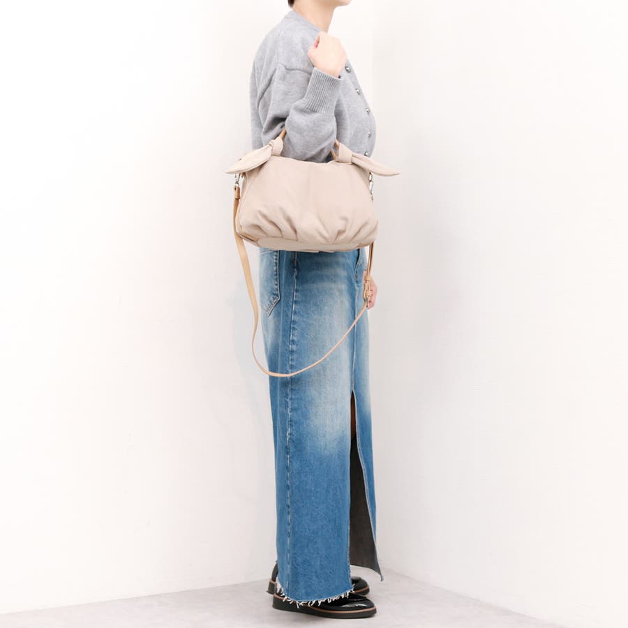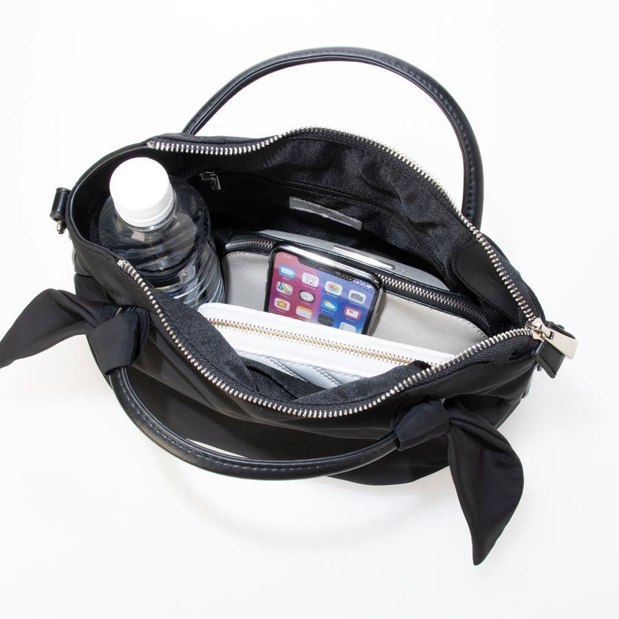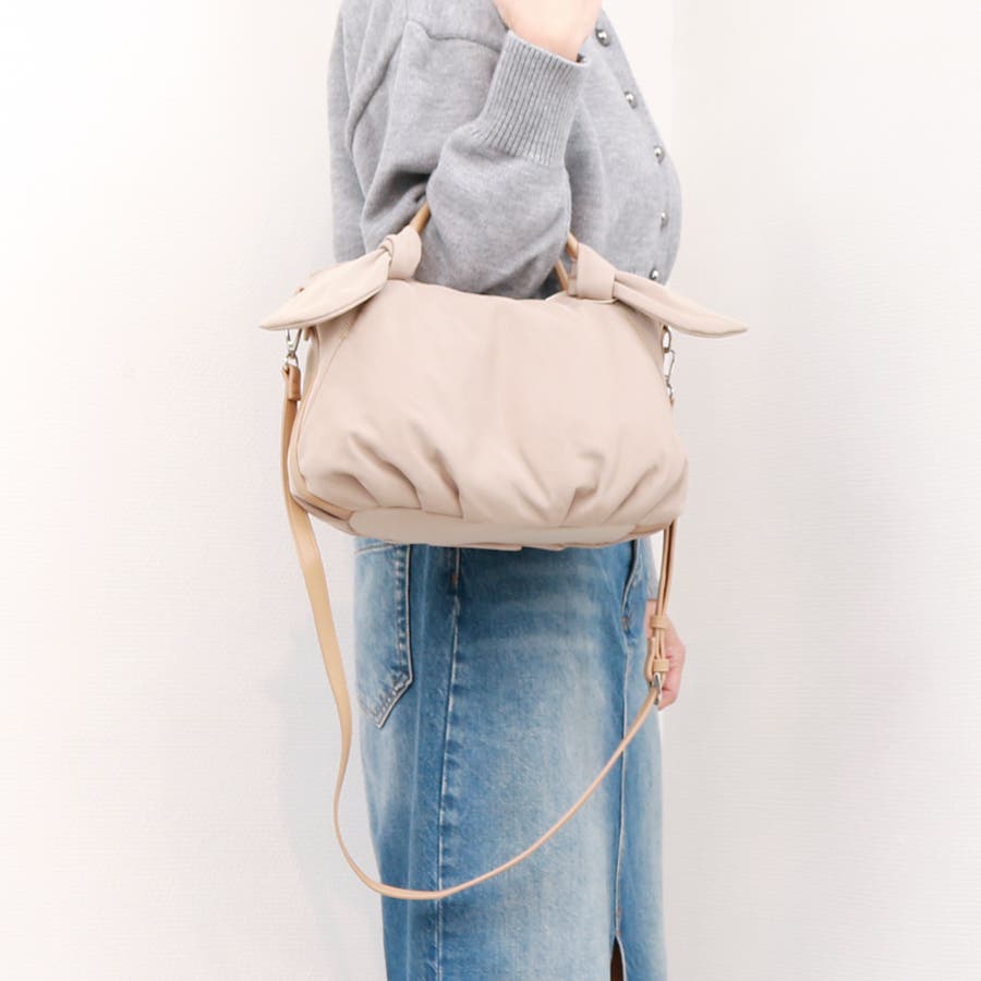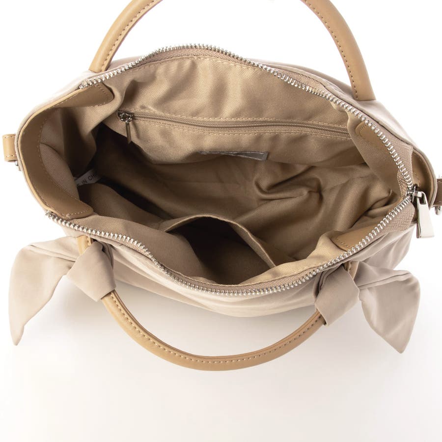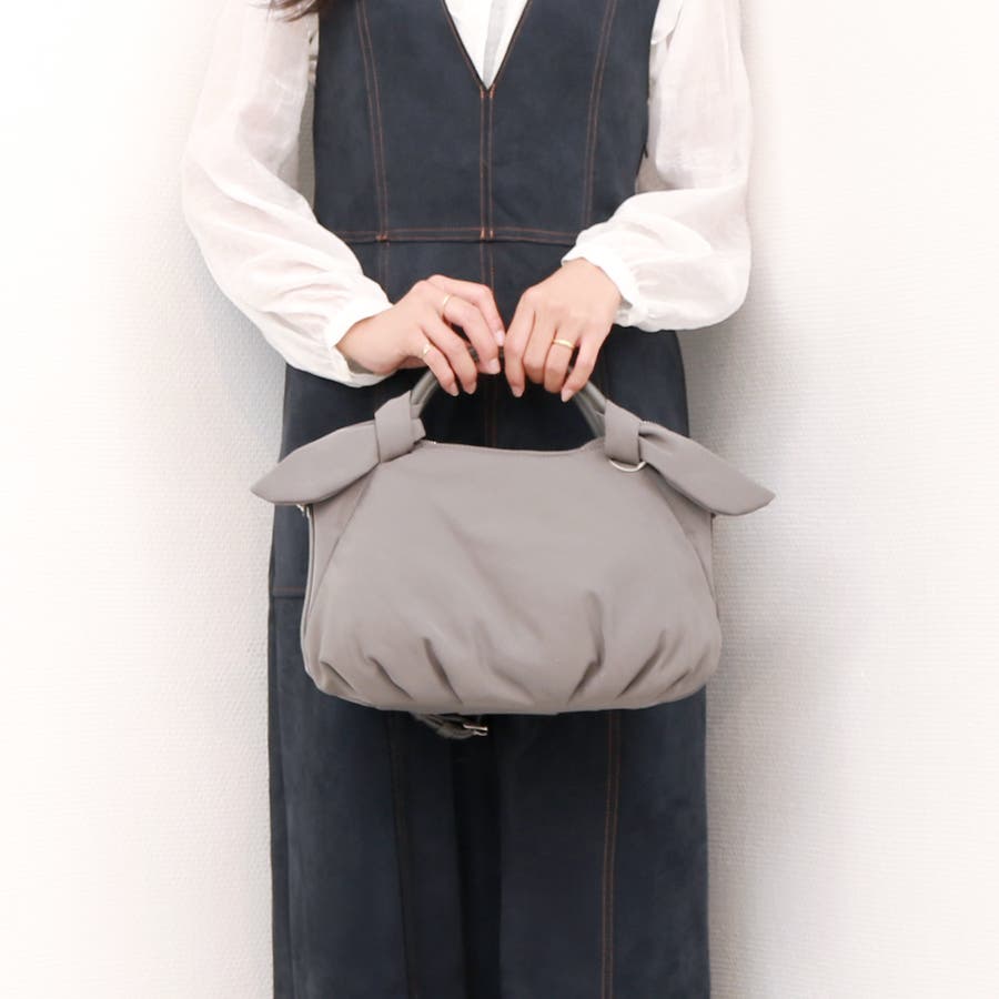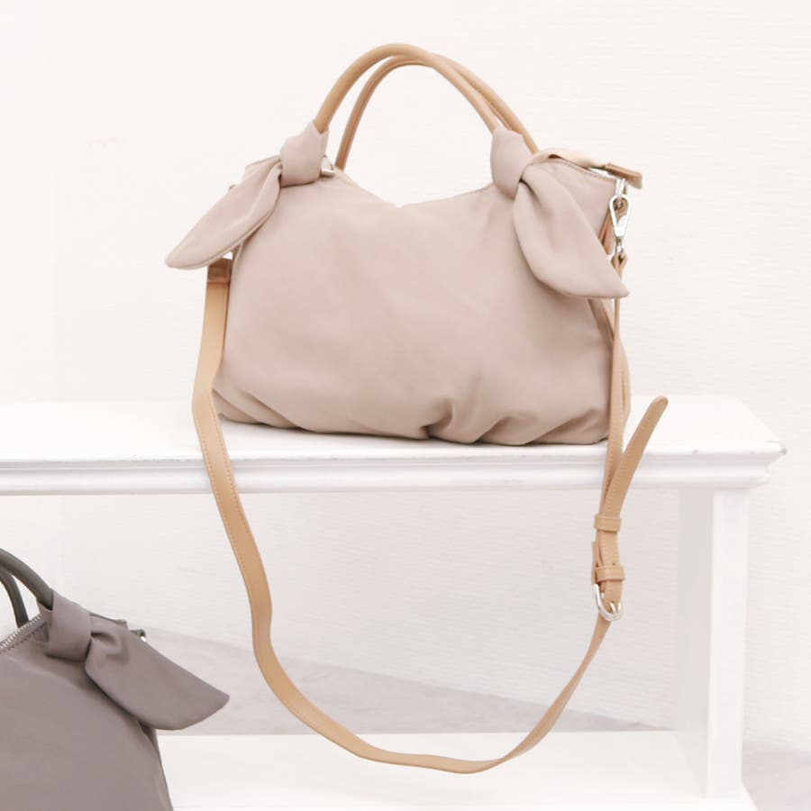 ハンドル部分の結びリボンがポイントになった2wayトートバッグ。
