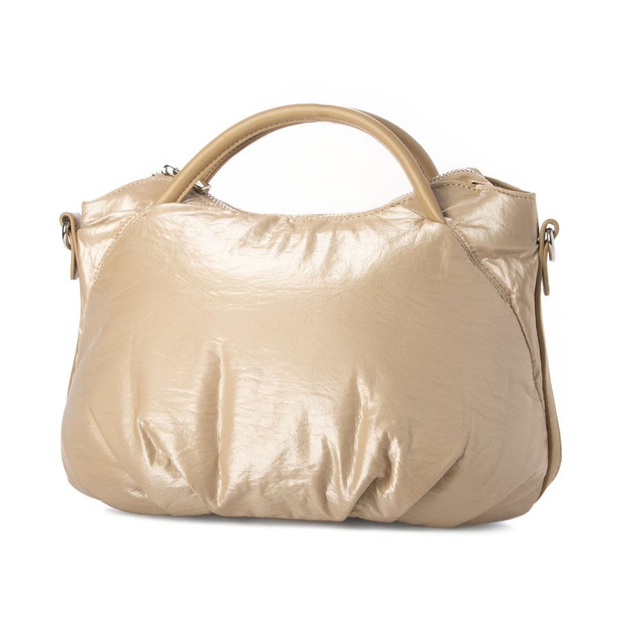 シンプルな見た目とメタリックのぷっくりとしたフォルムが可愛いミニトート。
