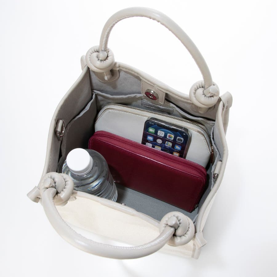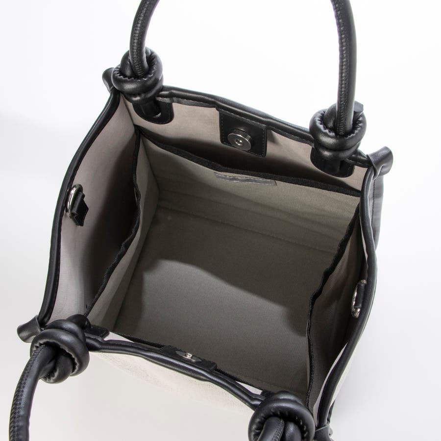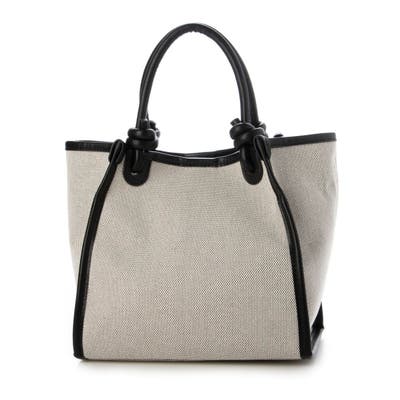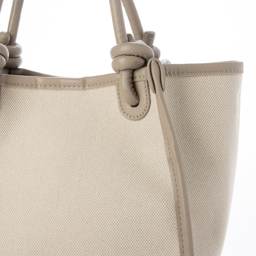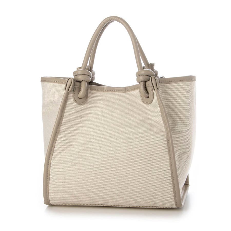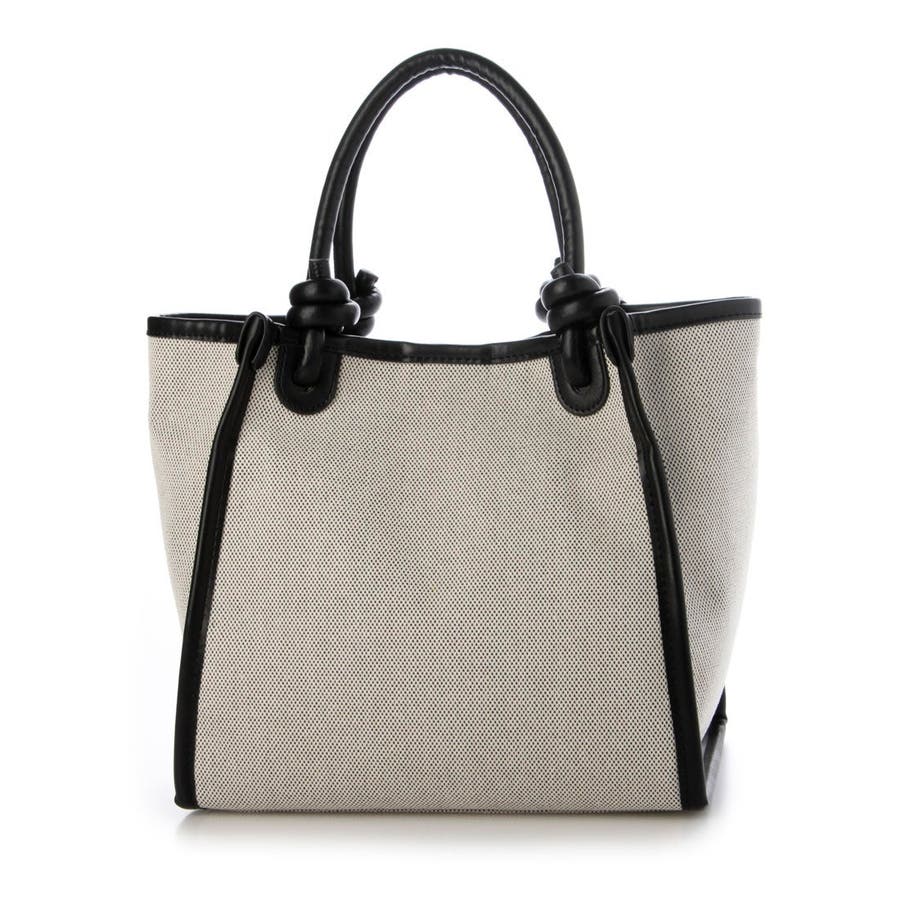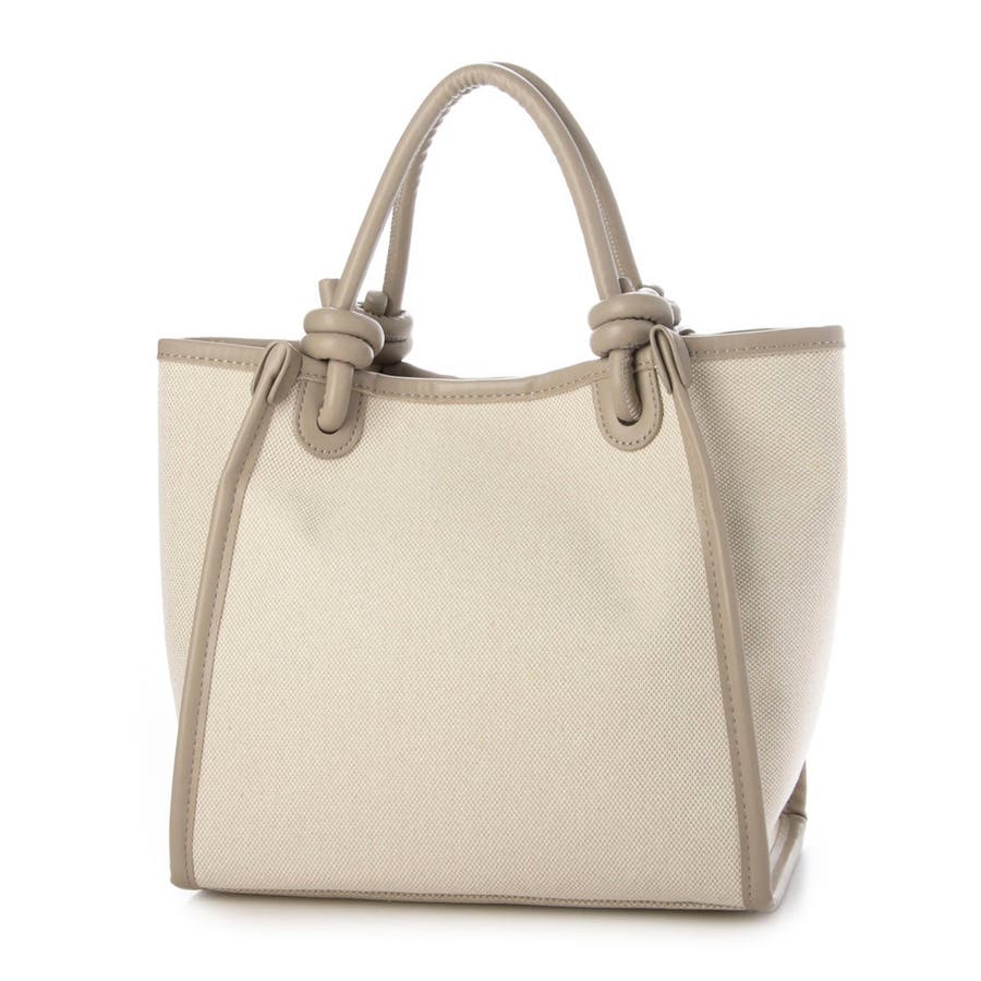 キャンバスのシンプルなボディにノットハンドルがアクセントになった2wayトートバッグ。