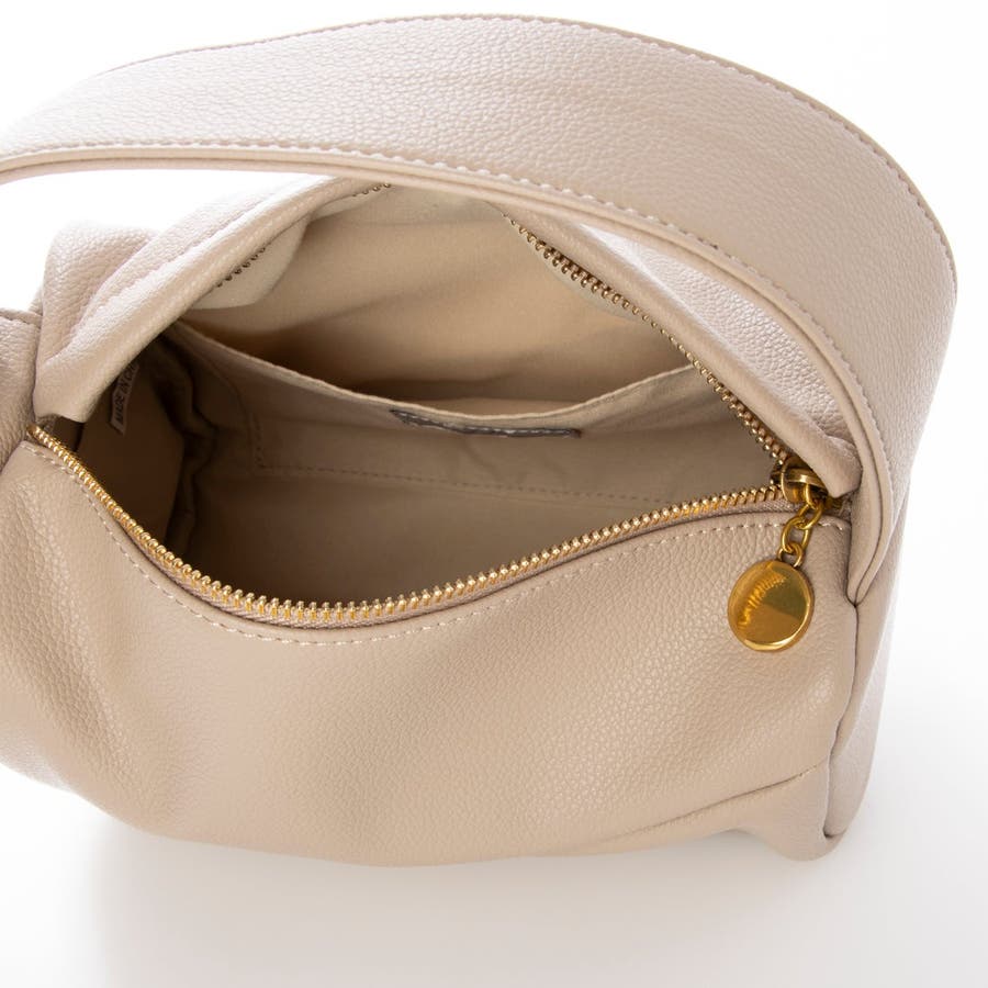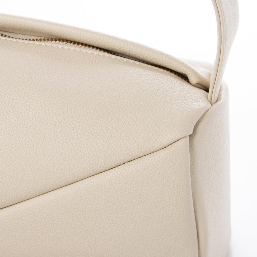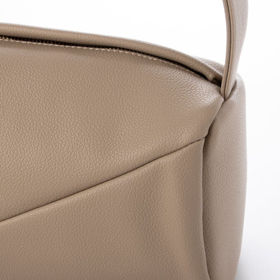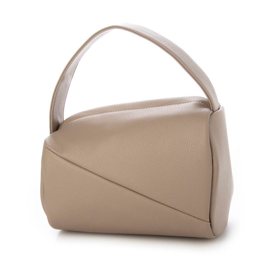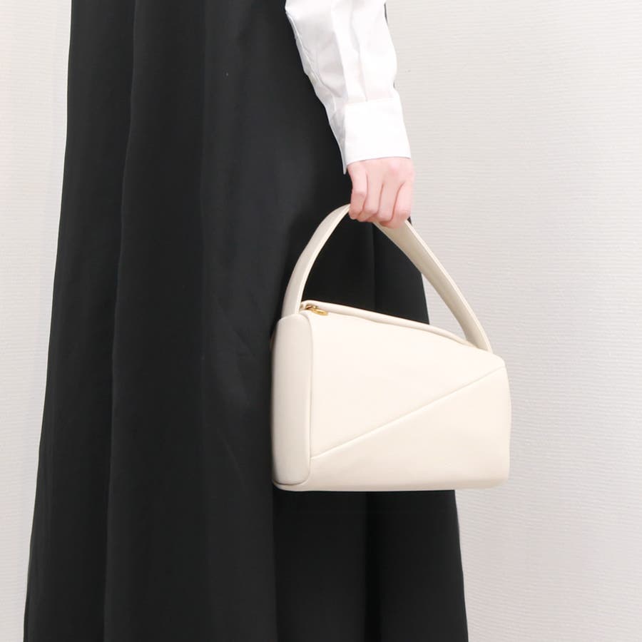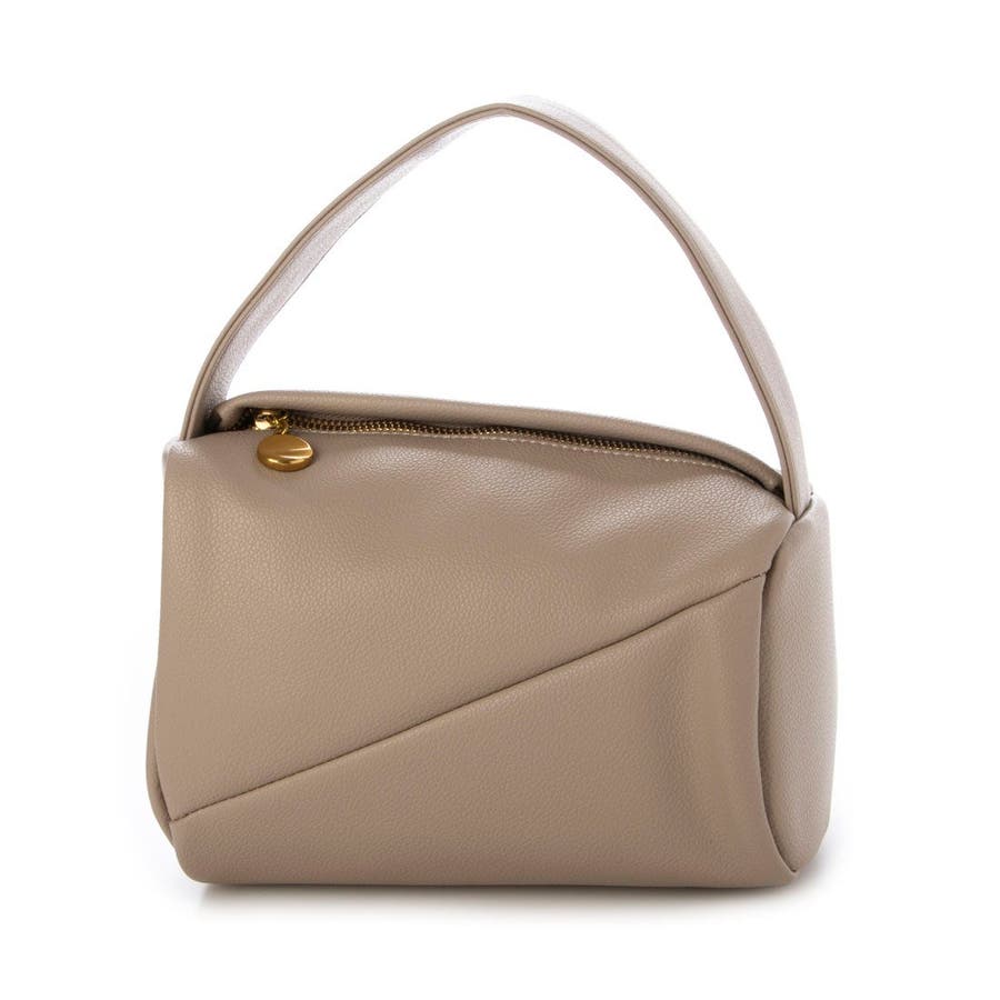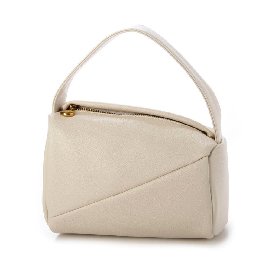 アシンメトリーな形とハギの入ったデザインがトレンド感のあるワンハンドルバッグ。