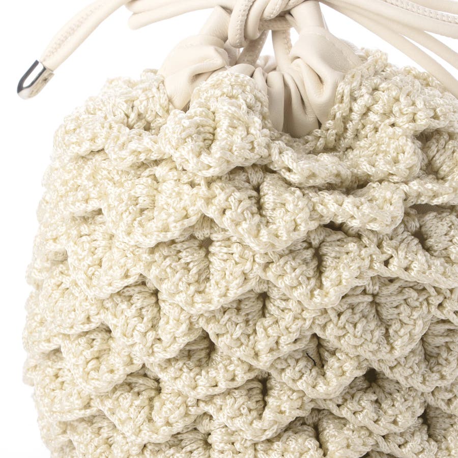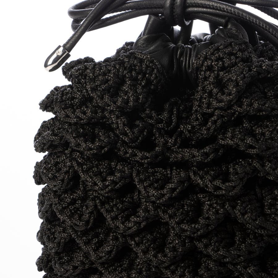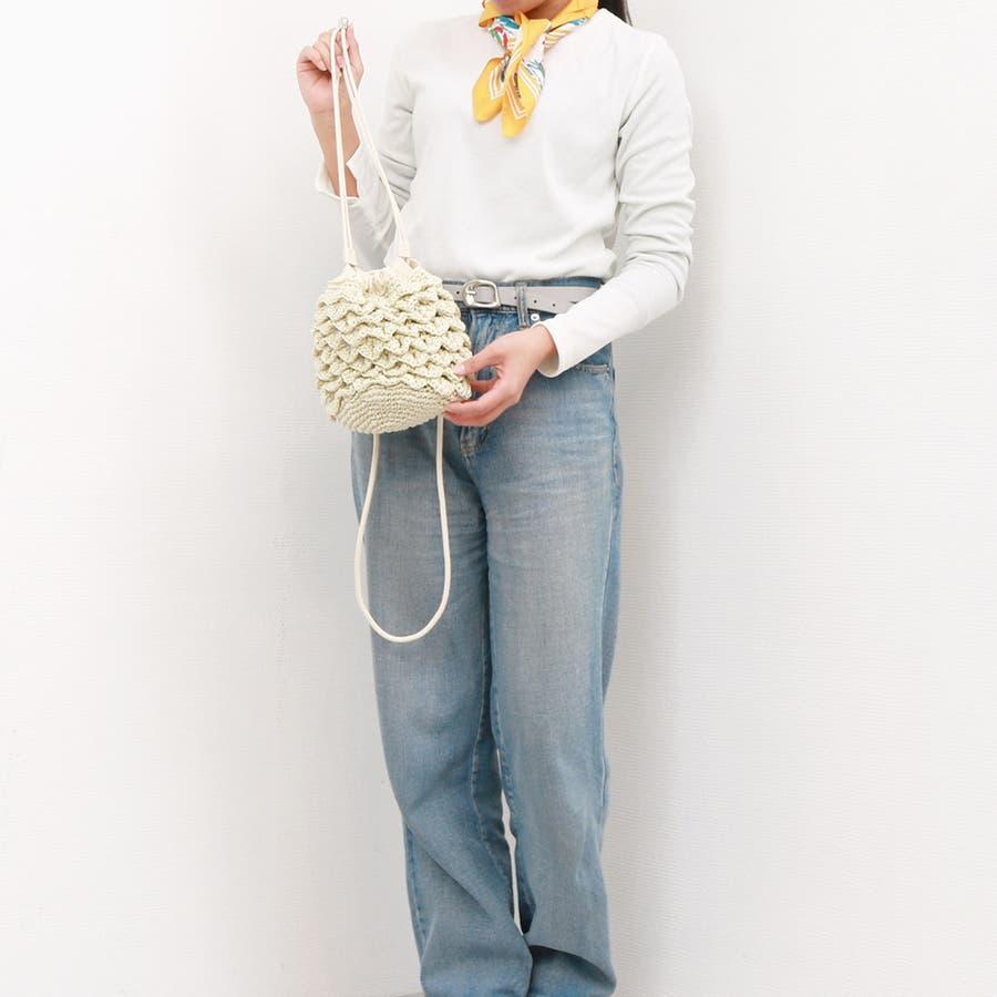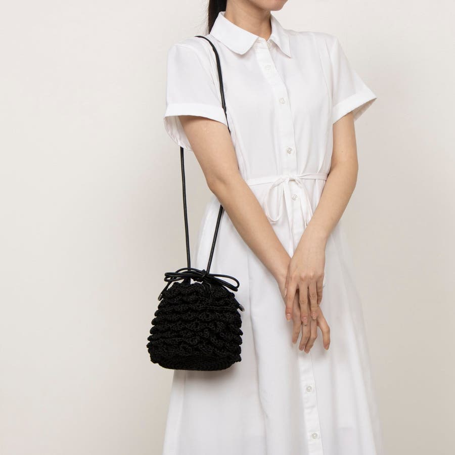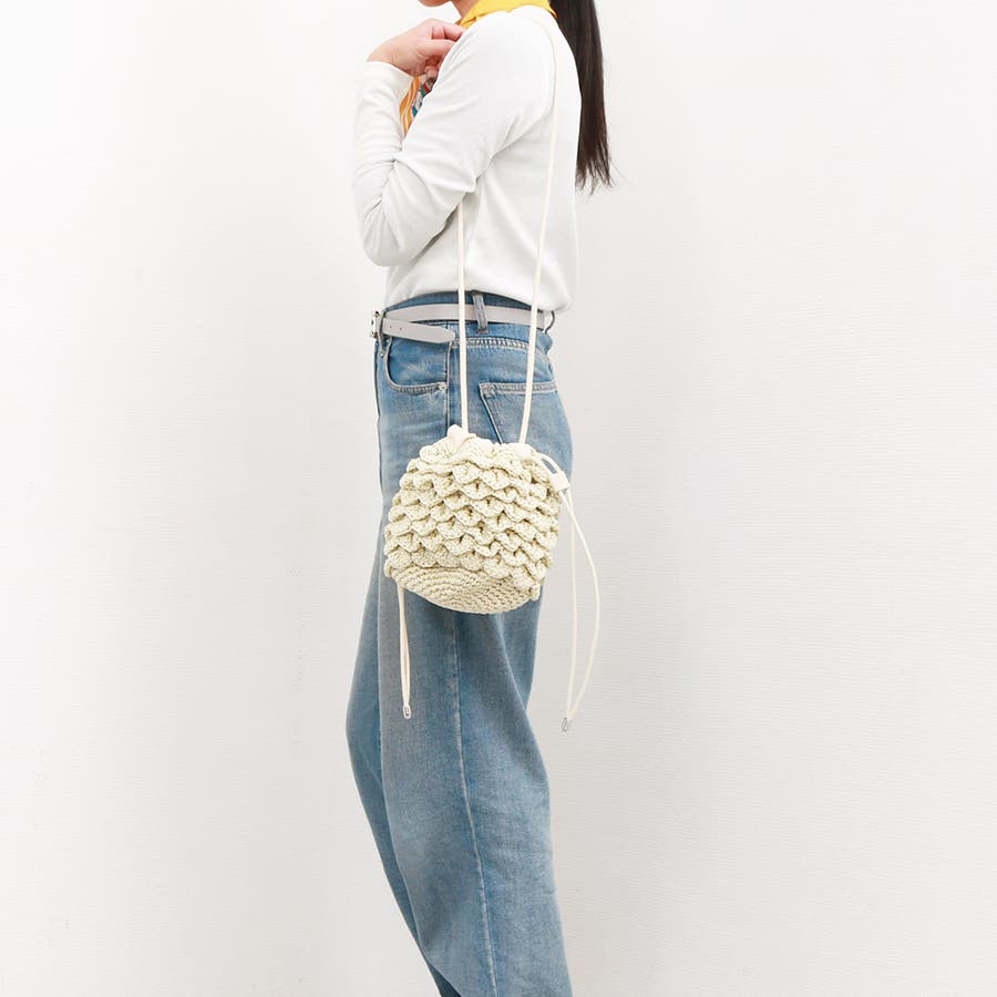フリルのような編み込みがかわいいミニショルダーバッグ。