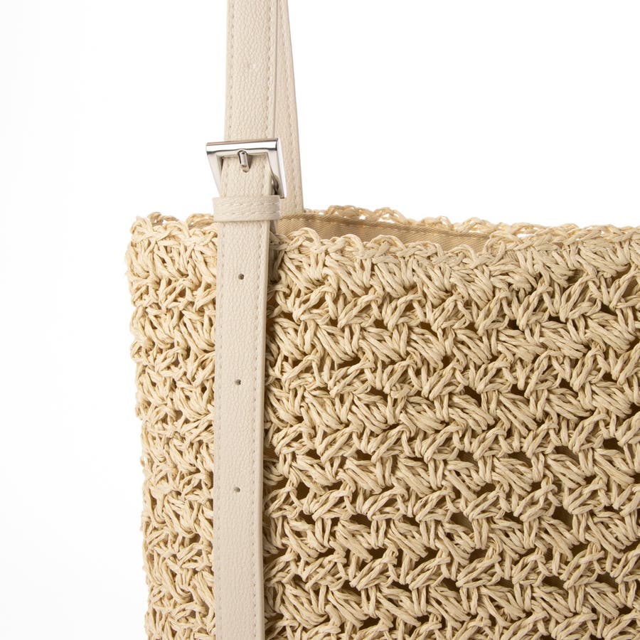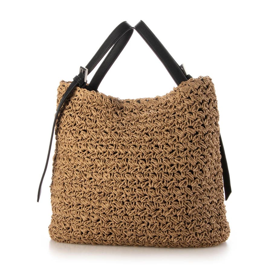 ペーパーを柄編みで編み込んだクロッシェトートバッグ。