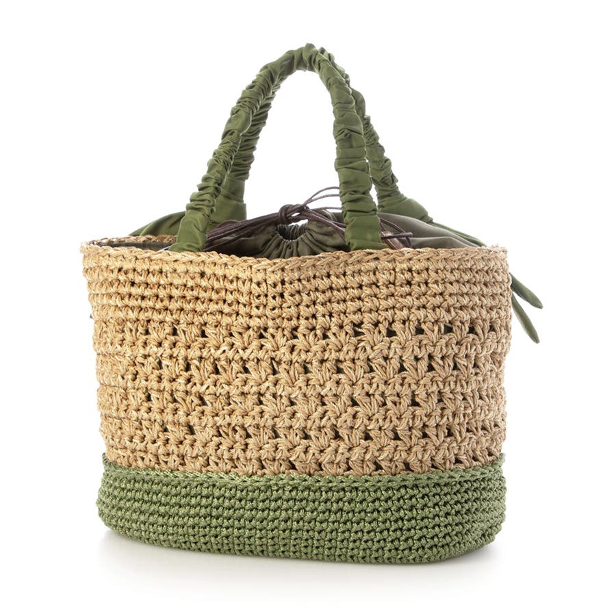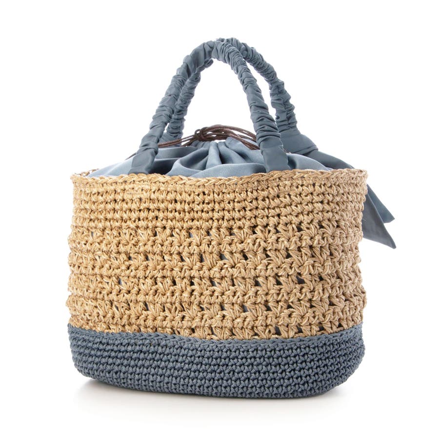底部分に異素材を編み込み切り替えになっている手の込んだカゴバッグです。