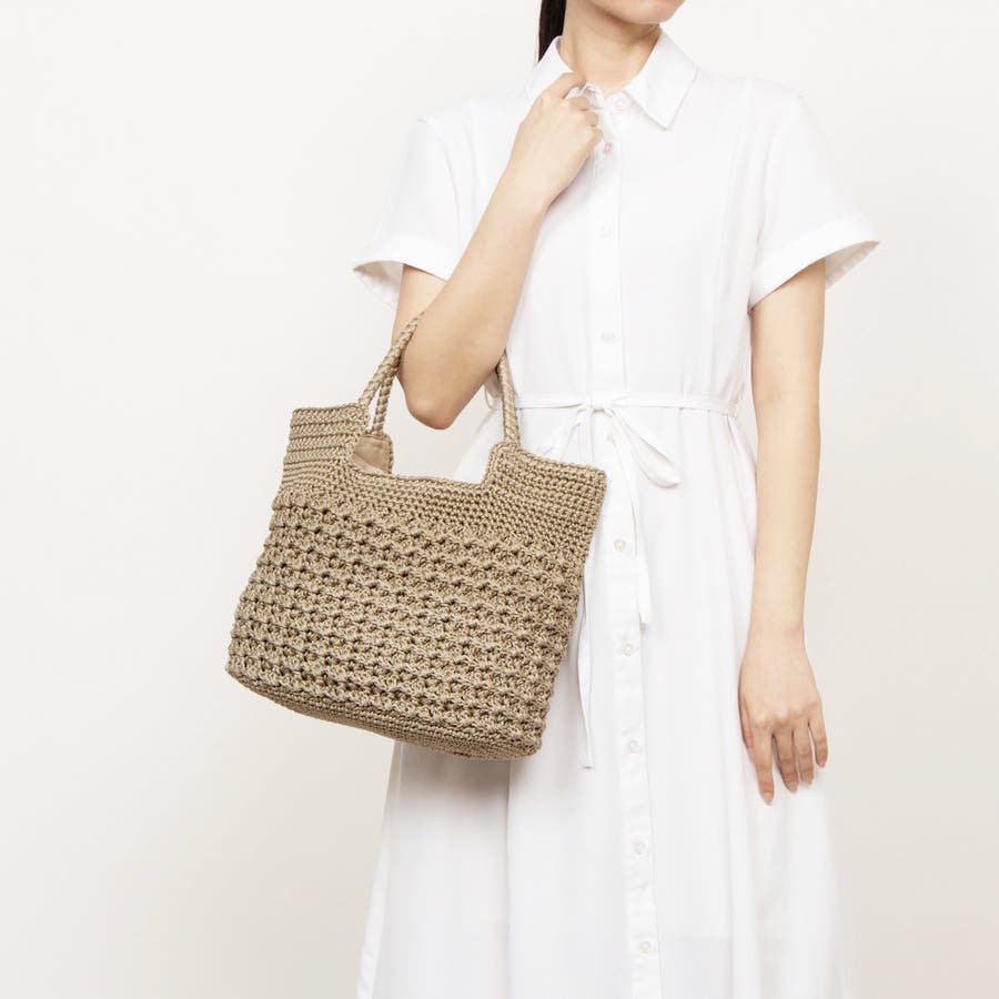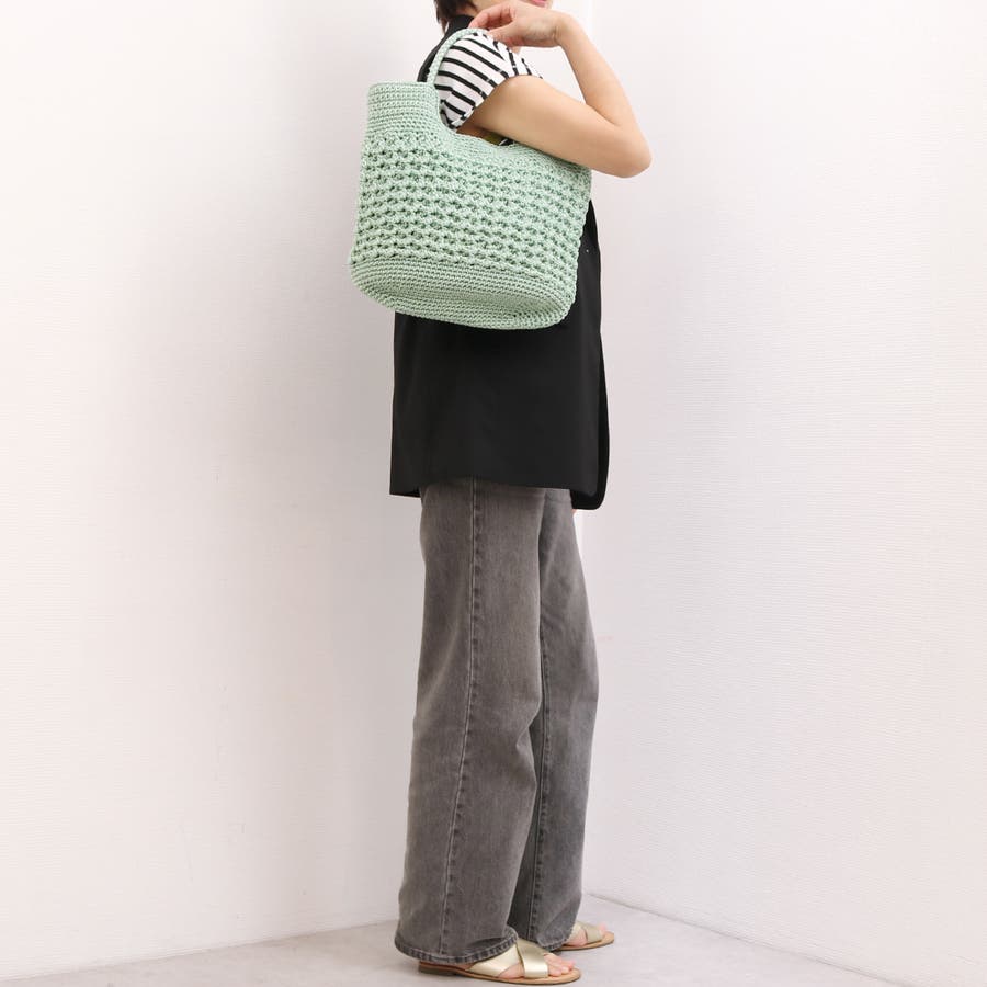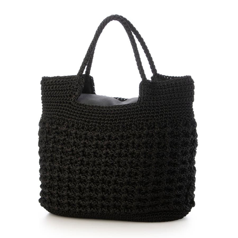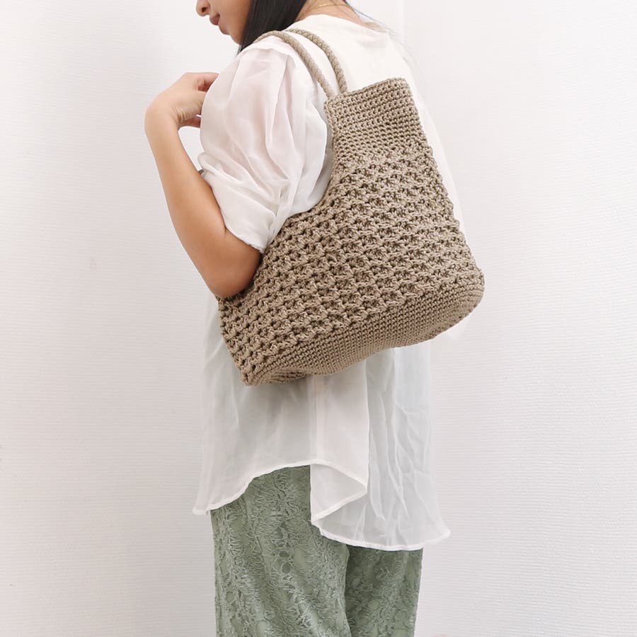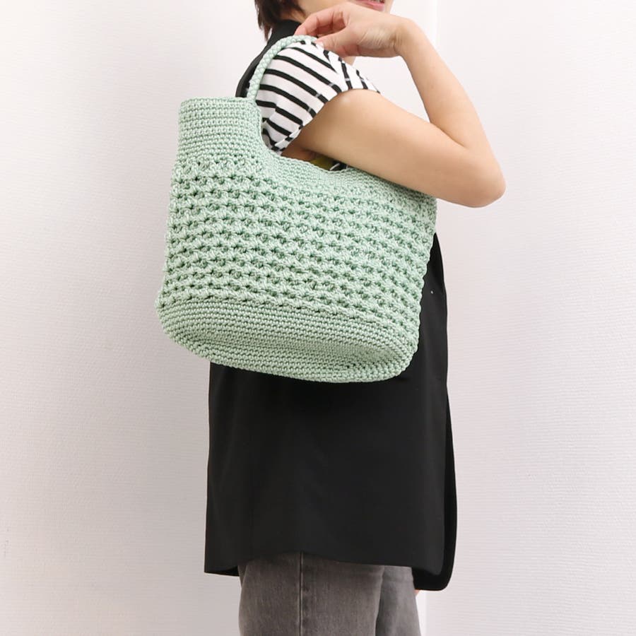 ポリエステル糸を編み込んだクロッシェトートバッグ。