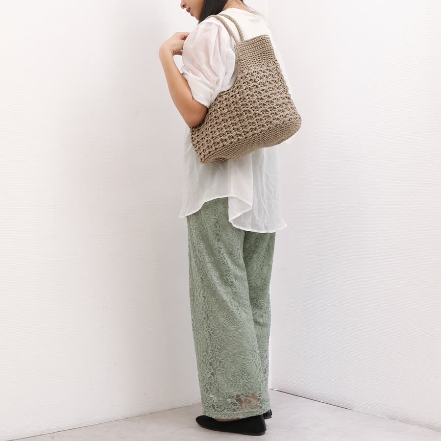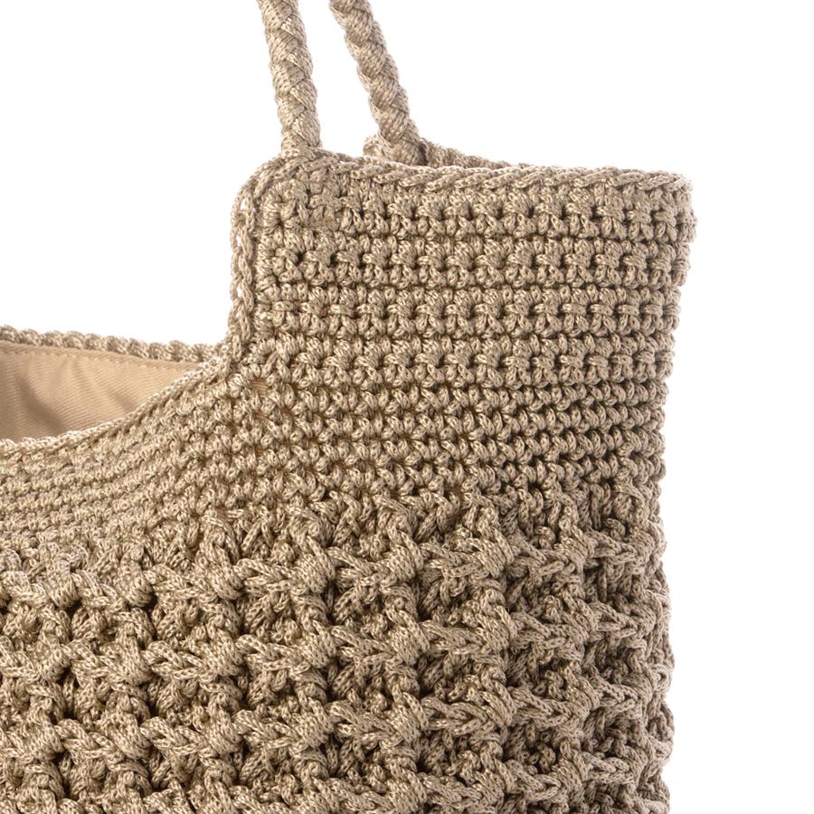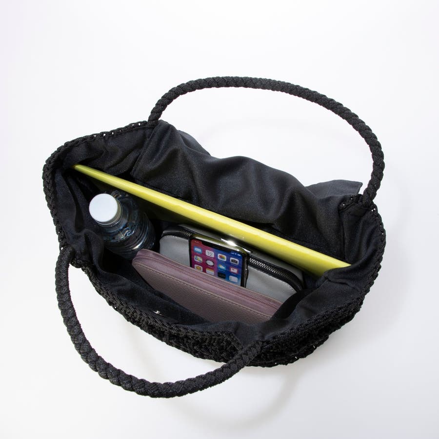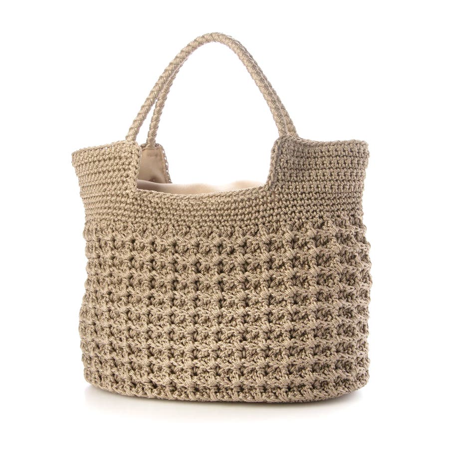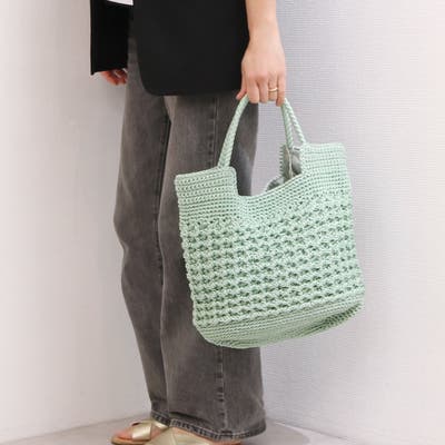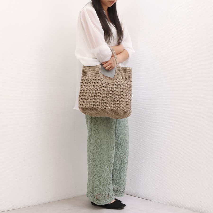 ポリエステル糸を編み込んだクロッシェトートバッグ。