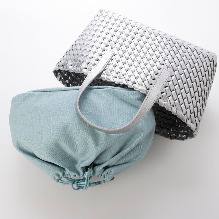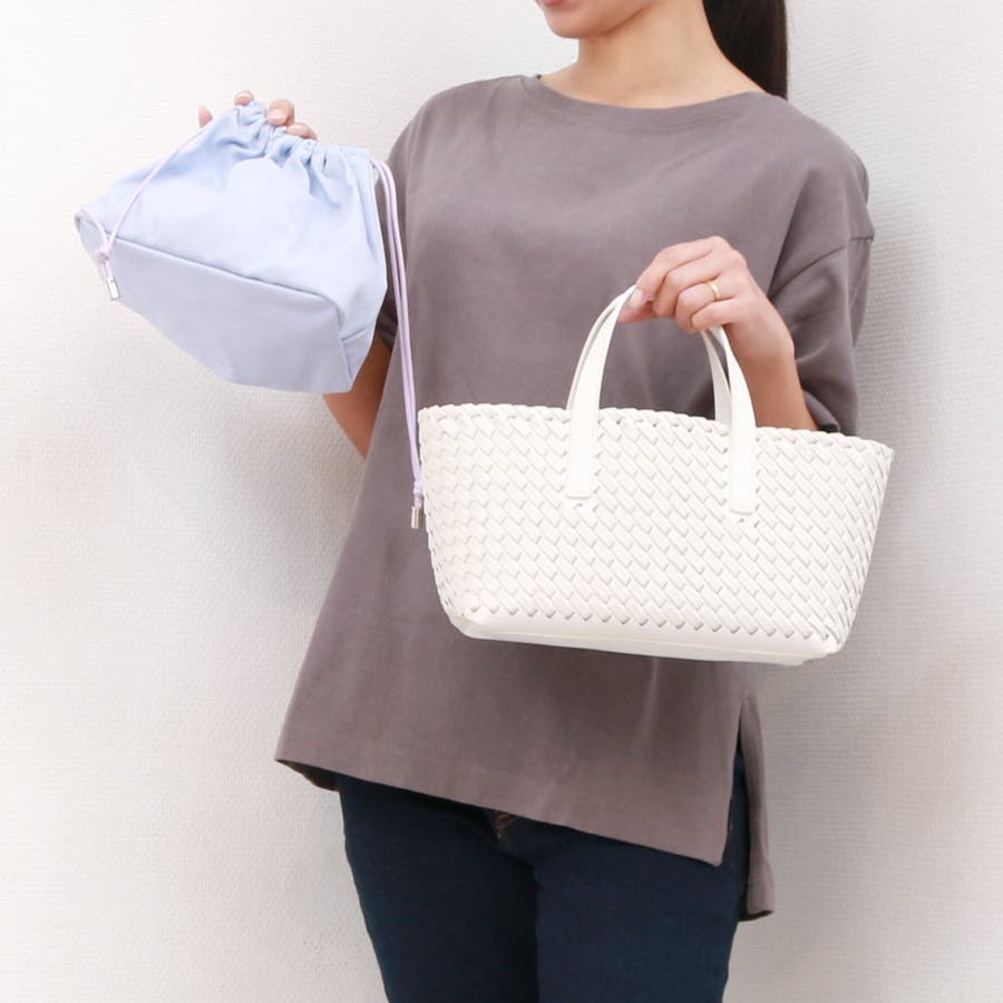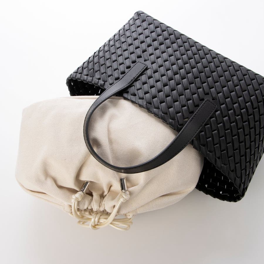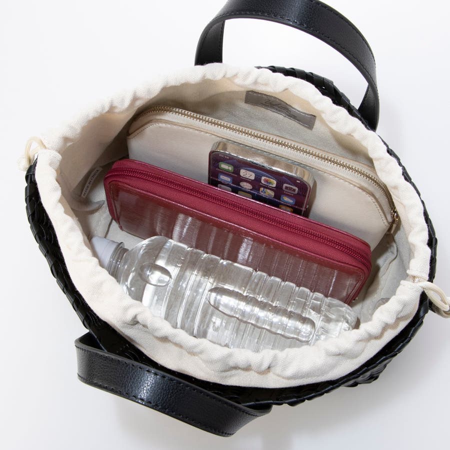 長財布や500mlボトルが入る使いやすいサイズで、中が見えないように巾着バッグが付属しています。