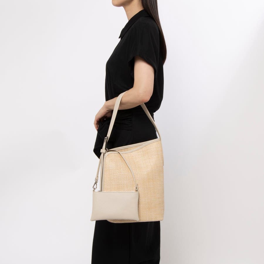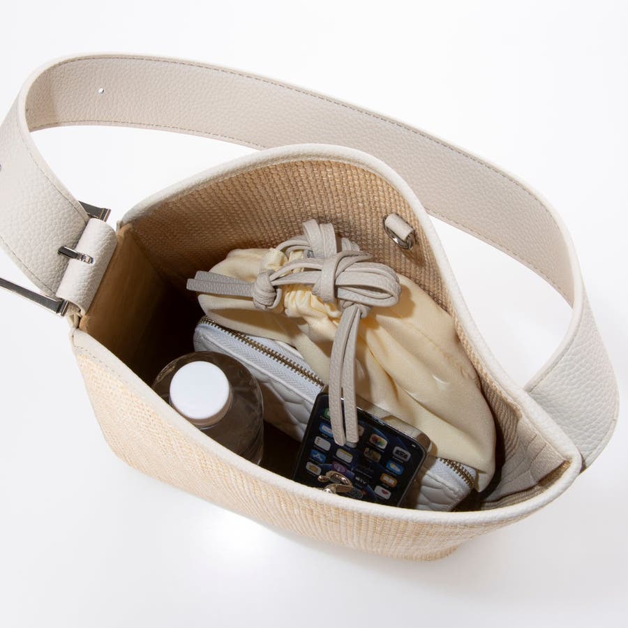 カゴバッグ風の素材を使った涼し気なワンショルダーバッグ。
