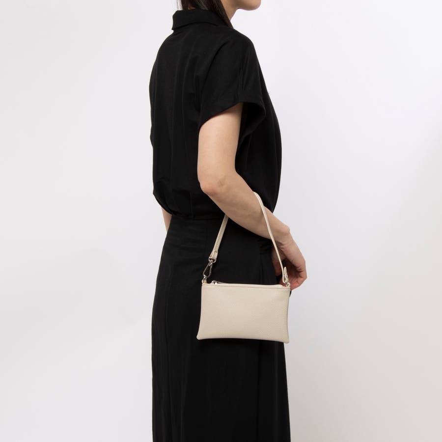 横マチとパイピングに合皮を組み合わせきちんと自立するきれいめショルダーです。
