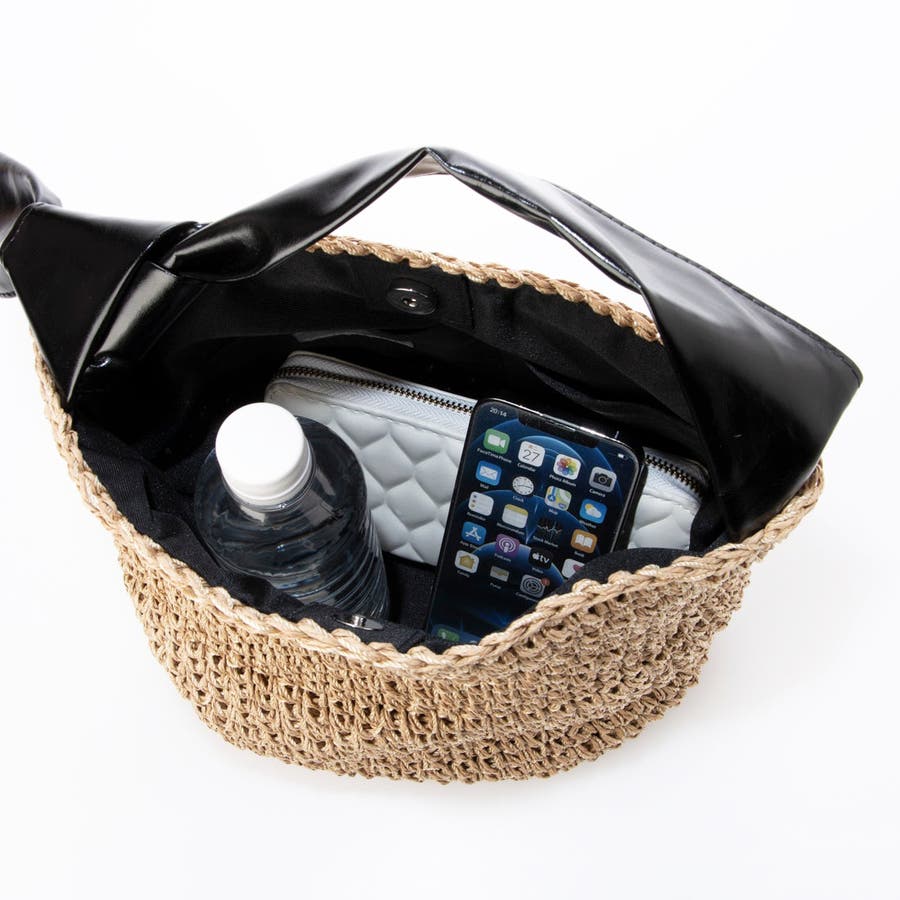 少し光沢感のある柔らかな合皮を使ったハンドルのクロッシェバッグ。