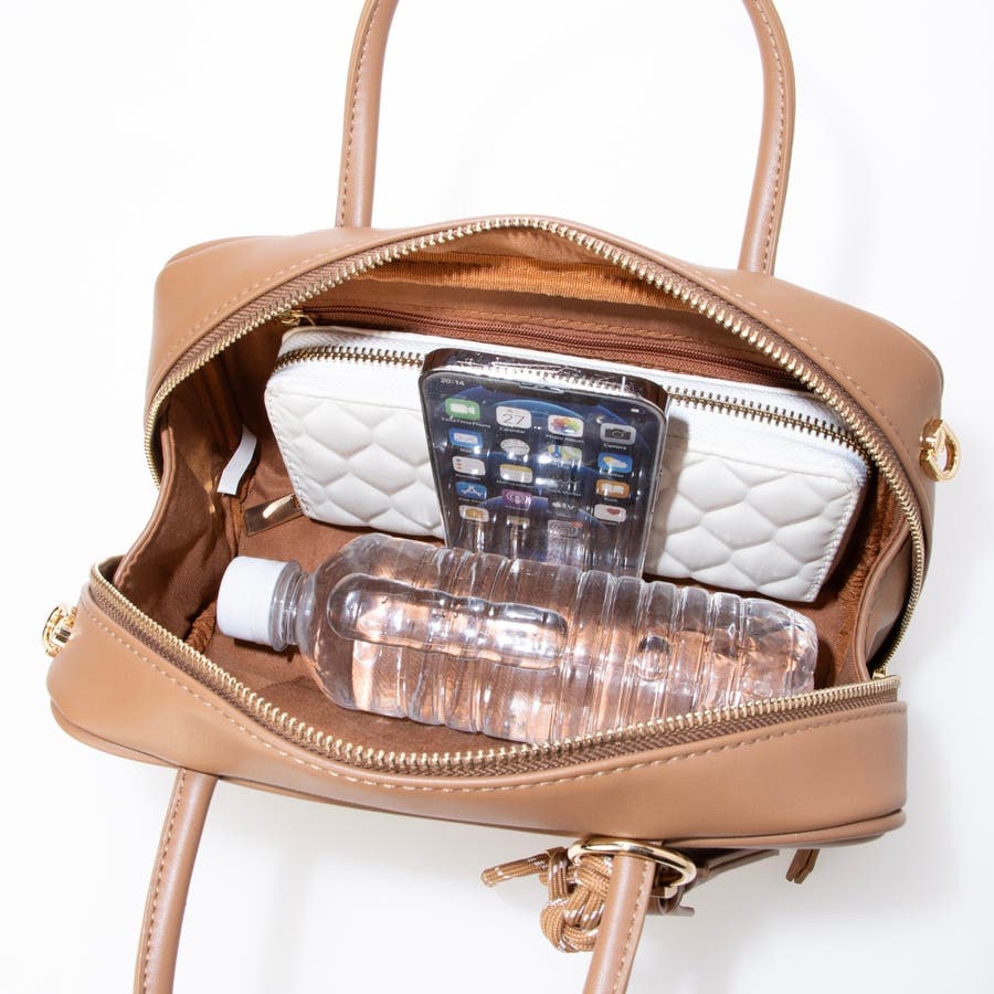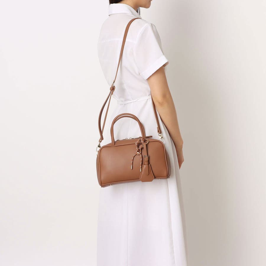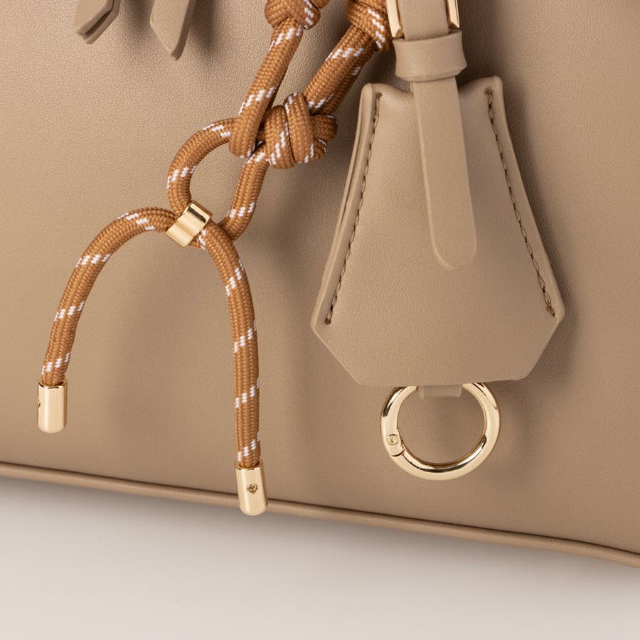 シンプルな横長ボストンにトレンド感のあるチャームをプラスしたデザイン。