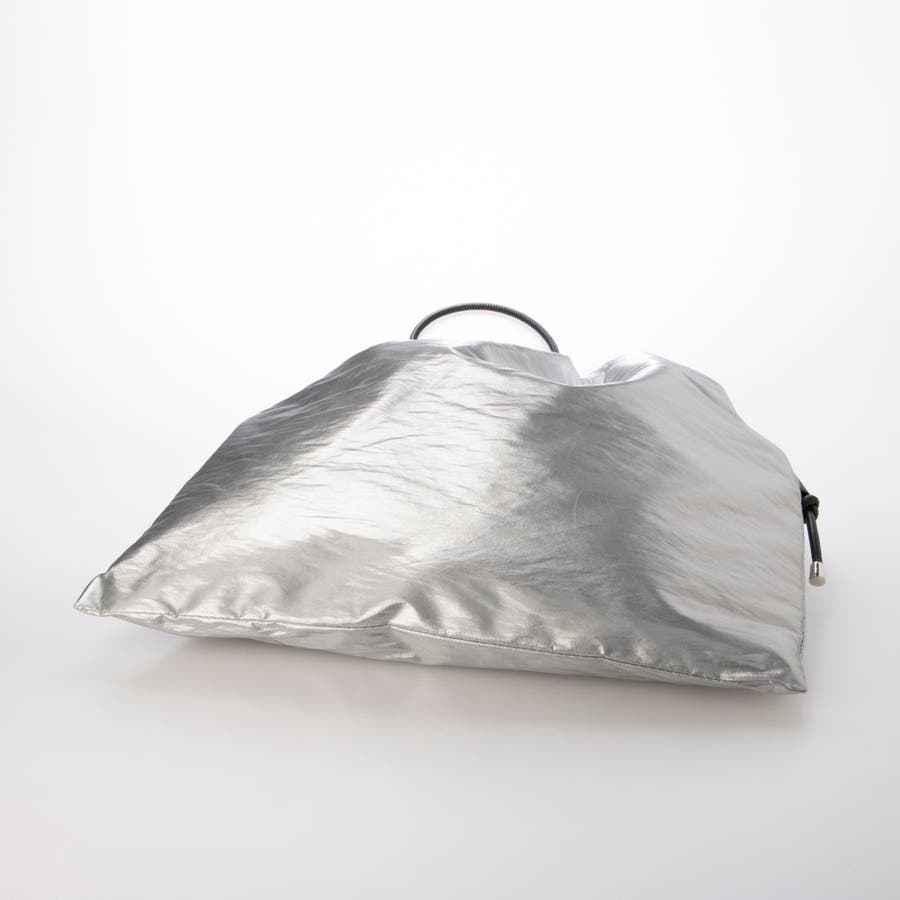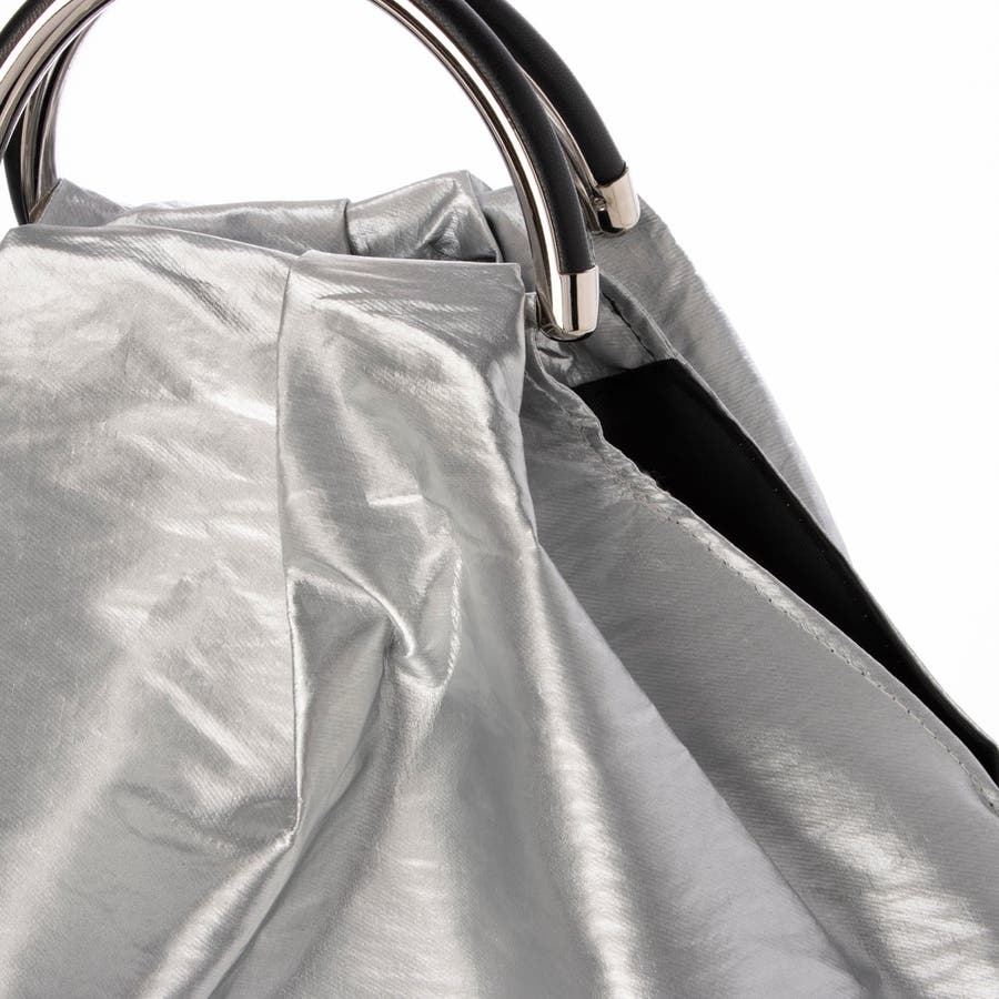 光沢感がある素材の金手バッグ。シンプルコーデのアクセントとして、カジュアルにもモードにも使えそうな雰囲気です。