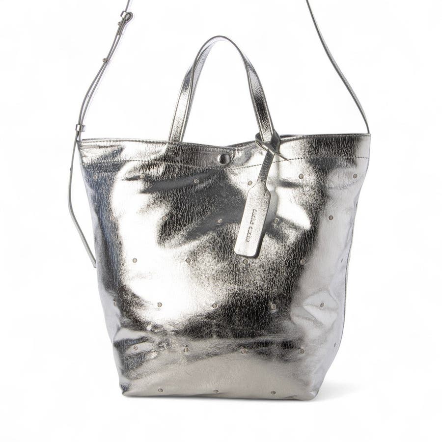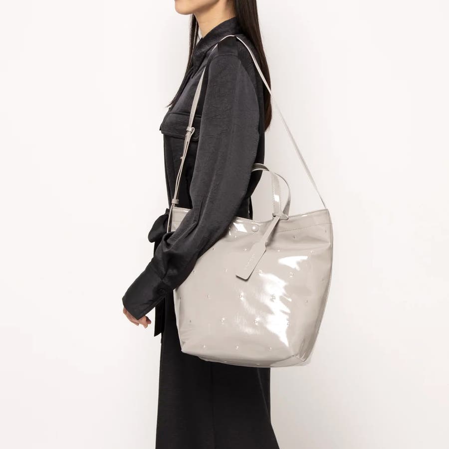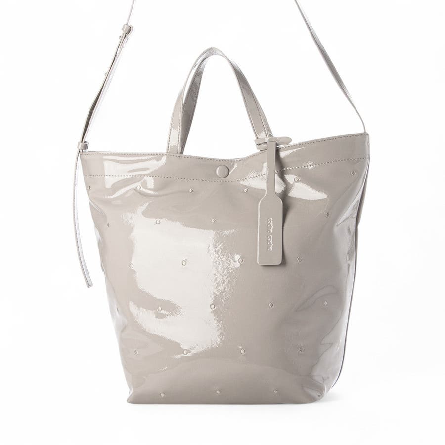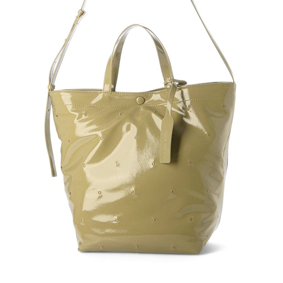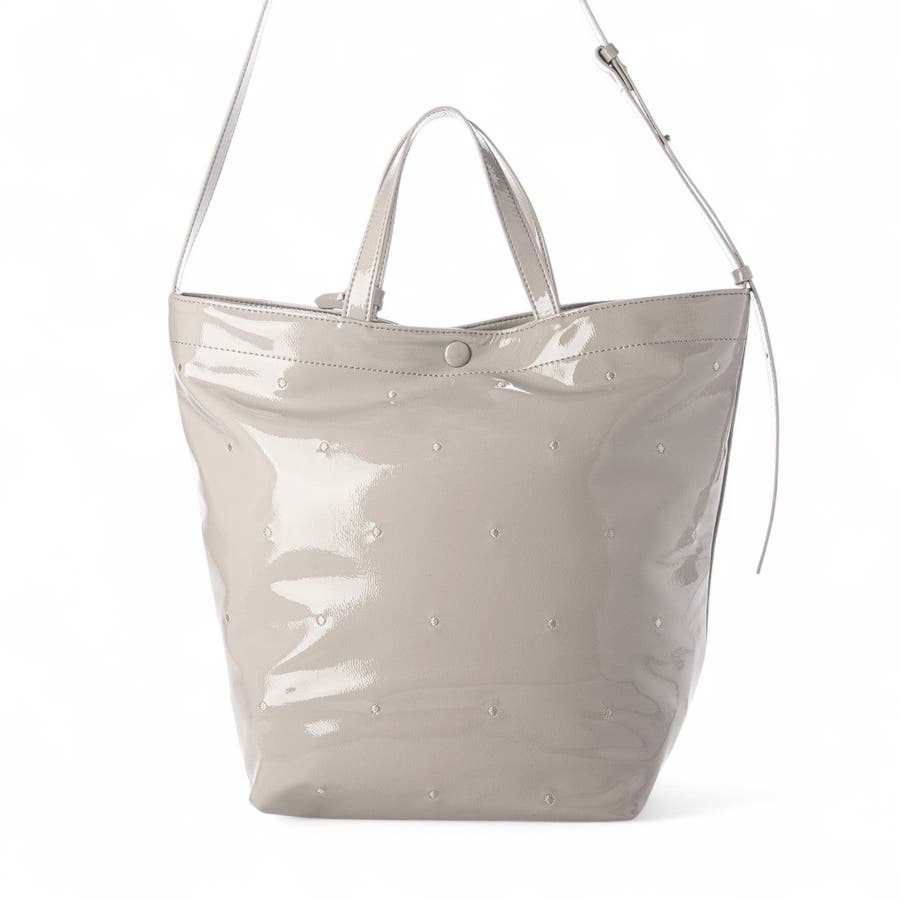 衣料用の高級感のあるソフトエナメルにドット刺繍を施した2wayトート。
