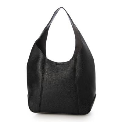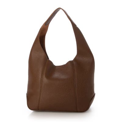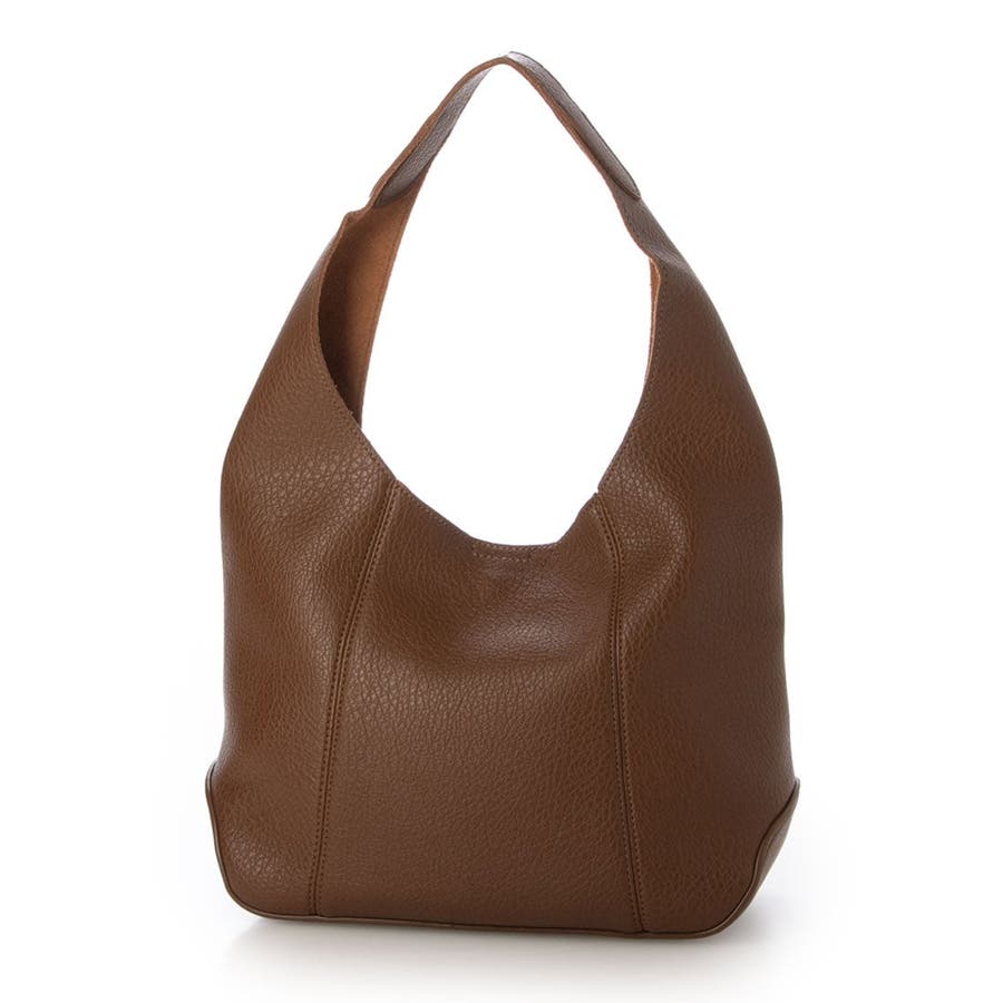 スエード調の裏地を張り合わせた1枚仕立ての合皮を使ったホーボーバッグ。