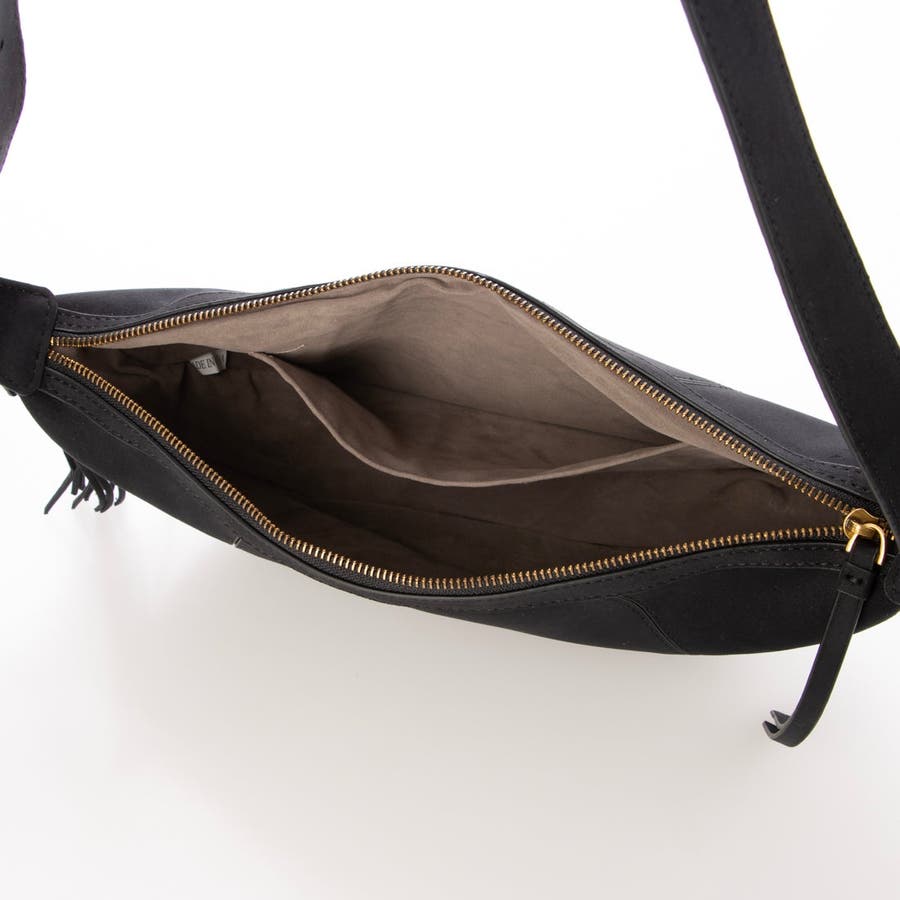 トレンド感あふれるハーフムーン型が魅力のショルダーバッグ。