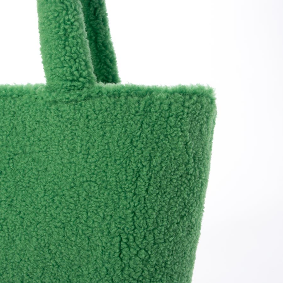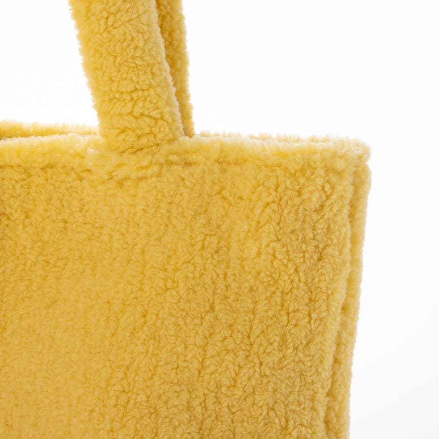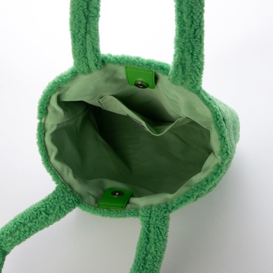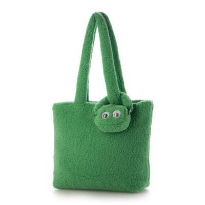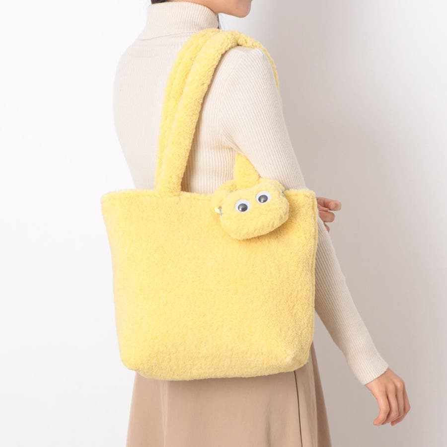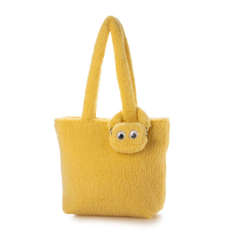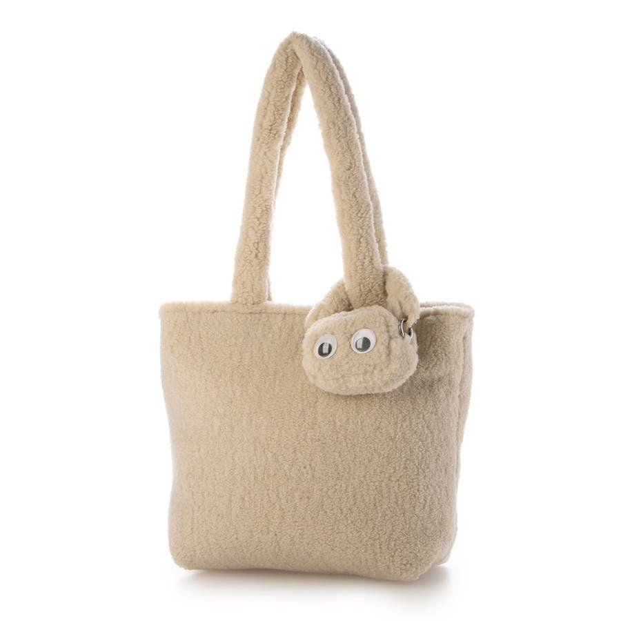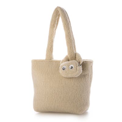 ファニーな目玉付きのポーチがセットになったボアトートバッグ。