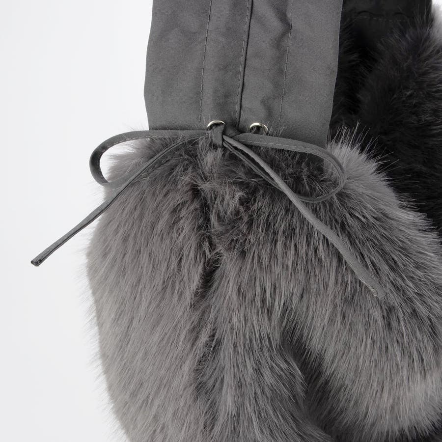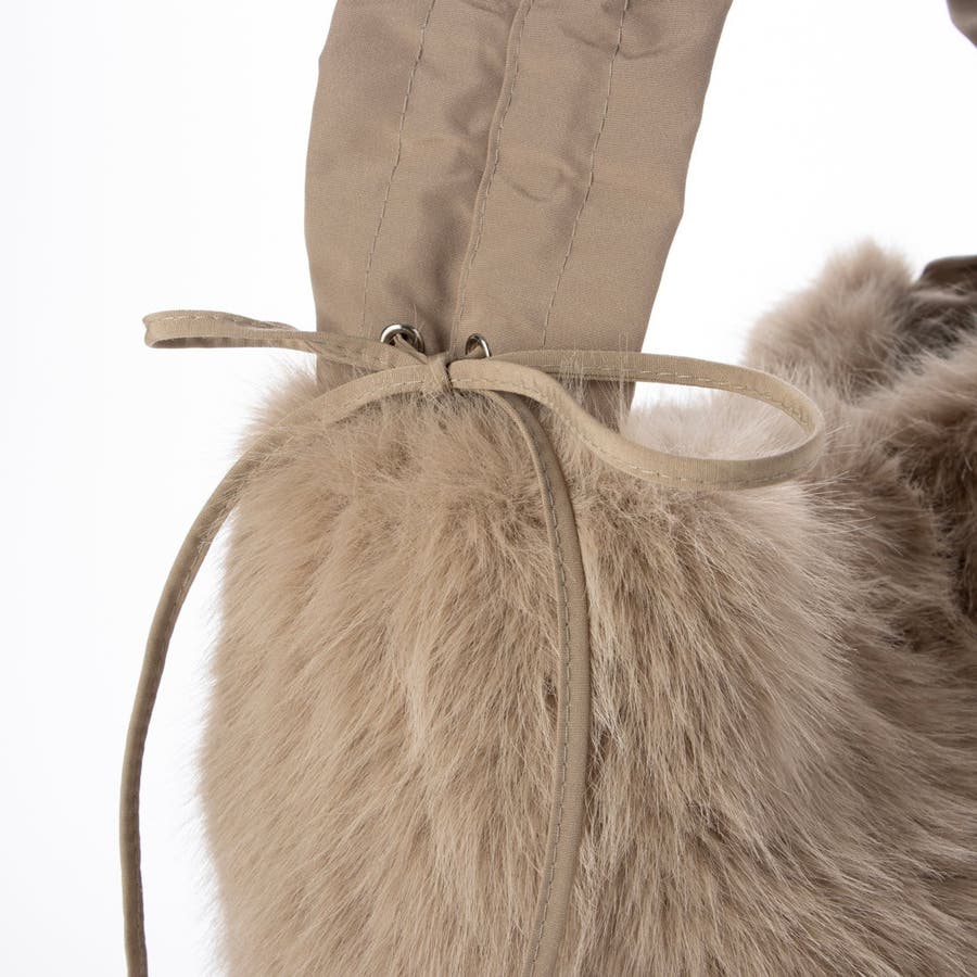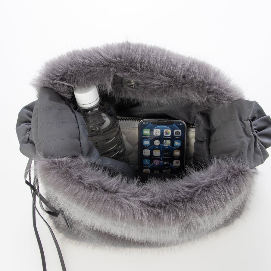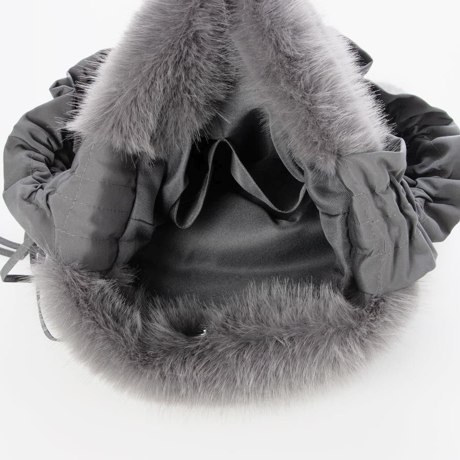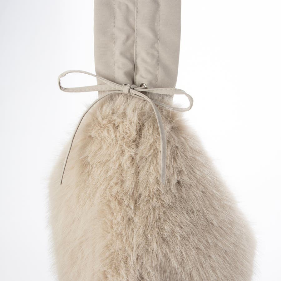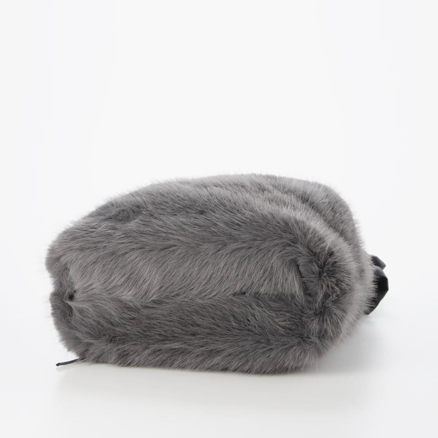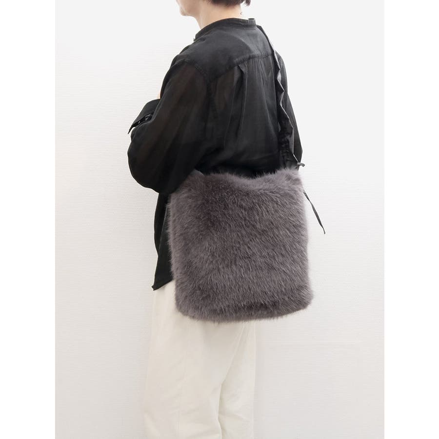 クシュっと寄せたギャザーショルダーとフワフワで手触りの良いエコファーボディがポイントのトートバッグ。