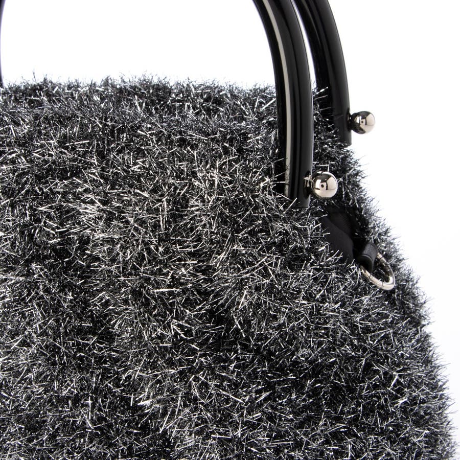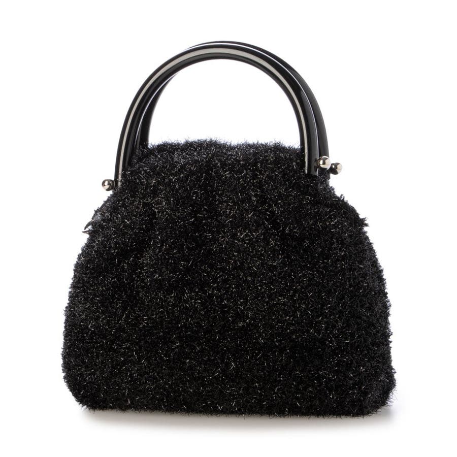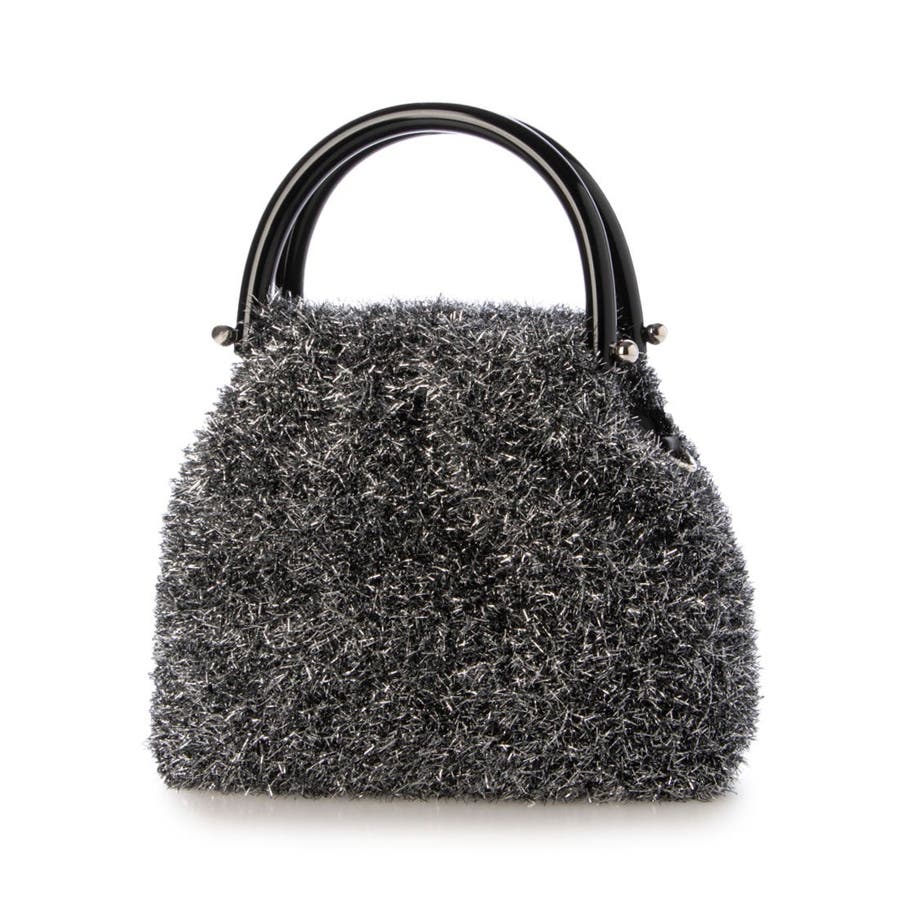 キラキラのフィルムヤーンを使ったシンプルながら華やかな雰囲気の2wayハンドバッグ。