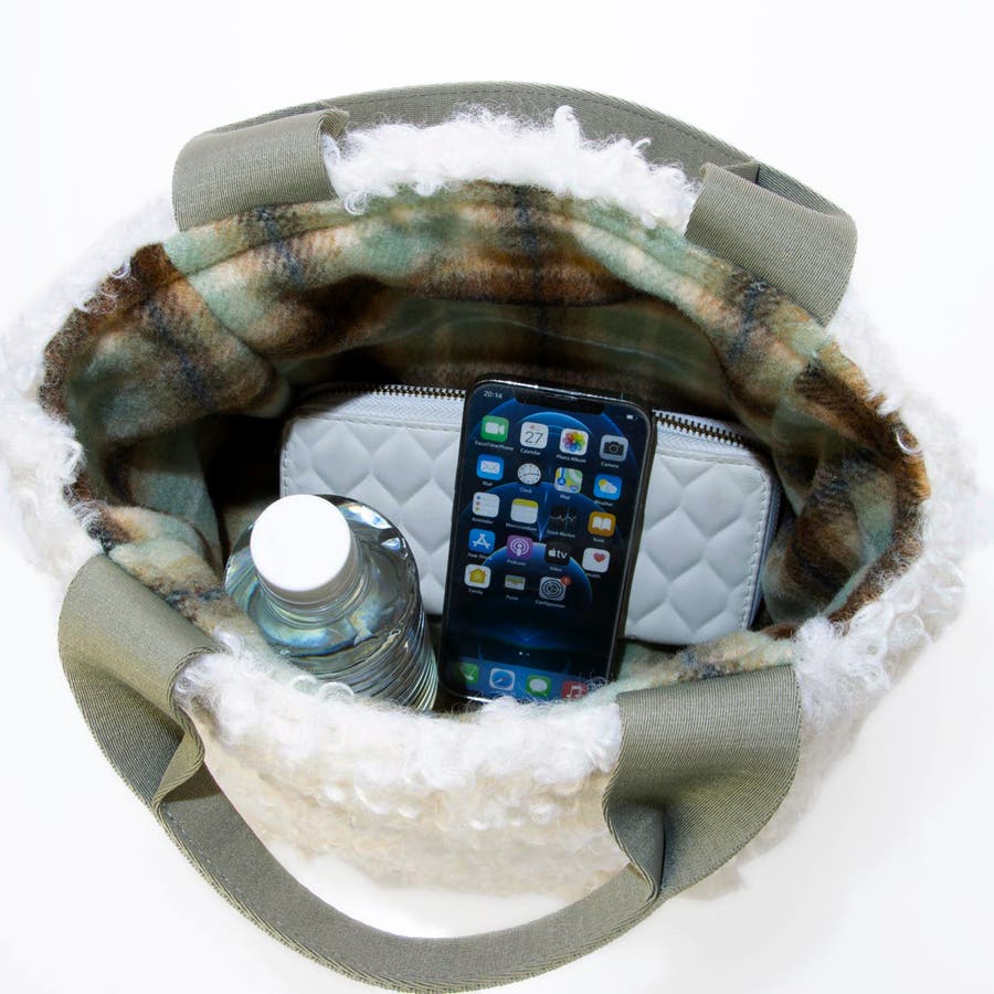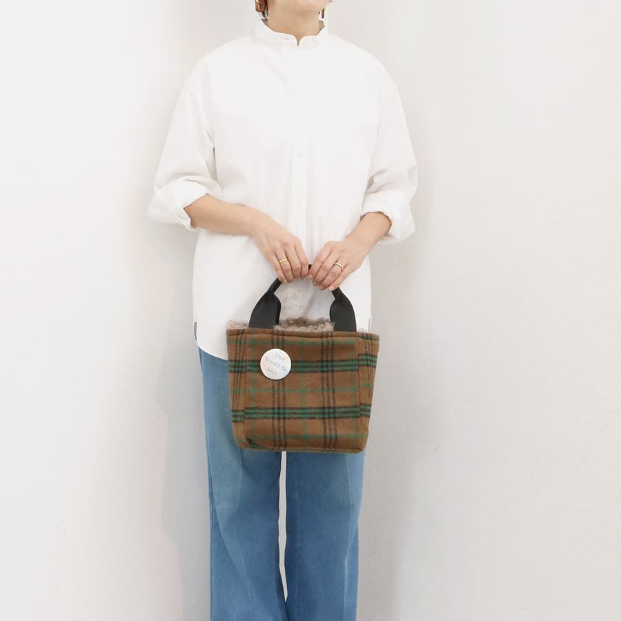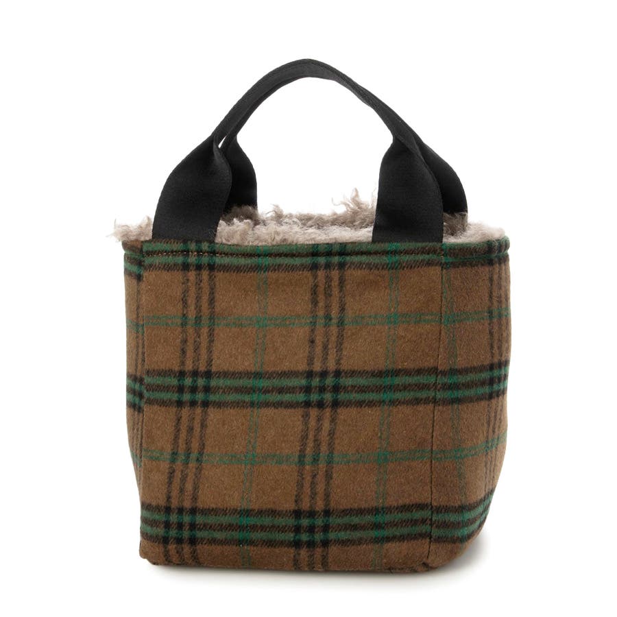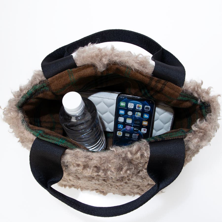 シュカシュ / フェイクファー×チェック柄リバーシブルトート