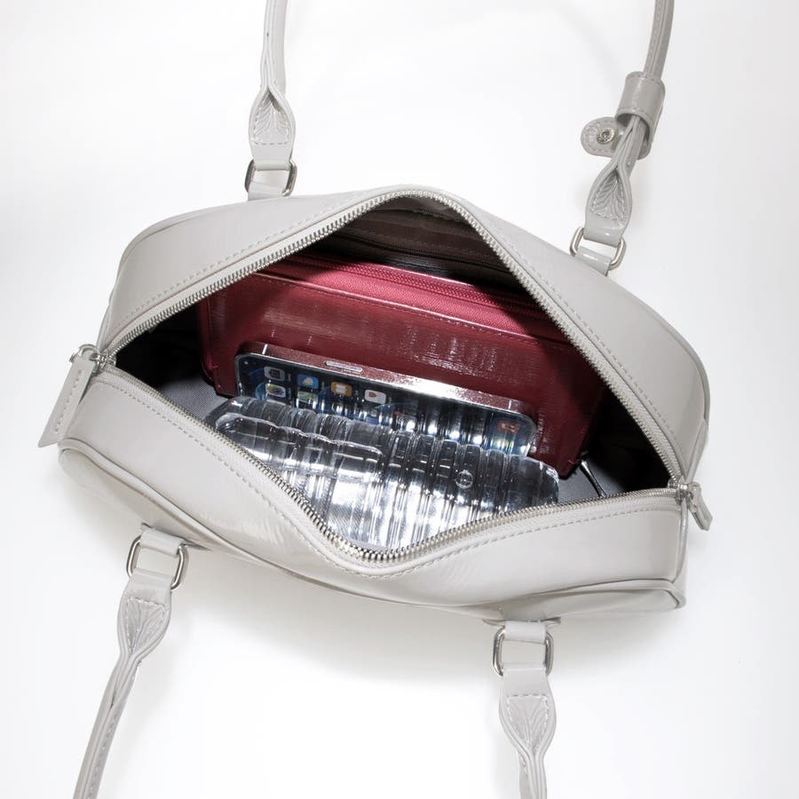コンパクトながら長財布や500mlボトルも入り、横長なのでファスナーを開ければバッグの中を一目で見渡せるのがポイントです。