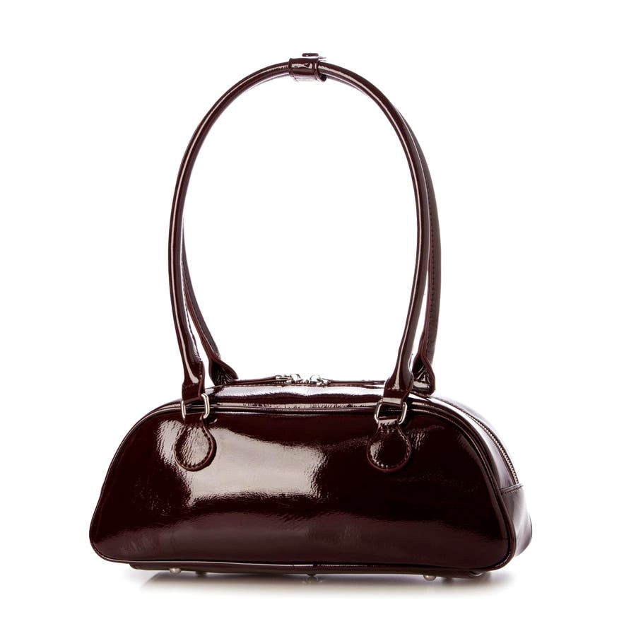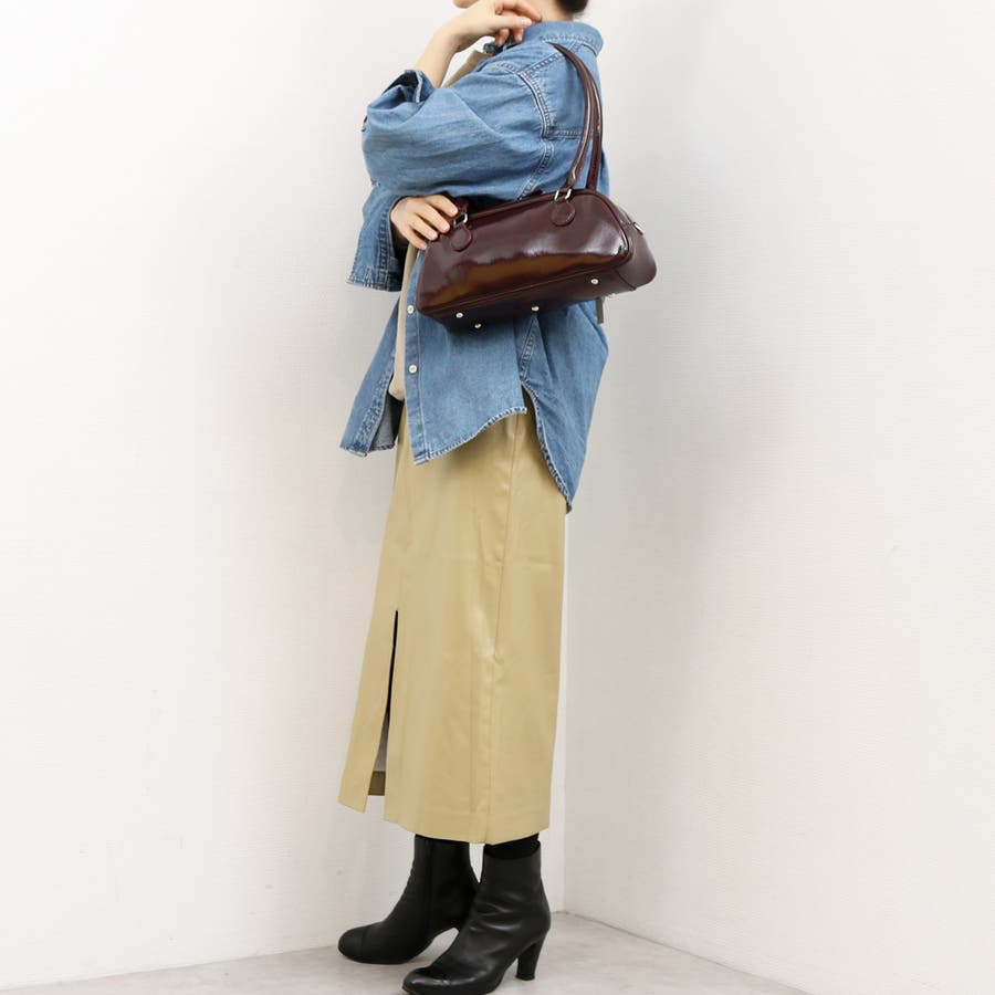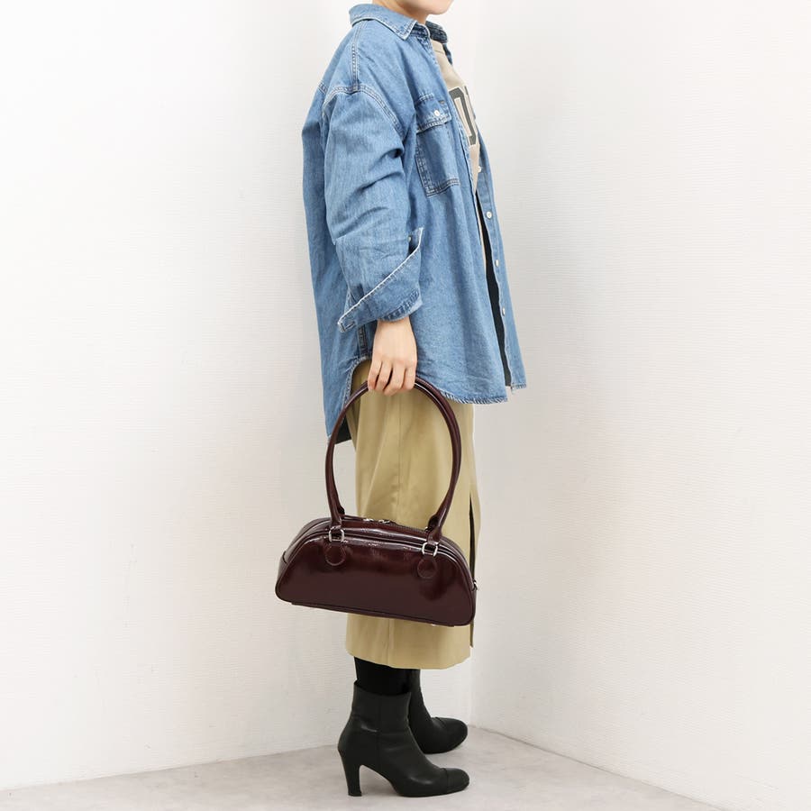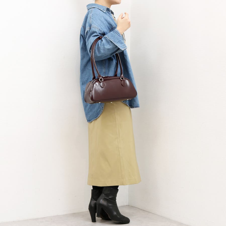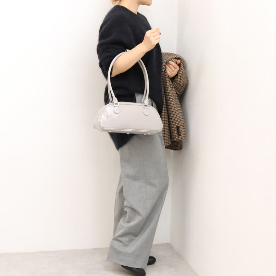 長めハンドルで肩入れをした時に脇にきゅっと収まるサイズ感がトレンドの横長ミニボストン。
