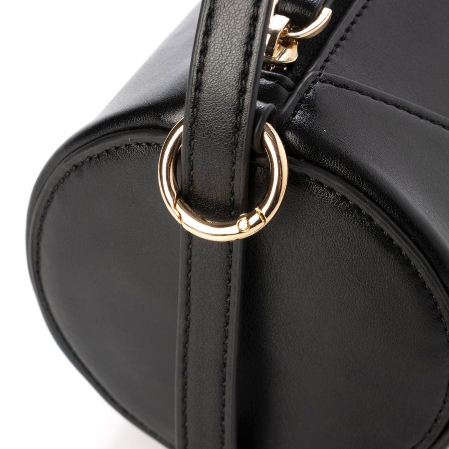 普通に横型で持つほか、側面側からショルダーを引くと縦型のシリンダーバッグとしても使えるトレンド感のある2way仕様。