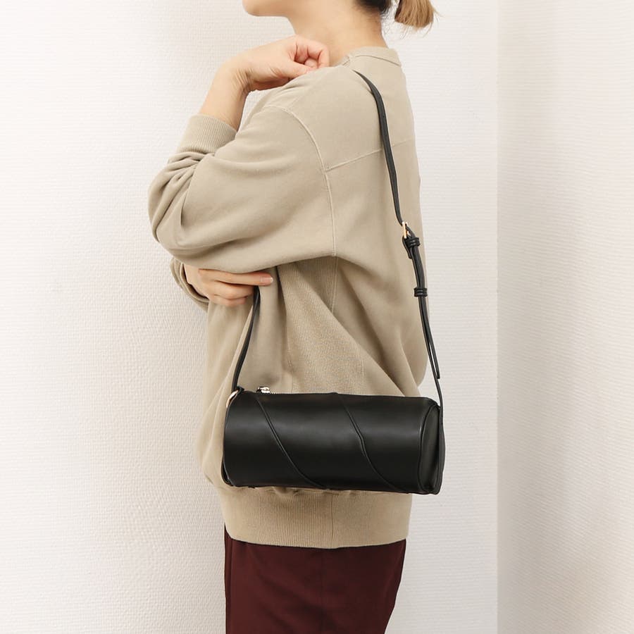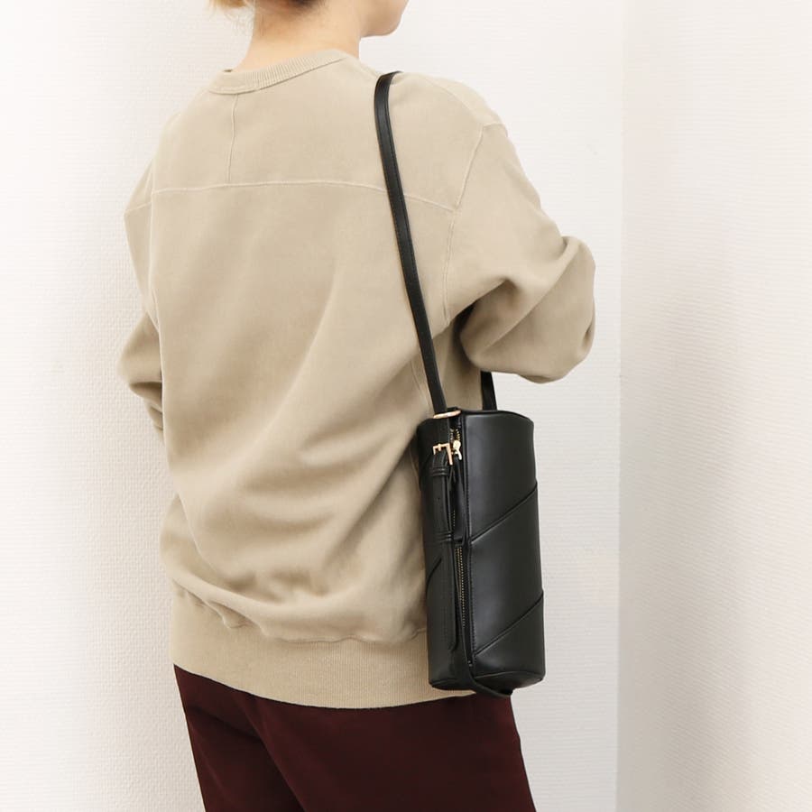 斜めに入ったステッチがデザインポイントになった筒形ショルダー。
