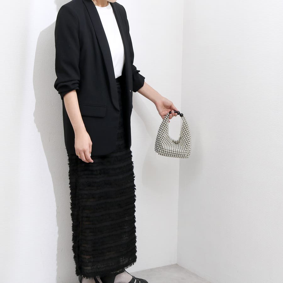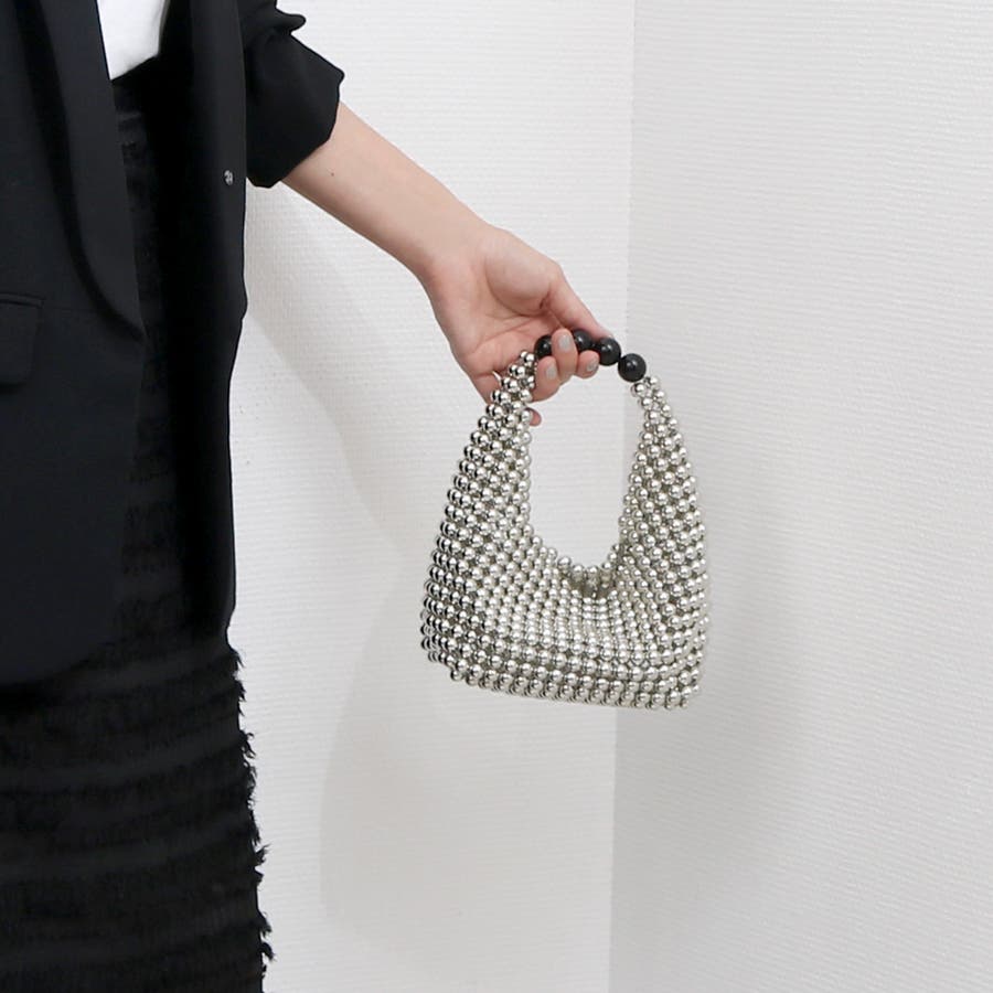 ビーズの大きさとカラーを変えたハンドル部分がでデザインポイントになった手提げバッグです。