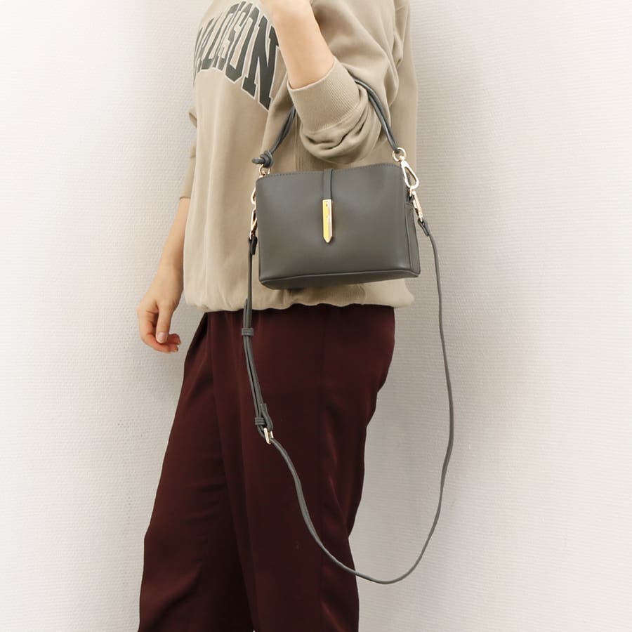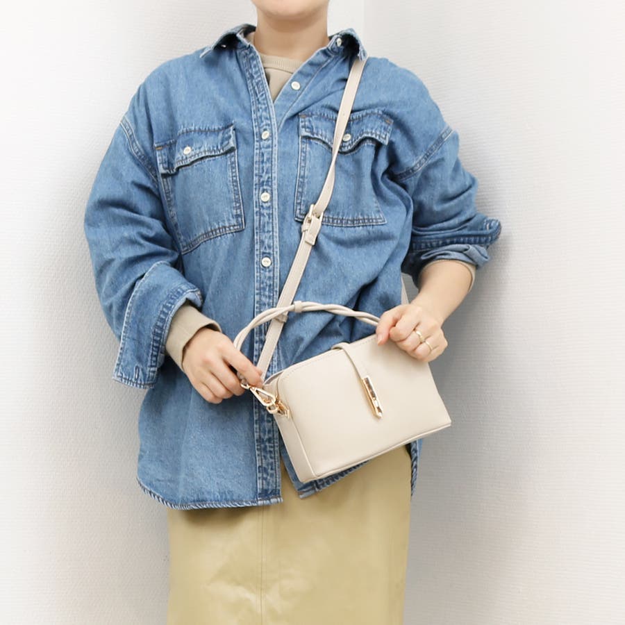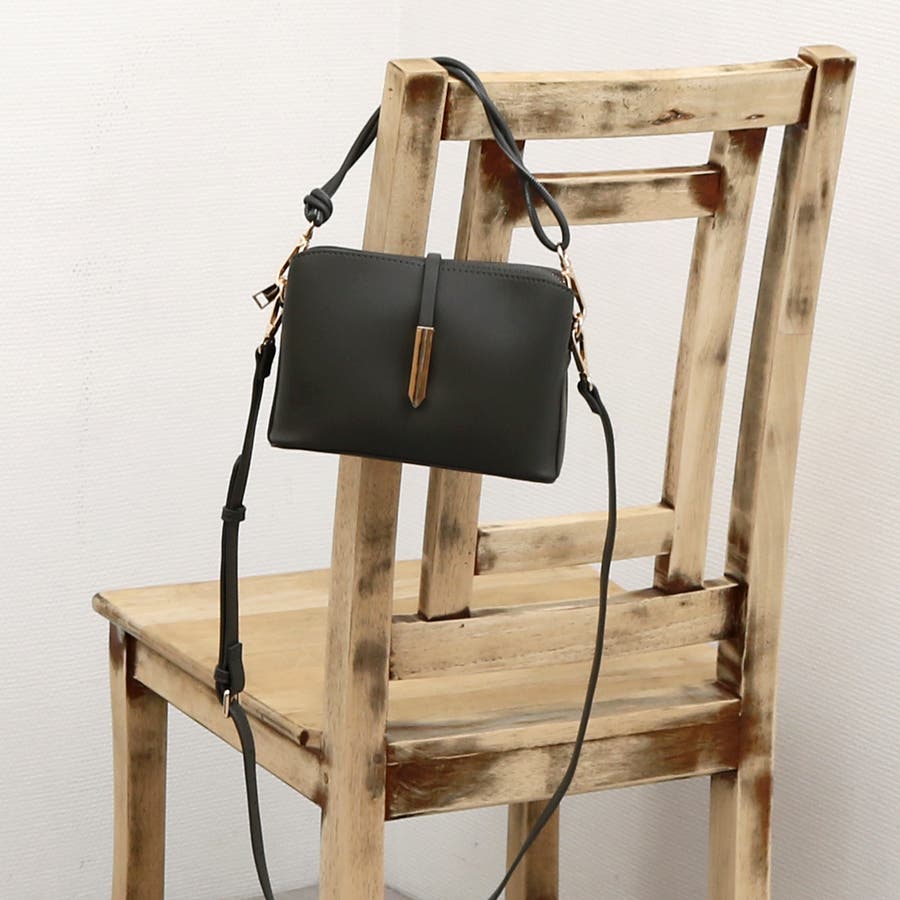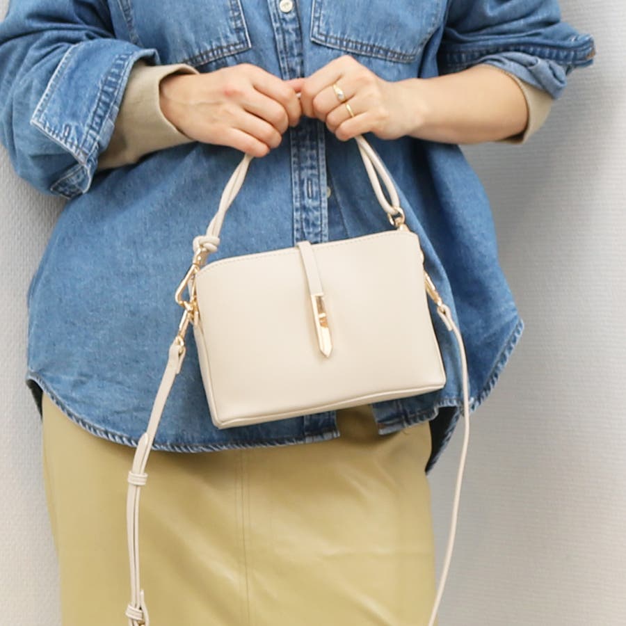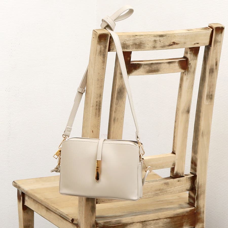 細いベルトフラップのゴールド金具がポイントの2wayショルダーバッグ。