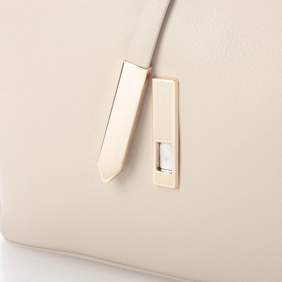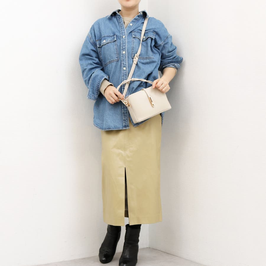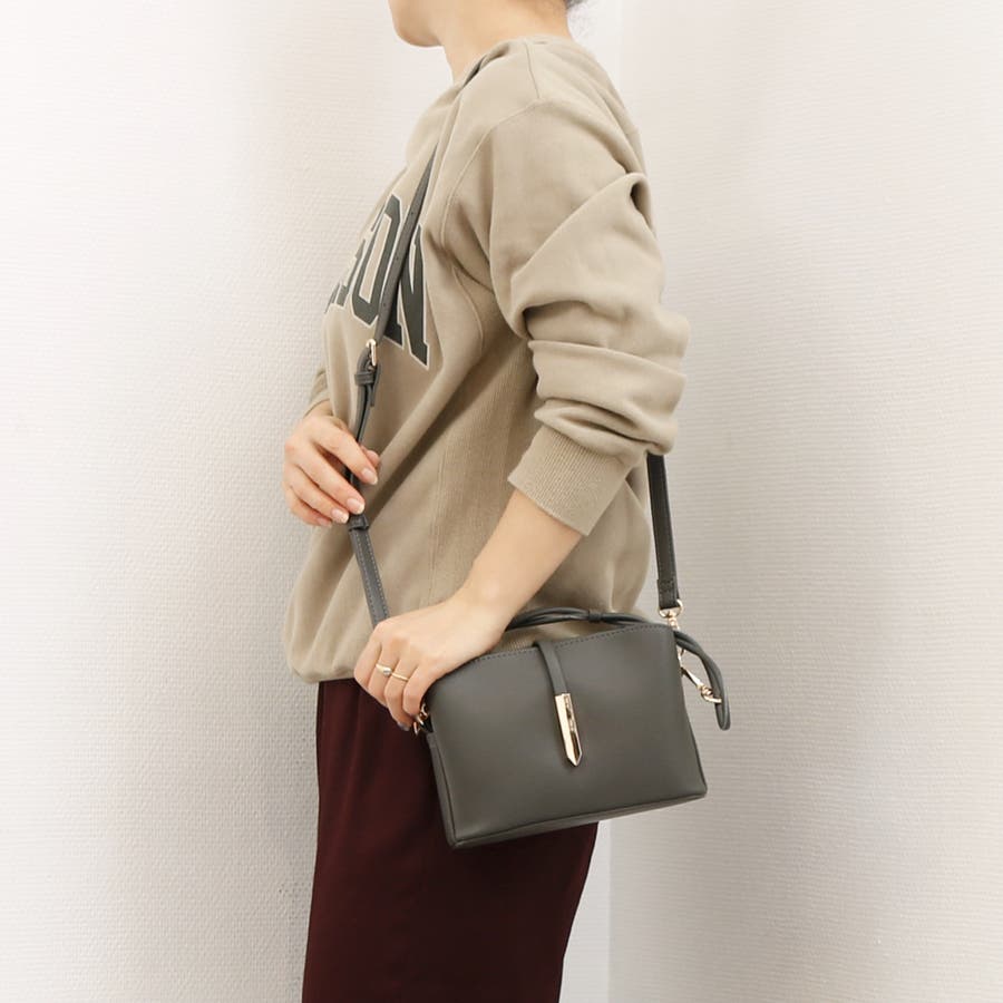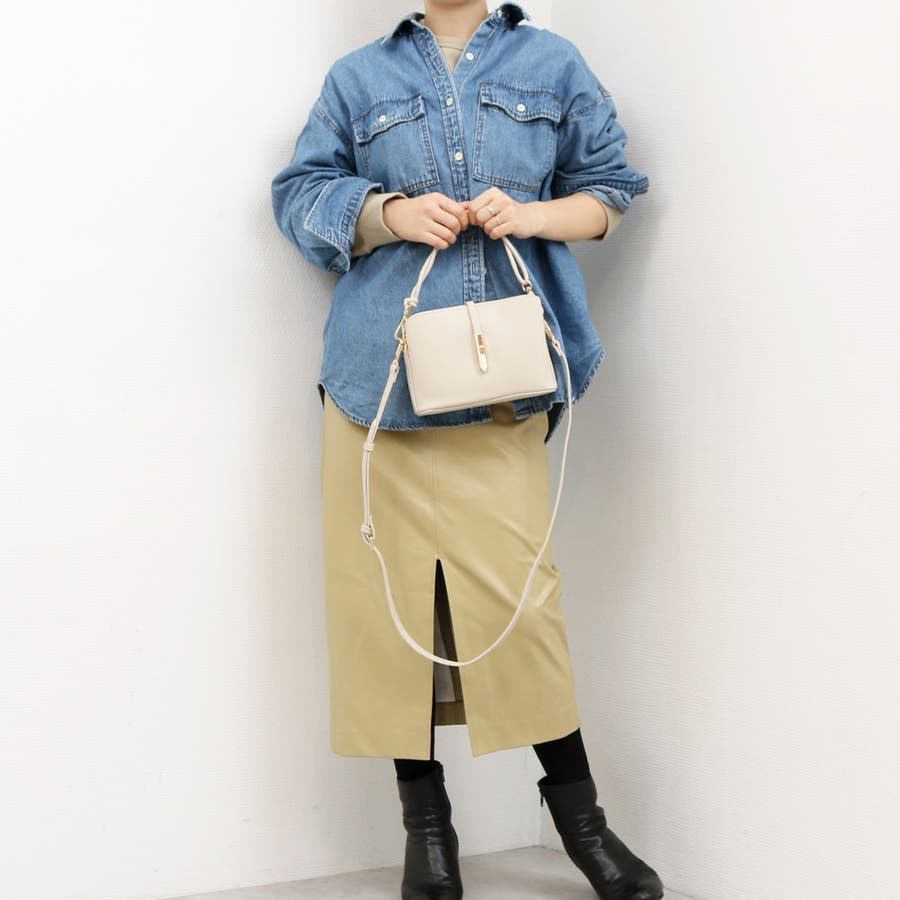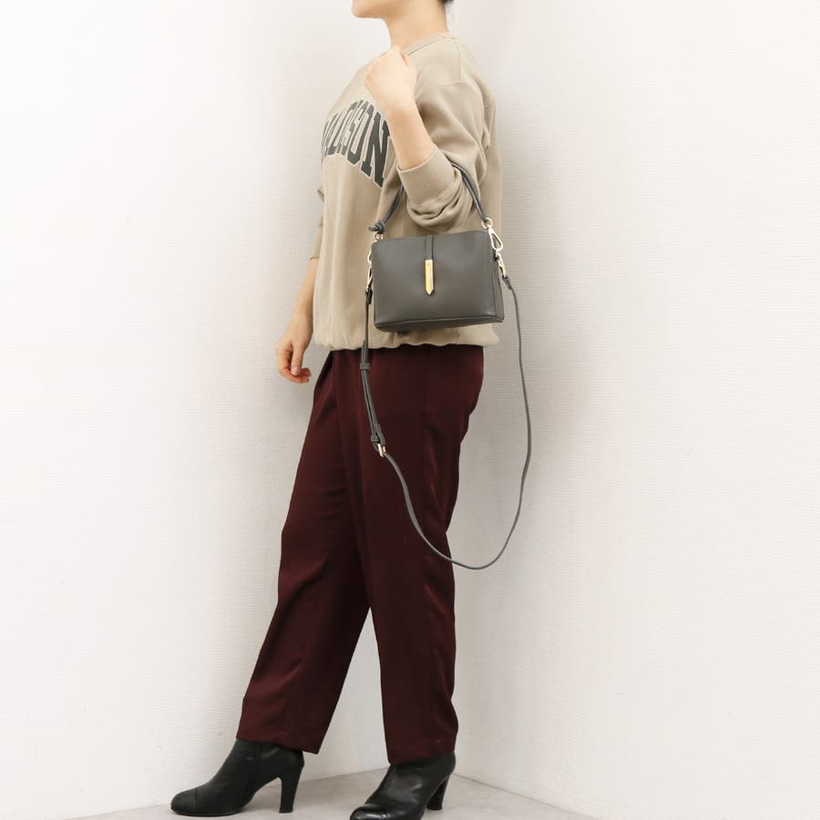 細いベルトフラップのゴールド金具がポイントの2wayショルダーバッグ。