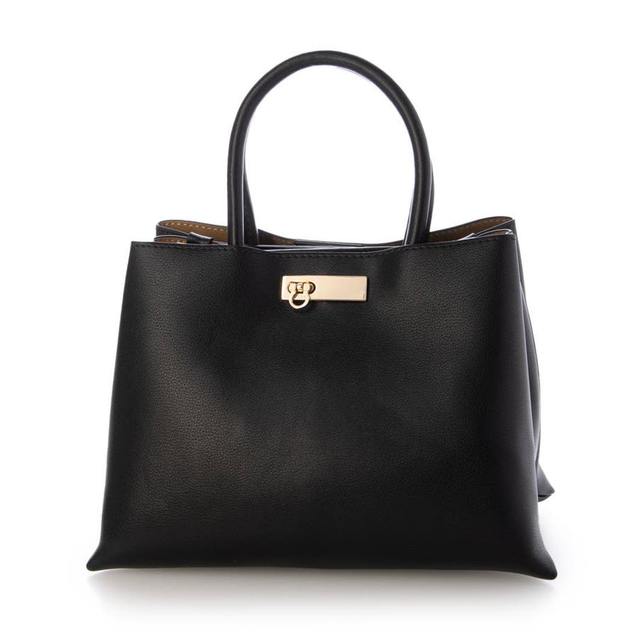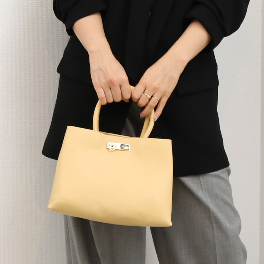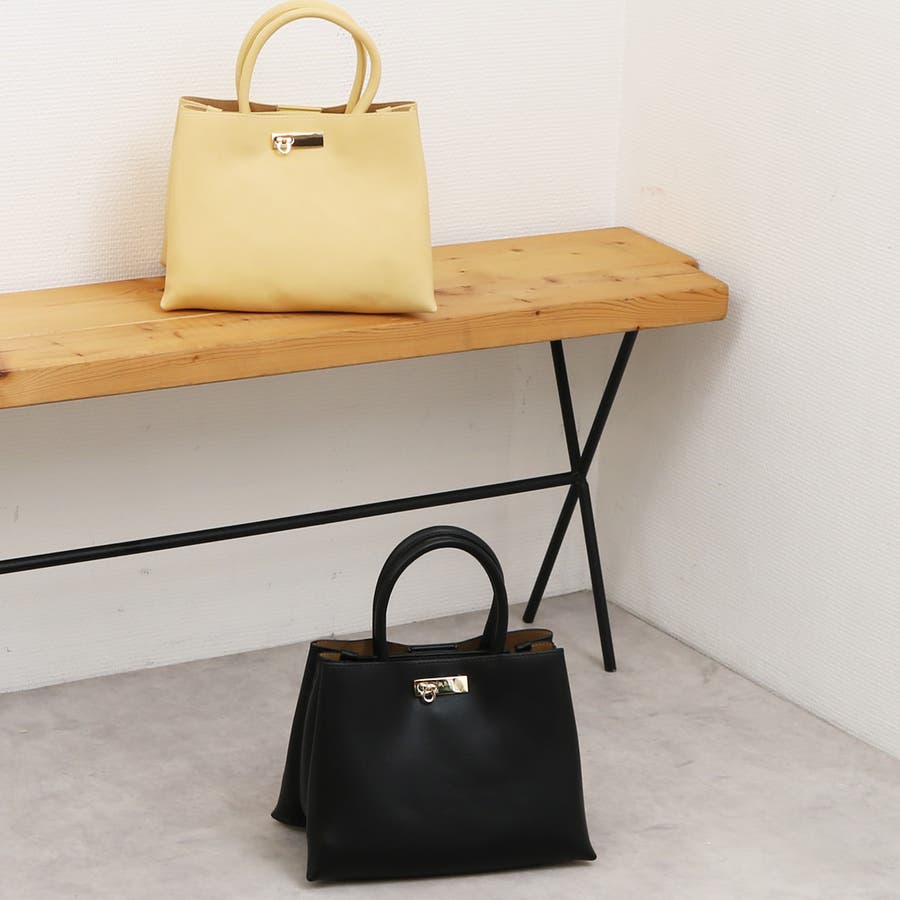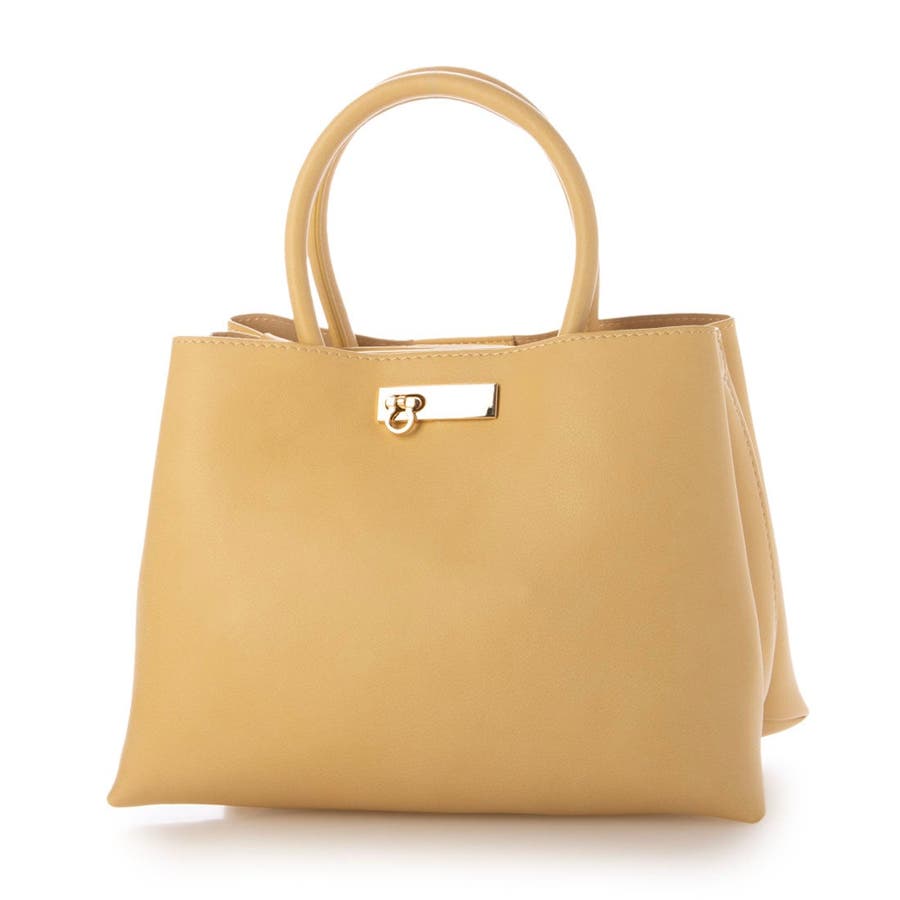 シンプルボディーにアシンメトリーなゴールド金具がワンポイントになった2wayトート。