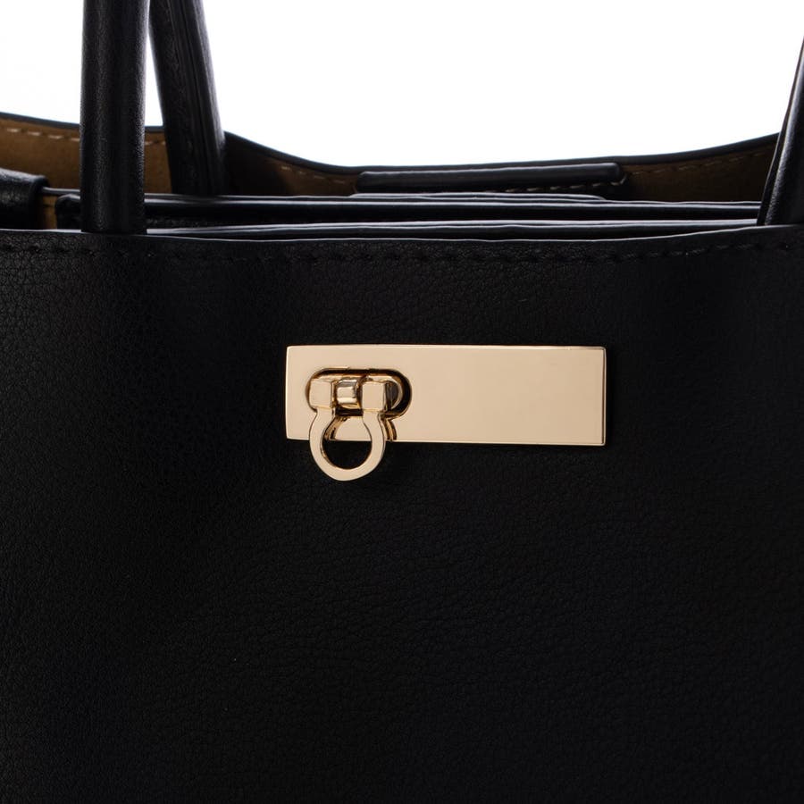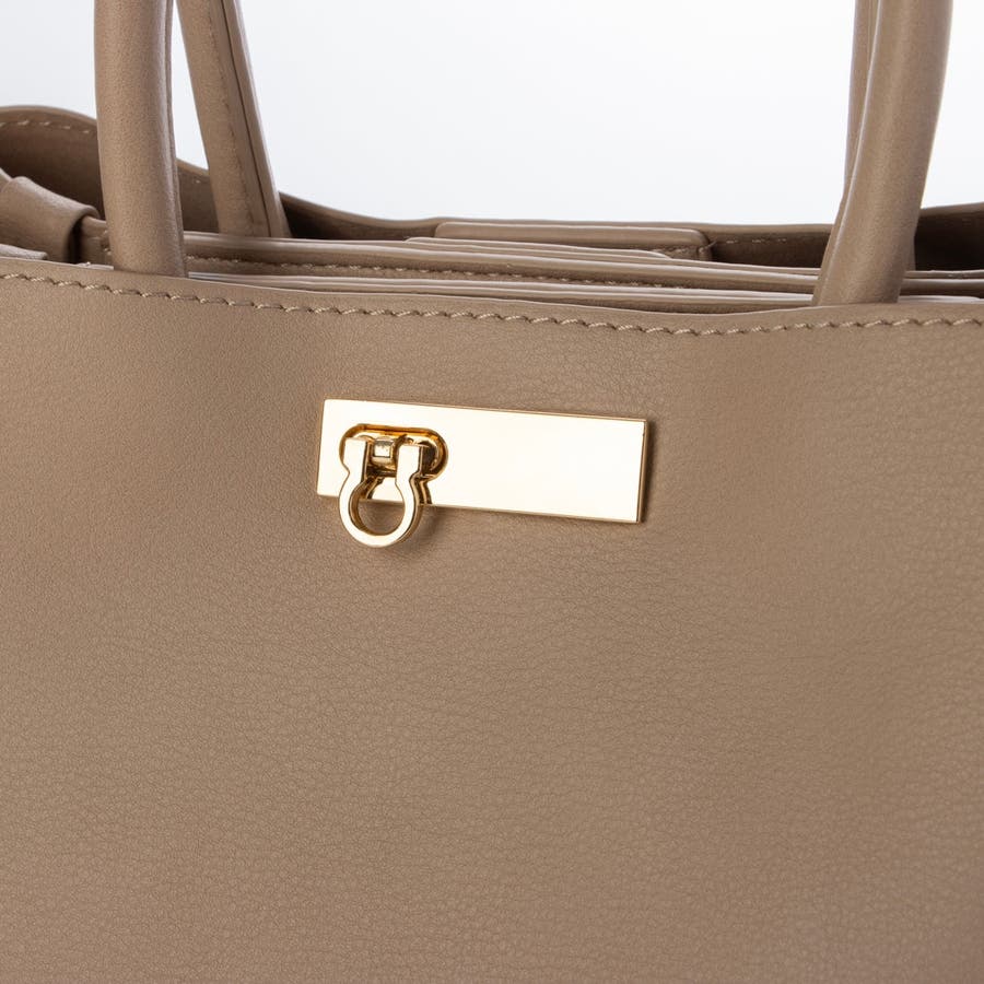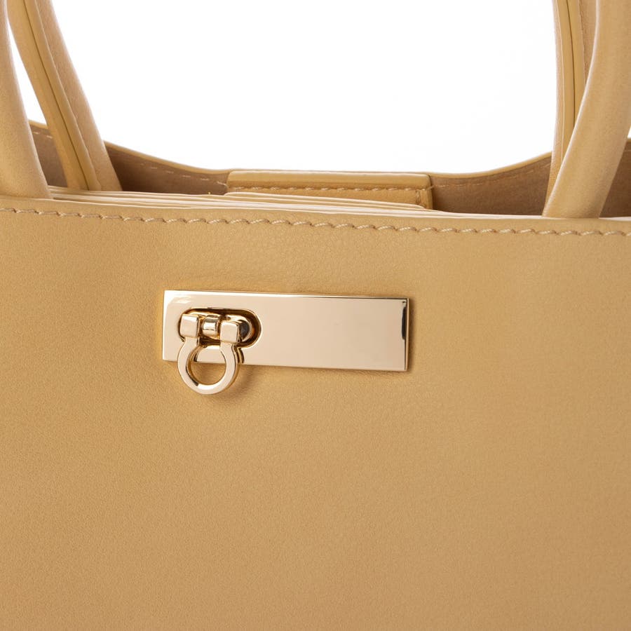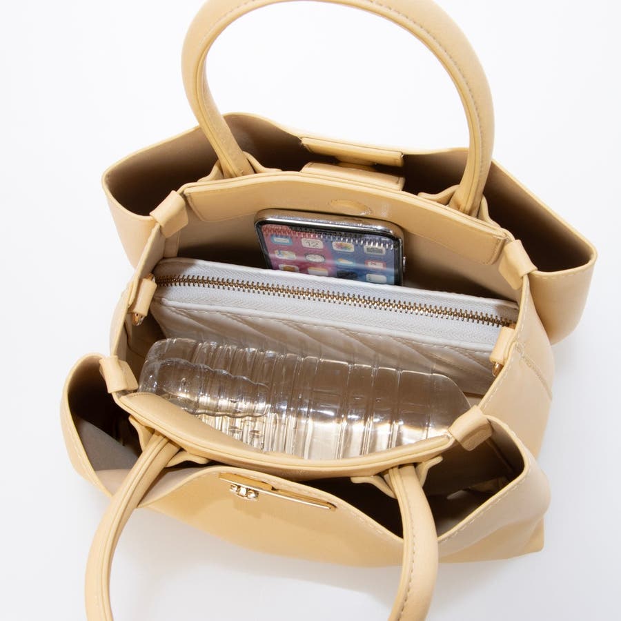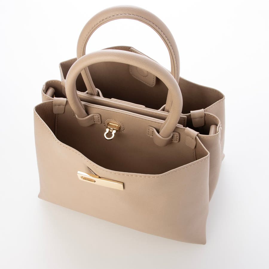 シンプルボディーにアシンメトリーなゴールド金具がワンポイントになった2wayトート。
