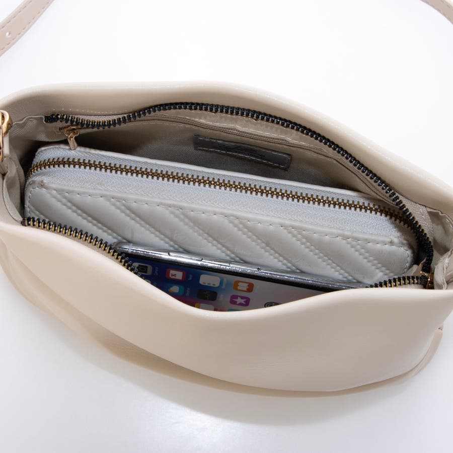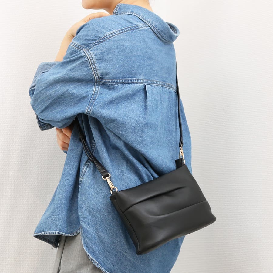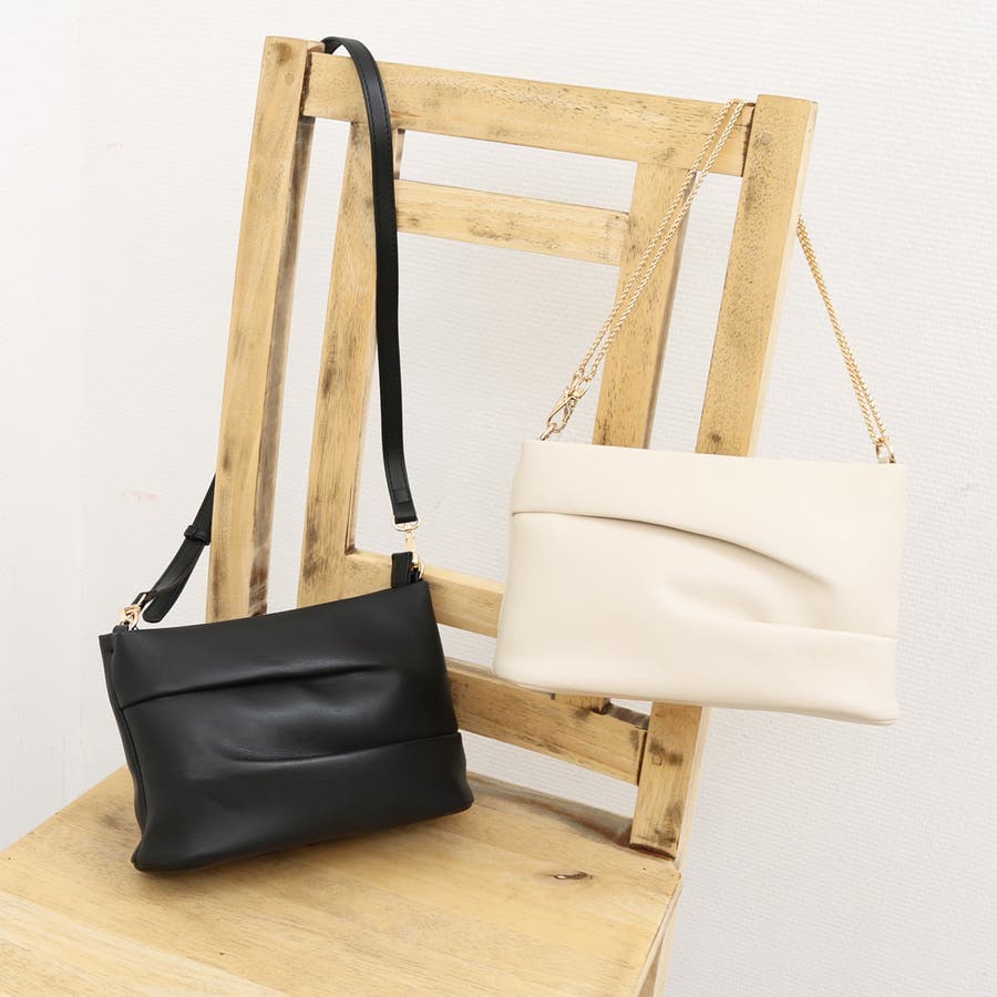 ボディーのギャザーが女性らしさをプラスしてくれるデザインの2wayショルダーバッグ。