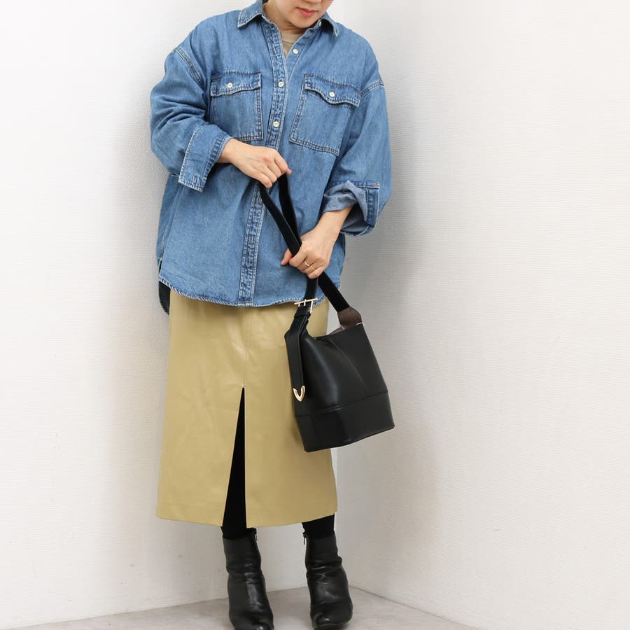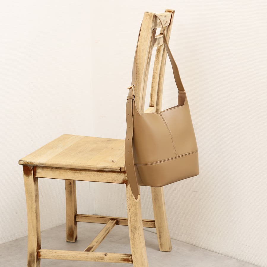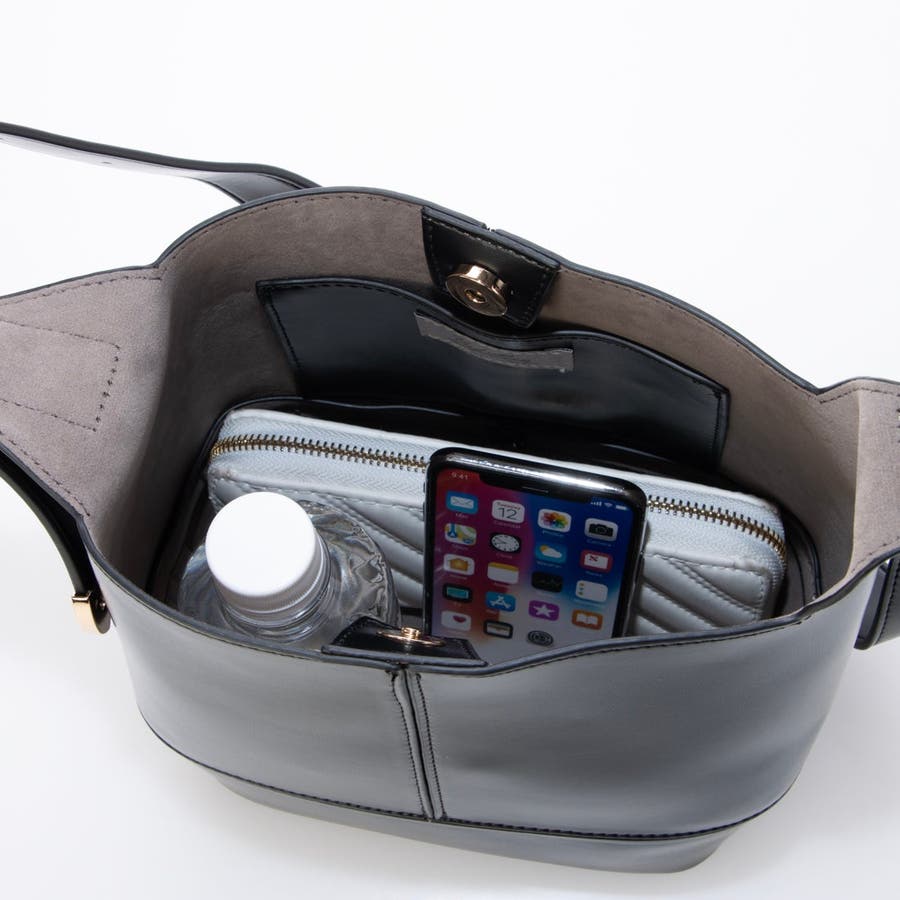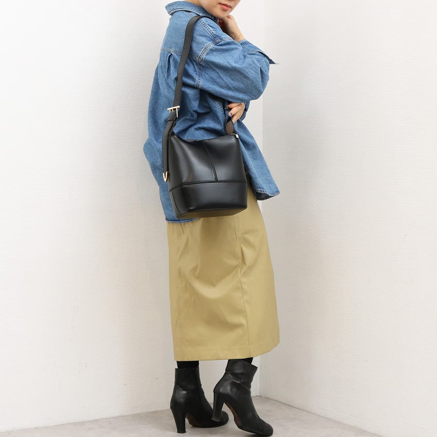 少し光沢のあるきれいめな合成皮革を使用した縦型ショルダーバッグ。
