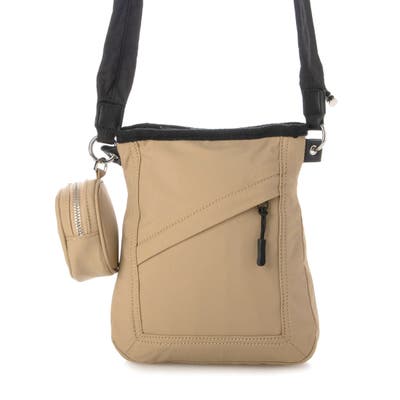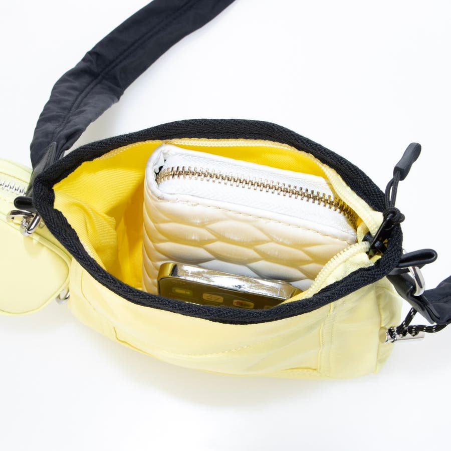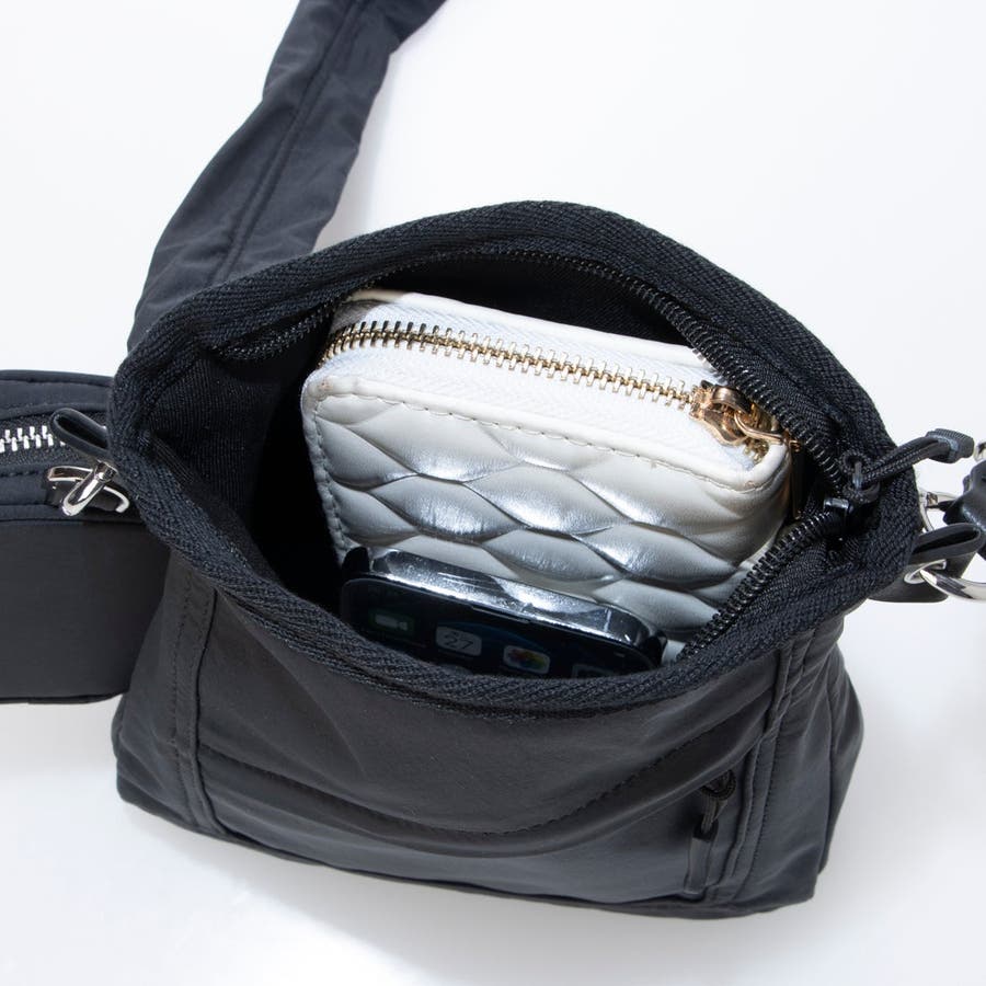 カシュカシュ cachecache ミニポーチ付きギャザーショルダーナイロンバッ…