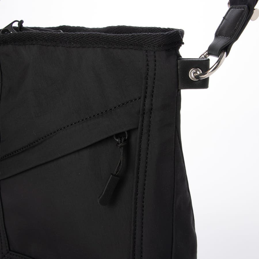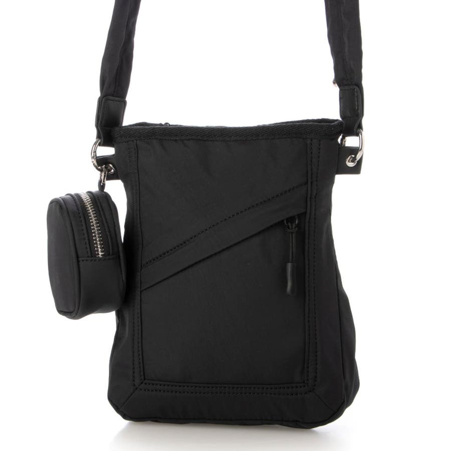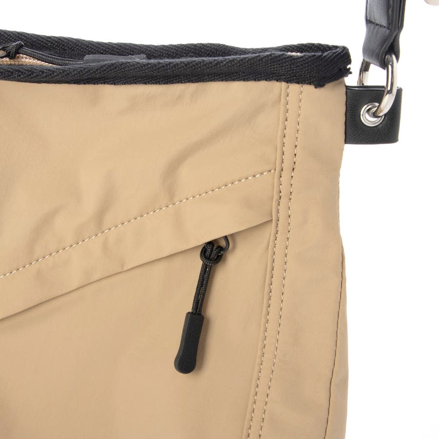 パラコード使いや斜めZIPのポケットなどがアウトドアテイストをイメージさせるショルダーバッグ。