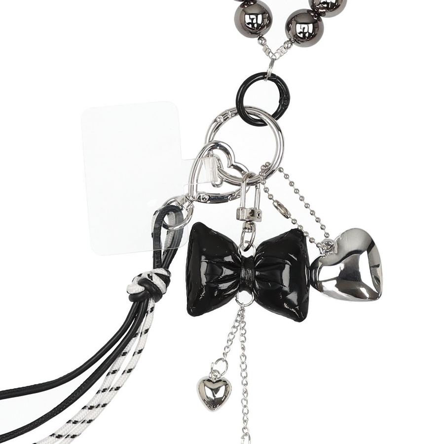リボン、ハート、パールなど女性が好きそうなアイテムをあえてモノトーンにすることで大人も持てるチャームになりました。