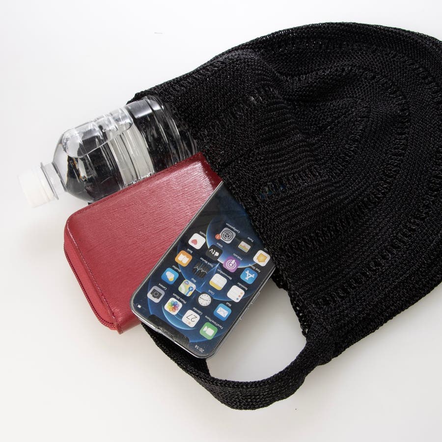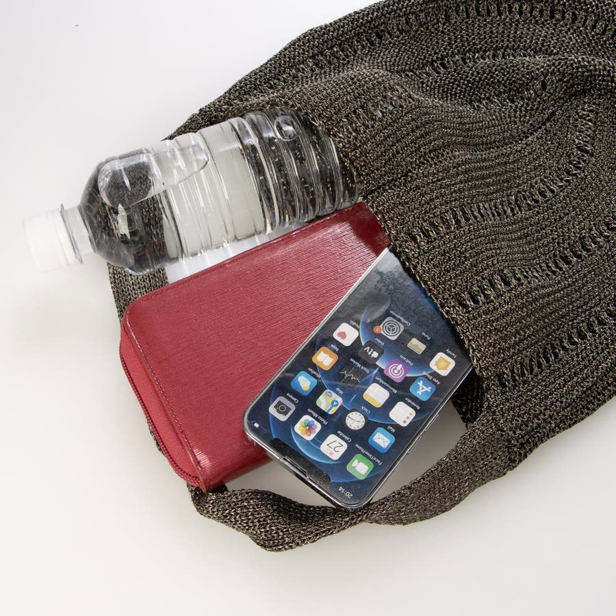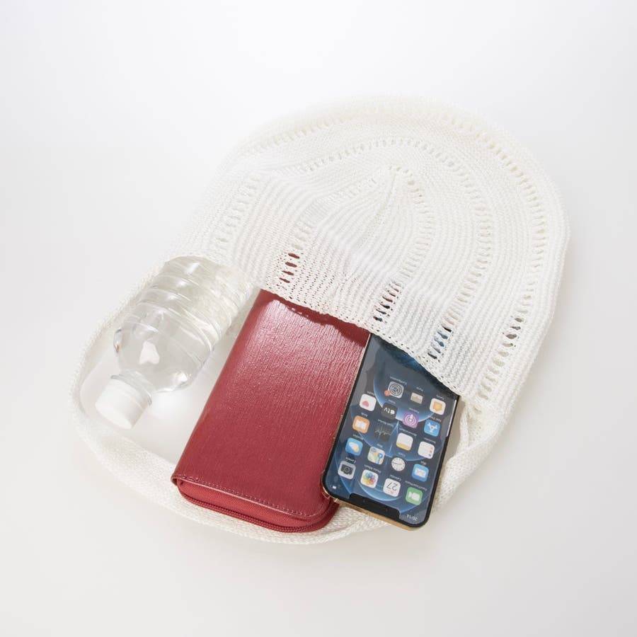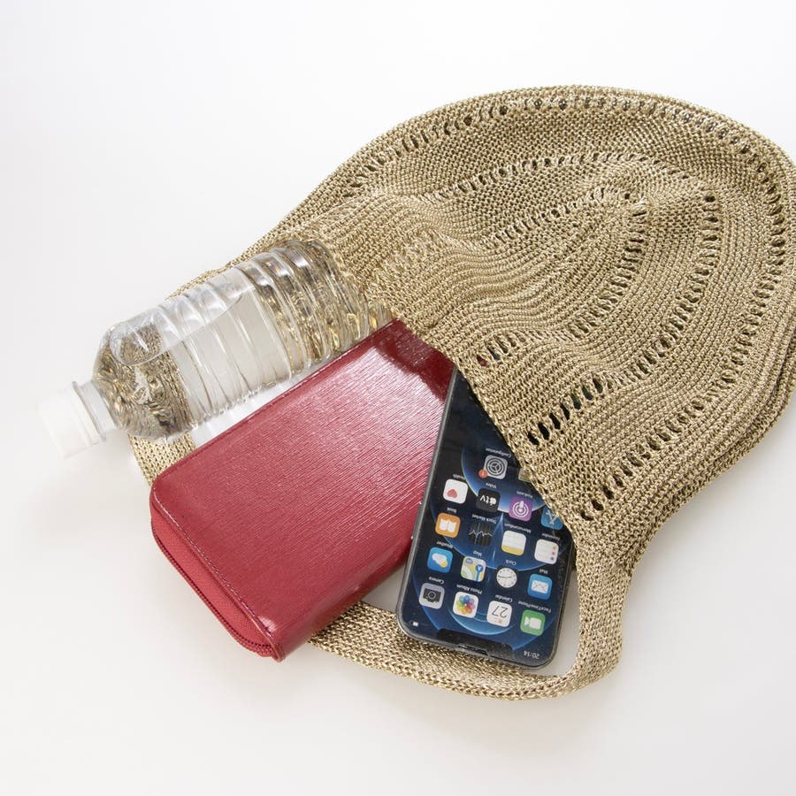 ・伸縮性のある編み方をしております。物を入れると縦に伸びますが、平らにして横に広げると元のサイズにほぼ戻ります。