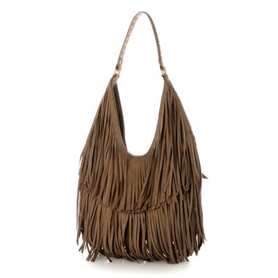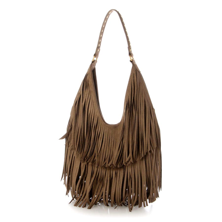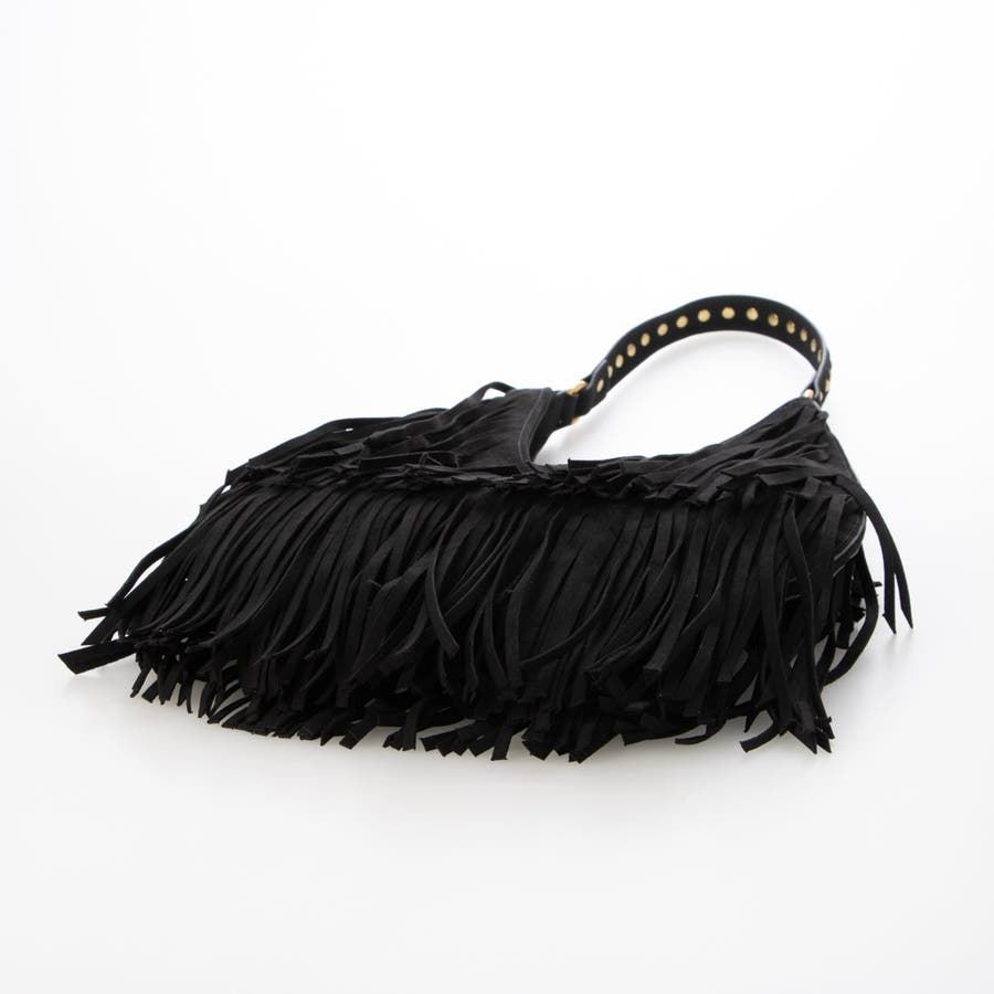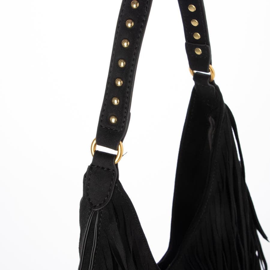 ボリュームのあるフリンジとショルダー部分のスタッズがトレンド感たっぷりのワンショルダーバッグ。