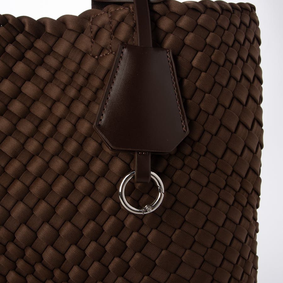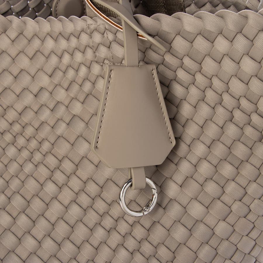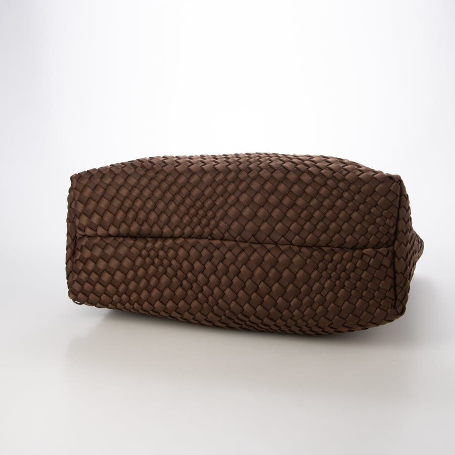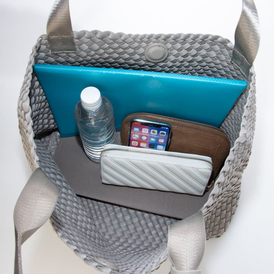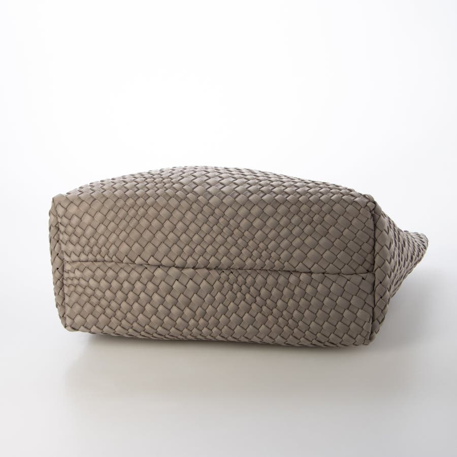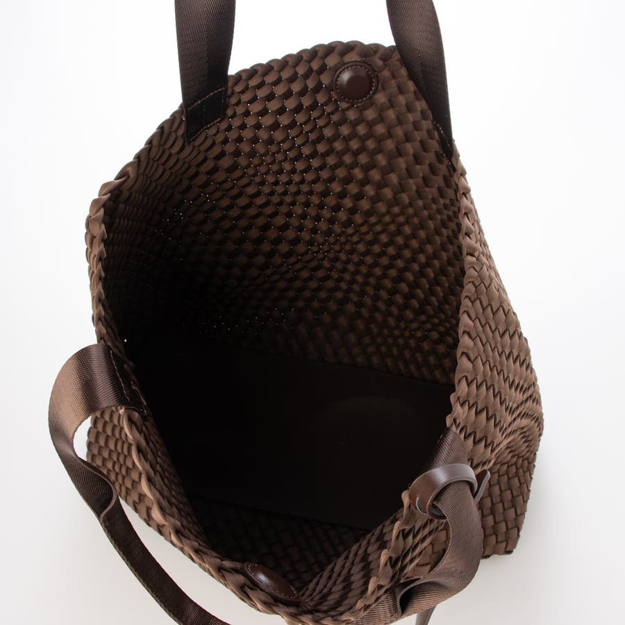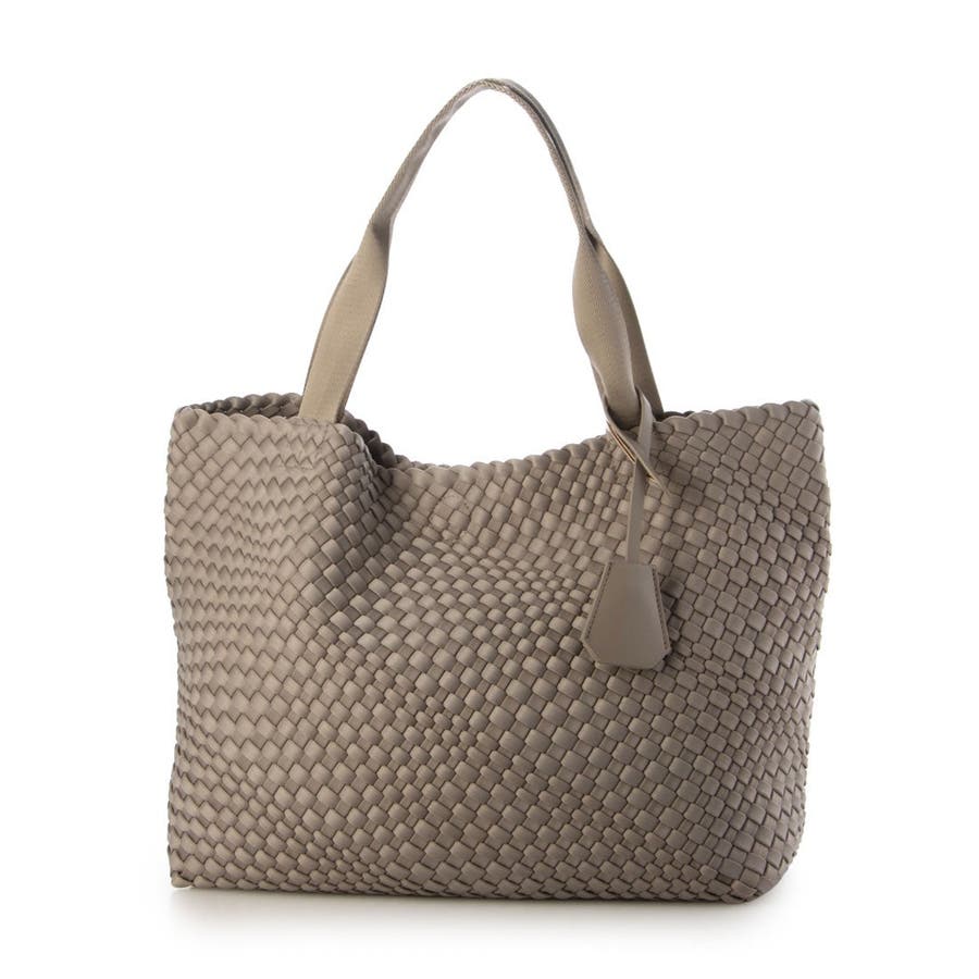 ウェットスーツ素材を使用した大人っぽくトレンド感のあるメッシュ編みトートバッグ。