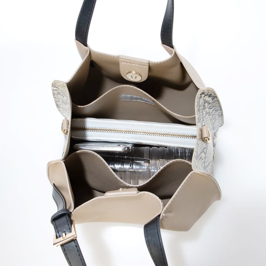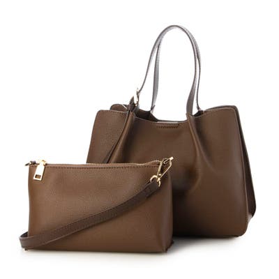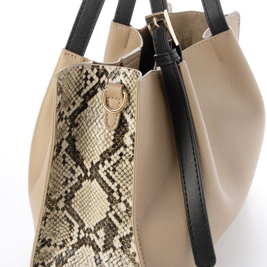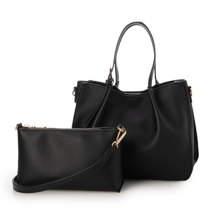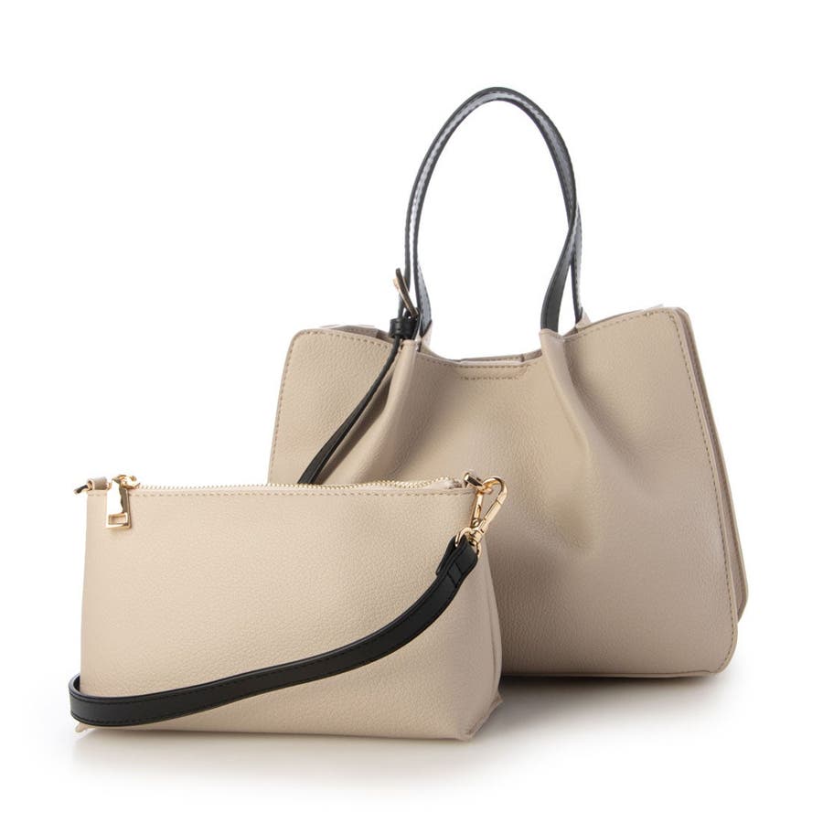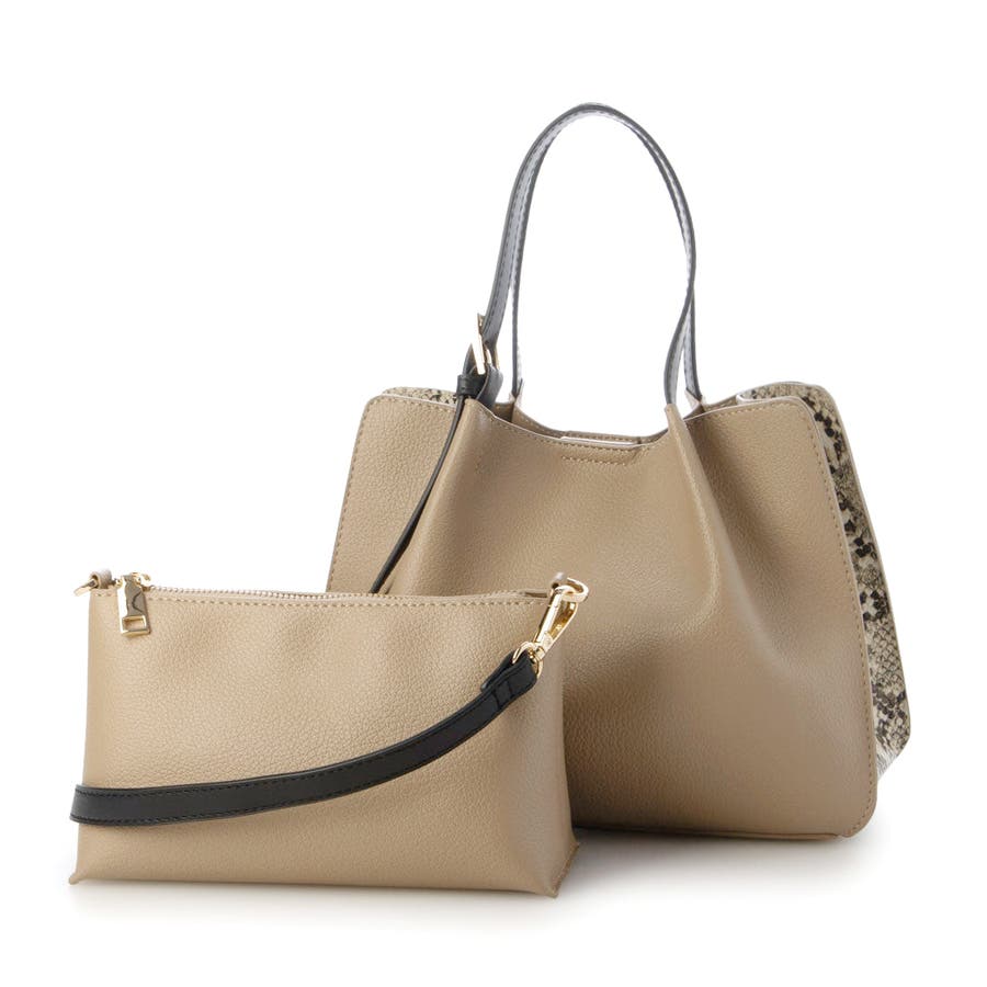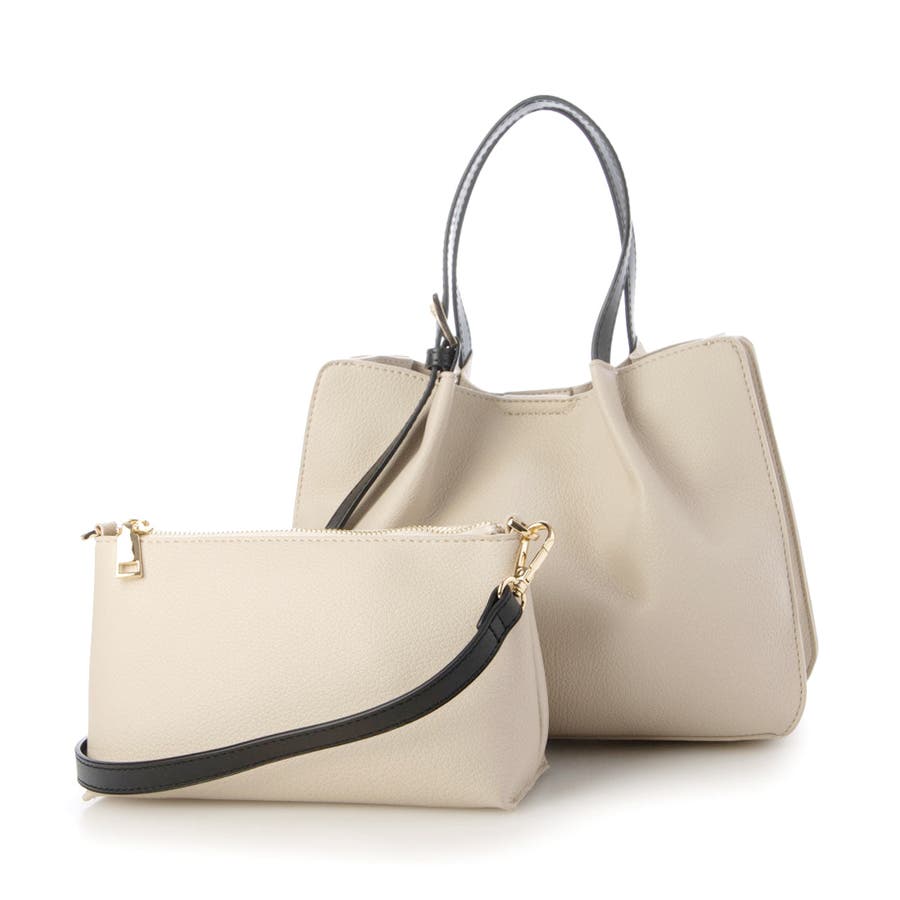 カシュカシュ / フェイクレザーショルダーバッグ付スクエアトート