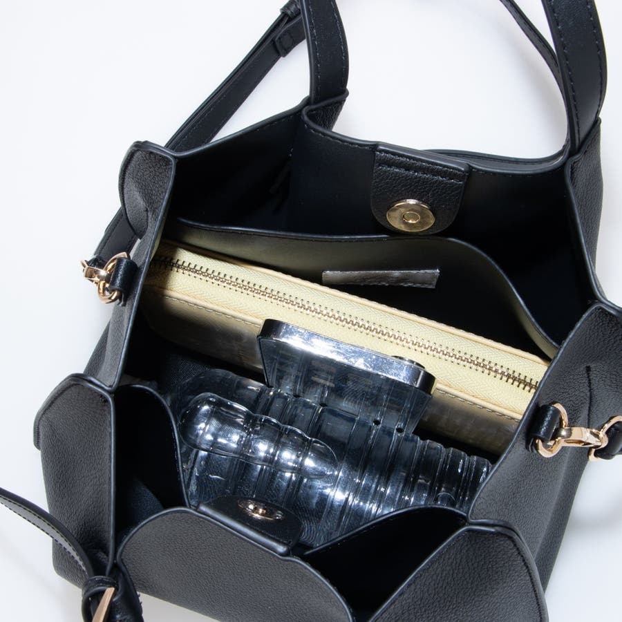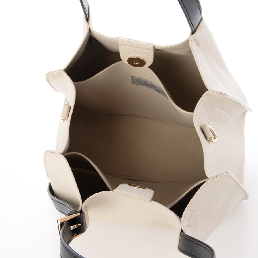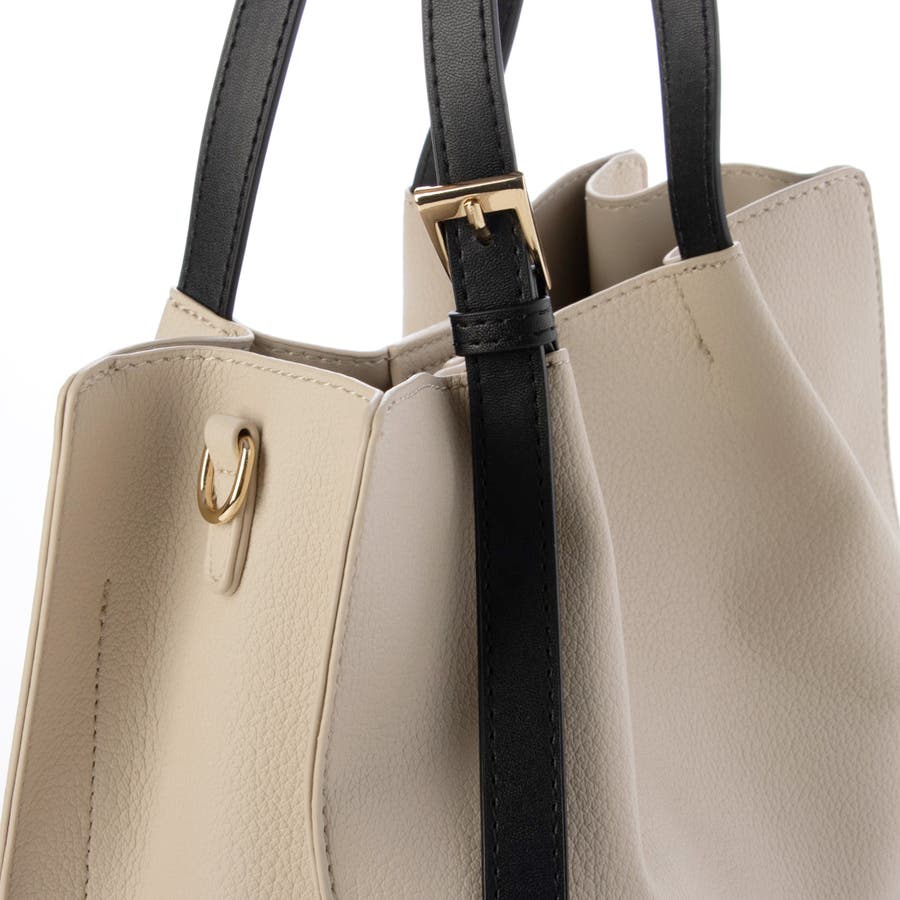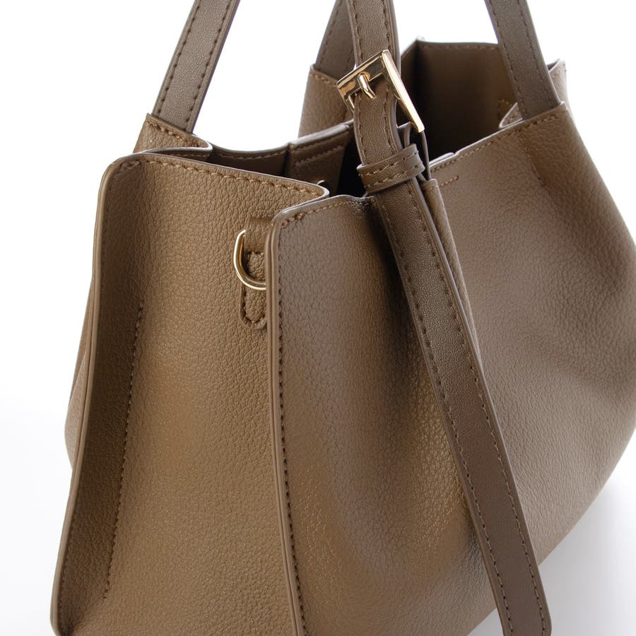 細めのハンドルとバックルがアクセントになったデザインでシンプルながら大人っぽさを演出。