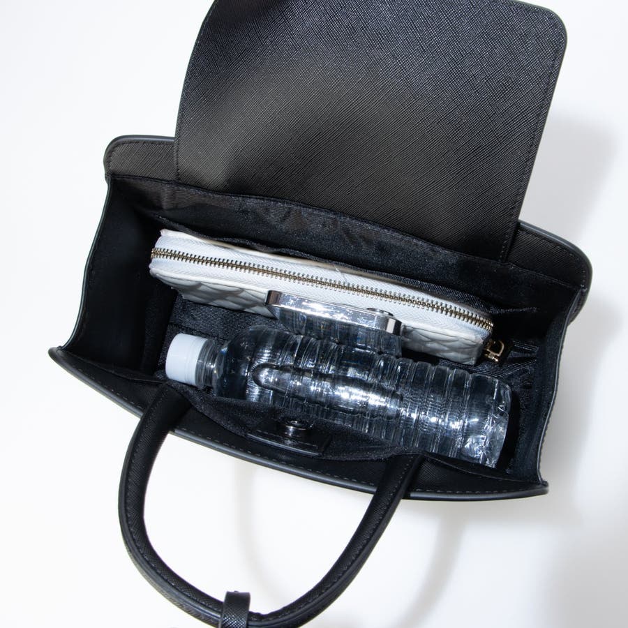 メインのハンドバッグは、膝の上にすっきり収まる上品なサイズ感。