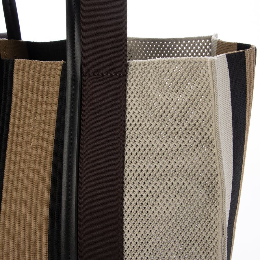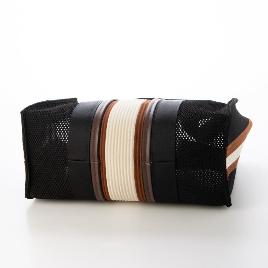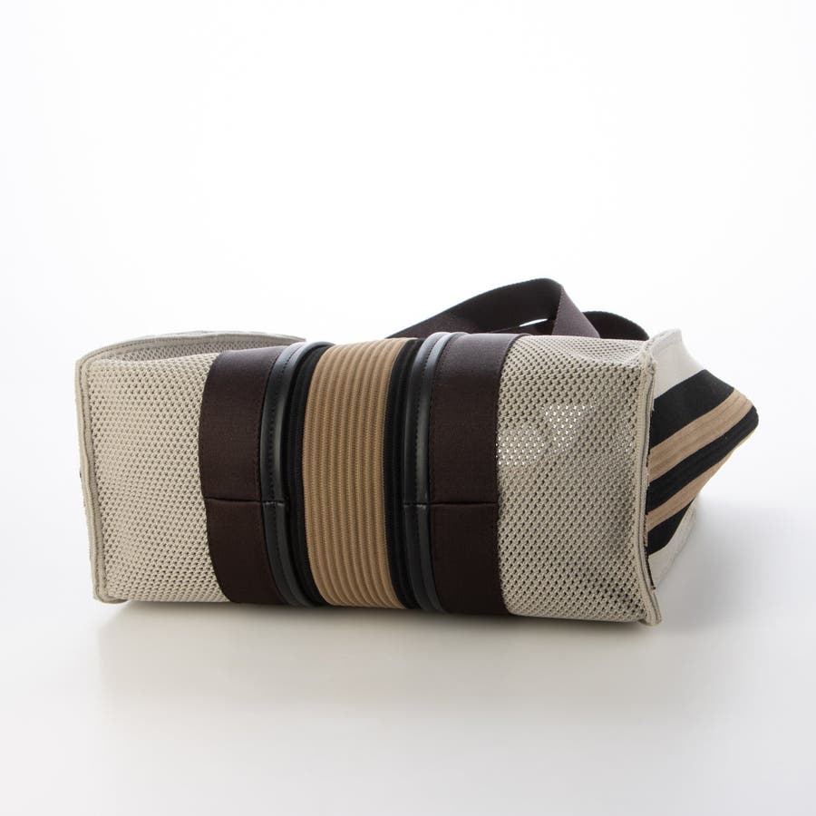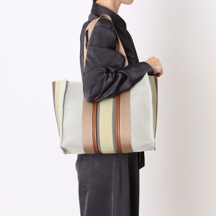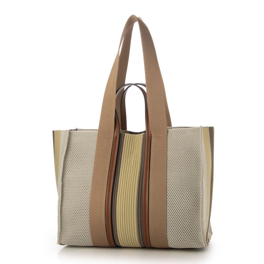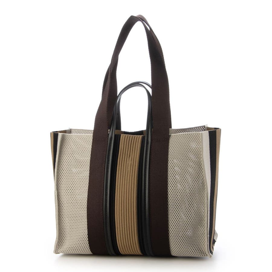 涼しげなメッシュと立体的な表情を持つ縦畝ジャガード生地を大胆に組み合わせた、トレンド感あふれるトートバッグです。
