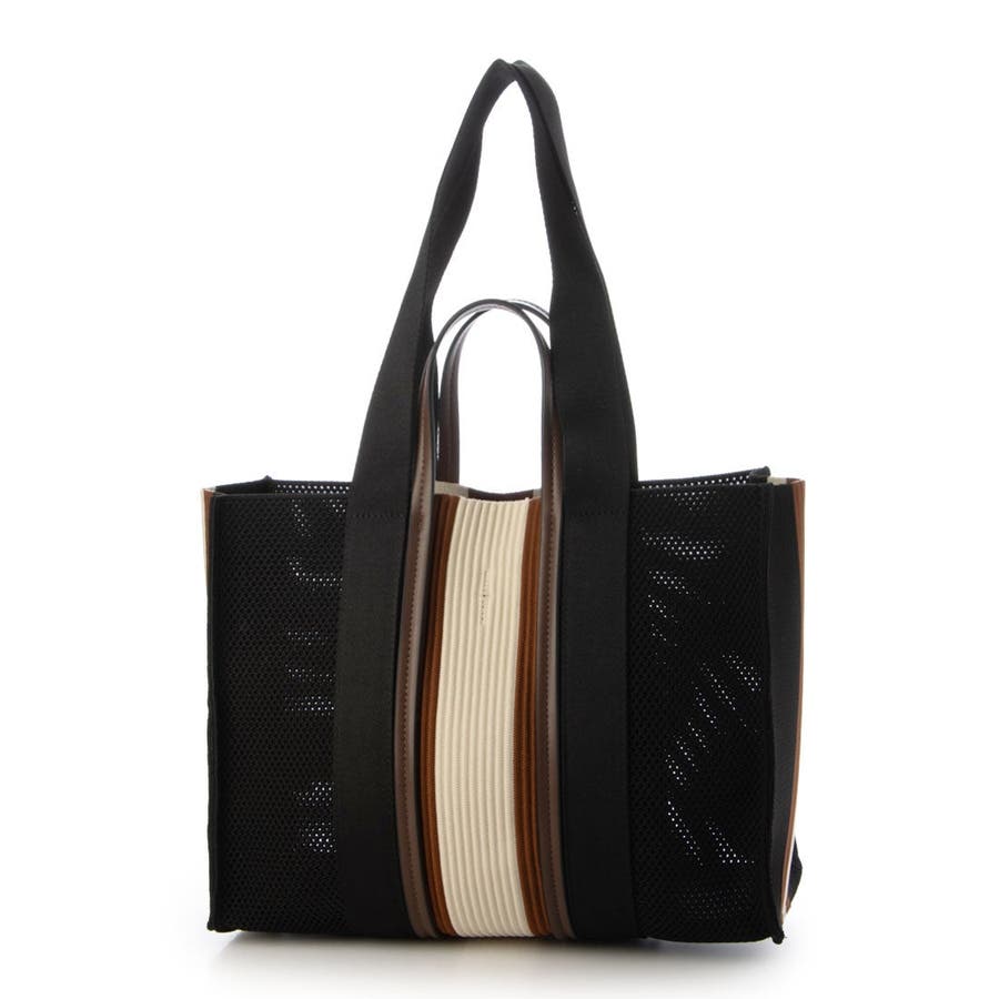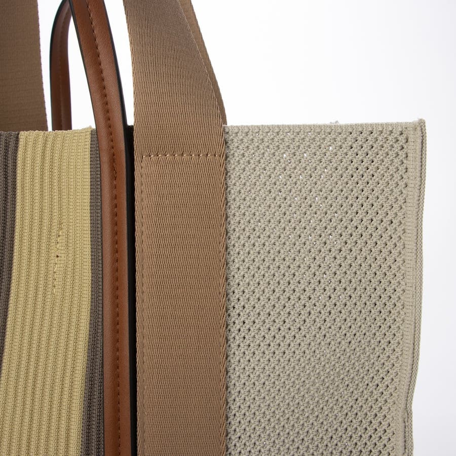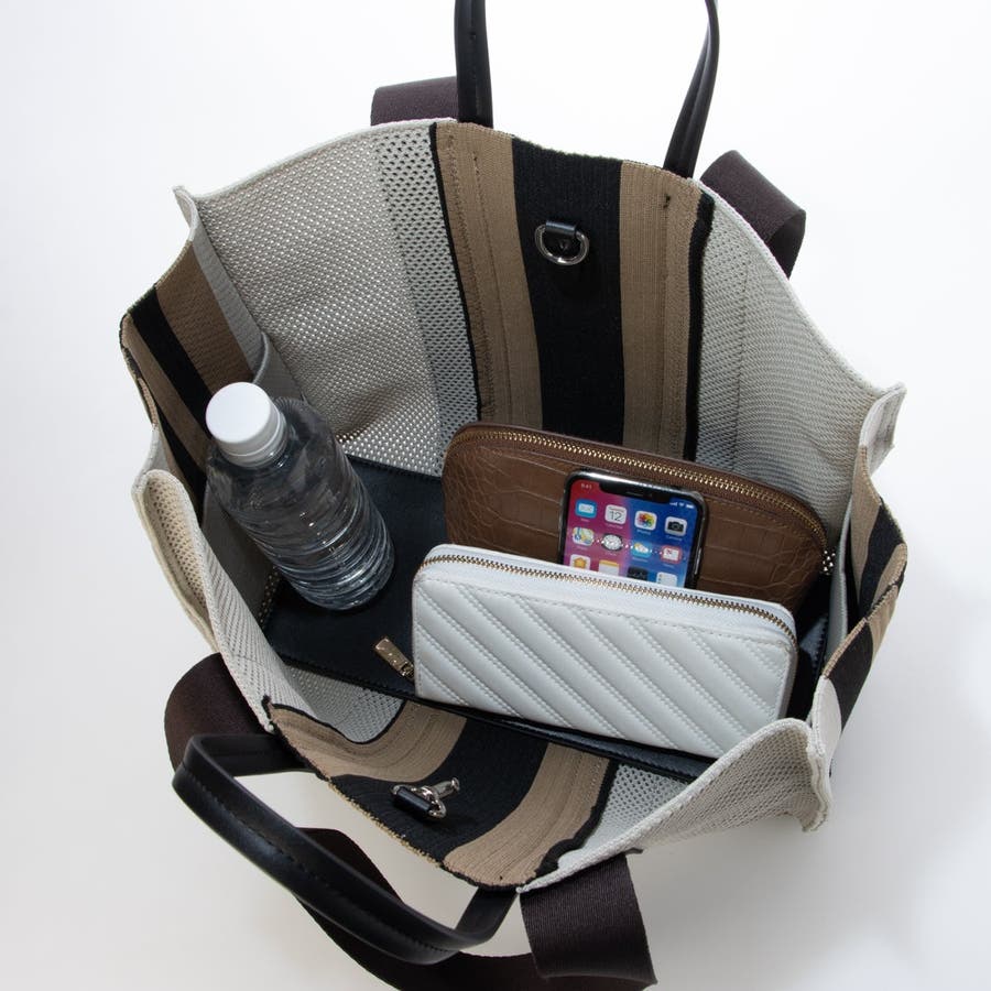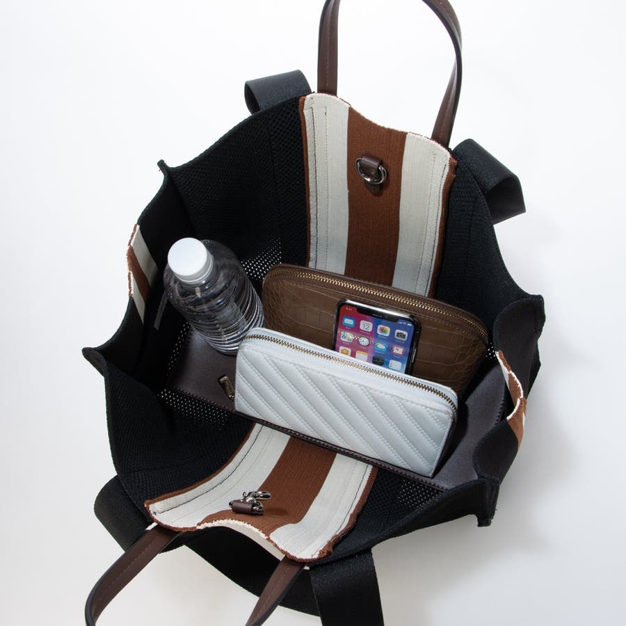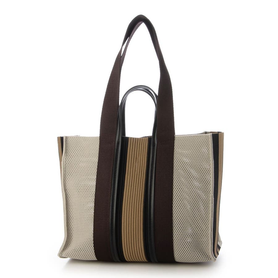 涼しげなメッシュと立体的な表情を持つ縦畝ジャガード生地を大胆に組み合わせた、トレンド感あふれるトートバッグです。