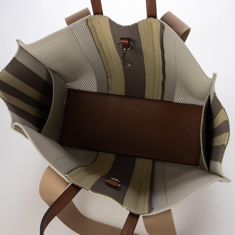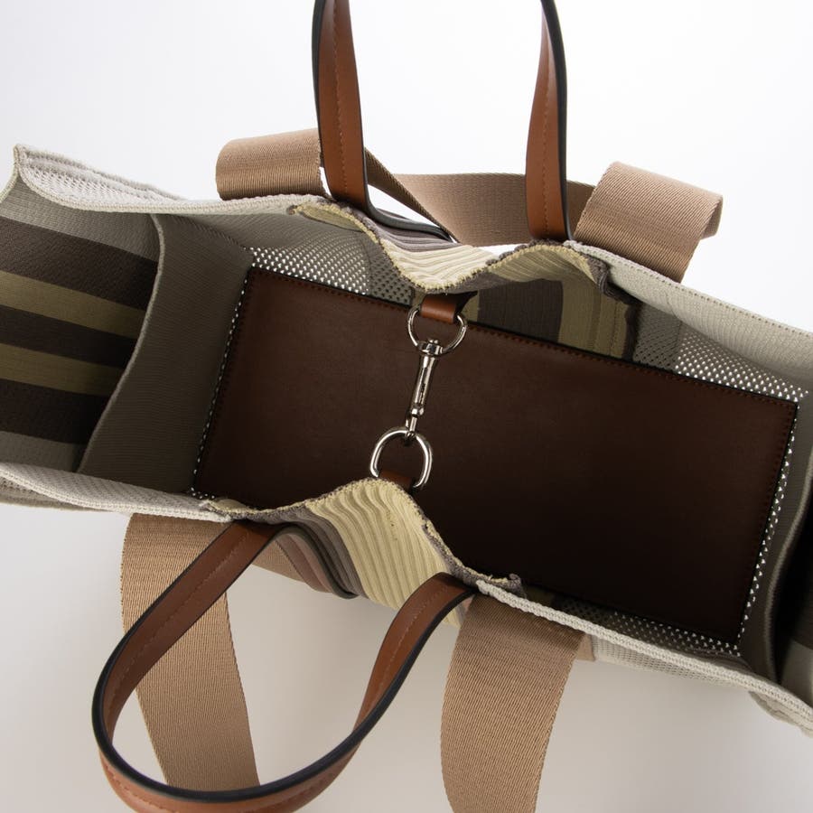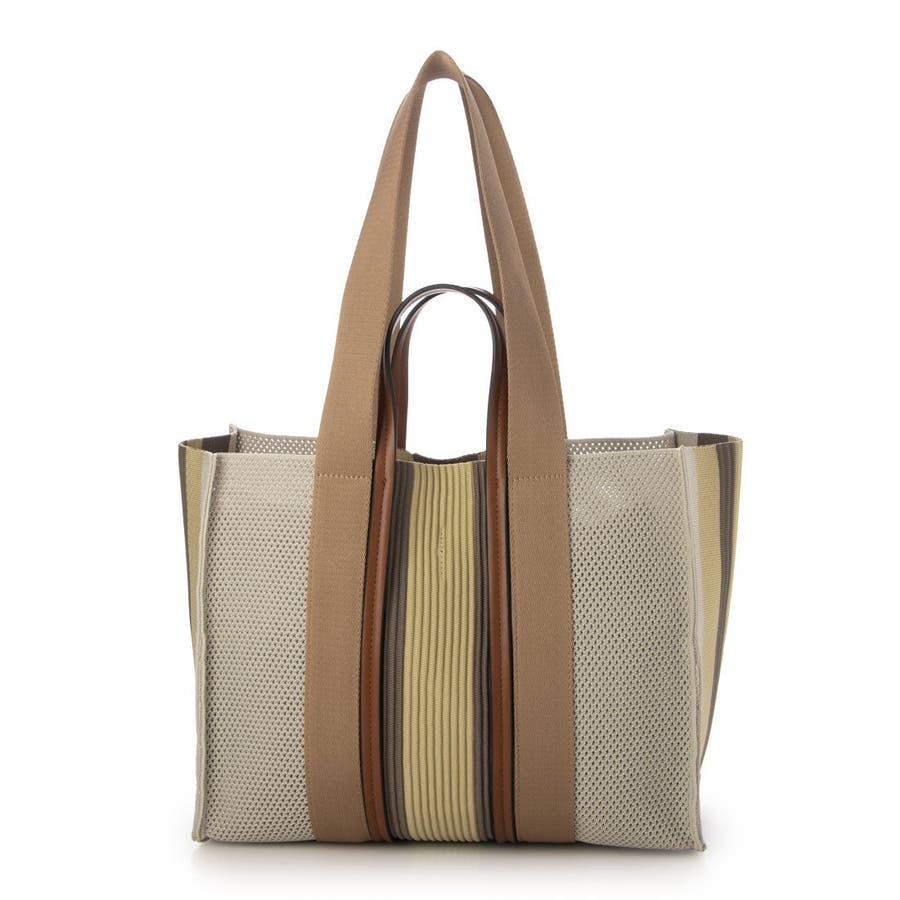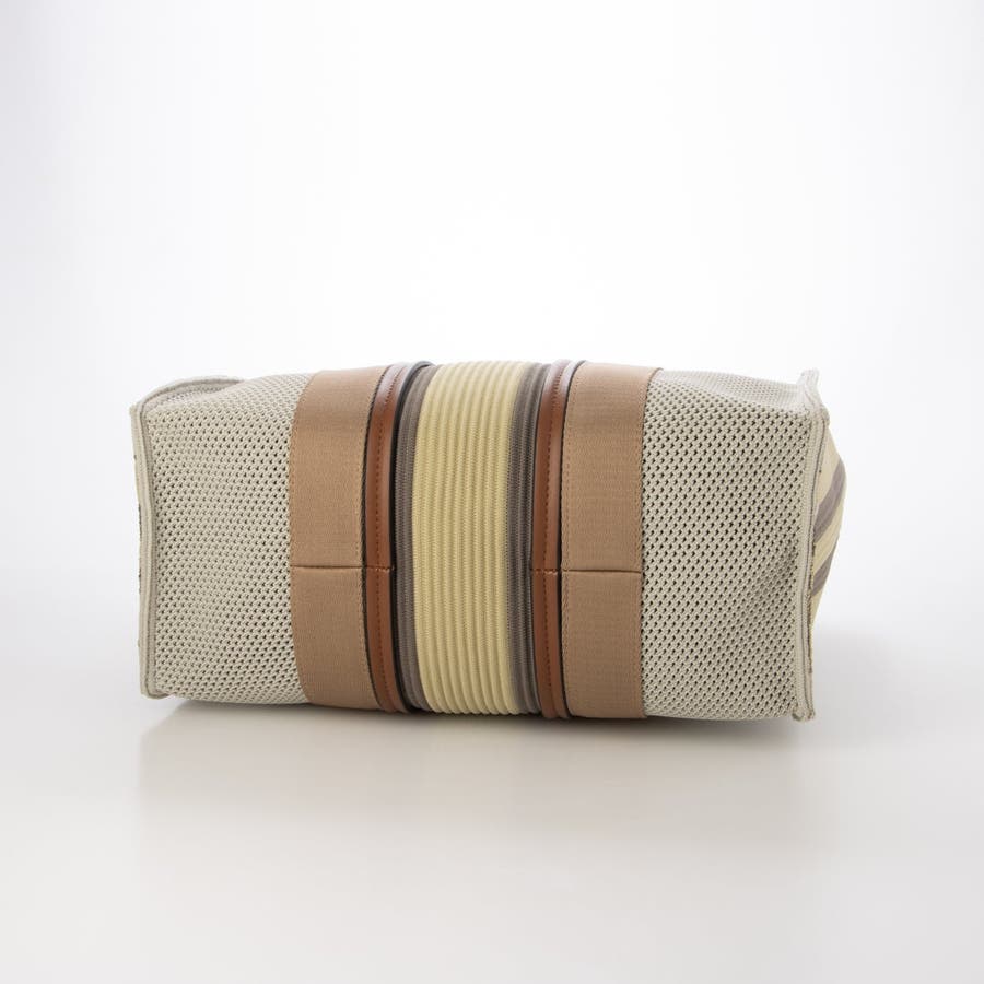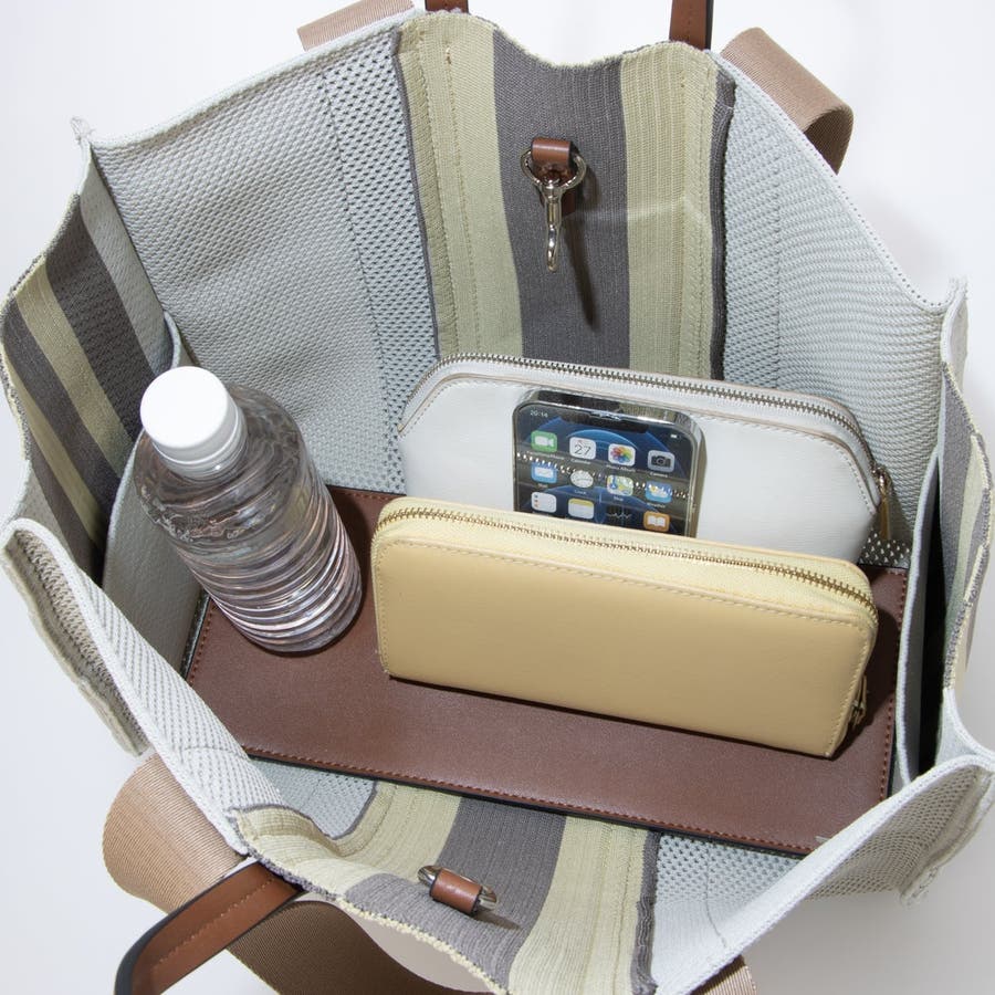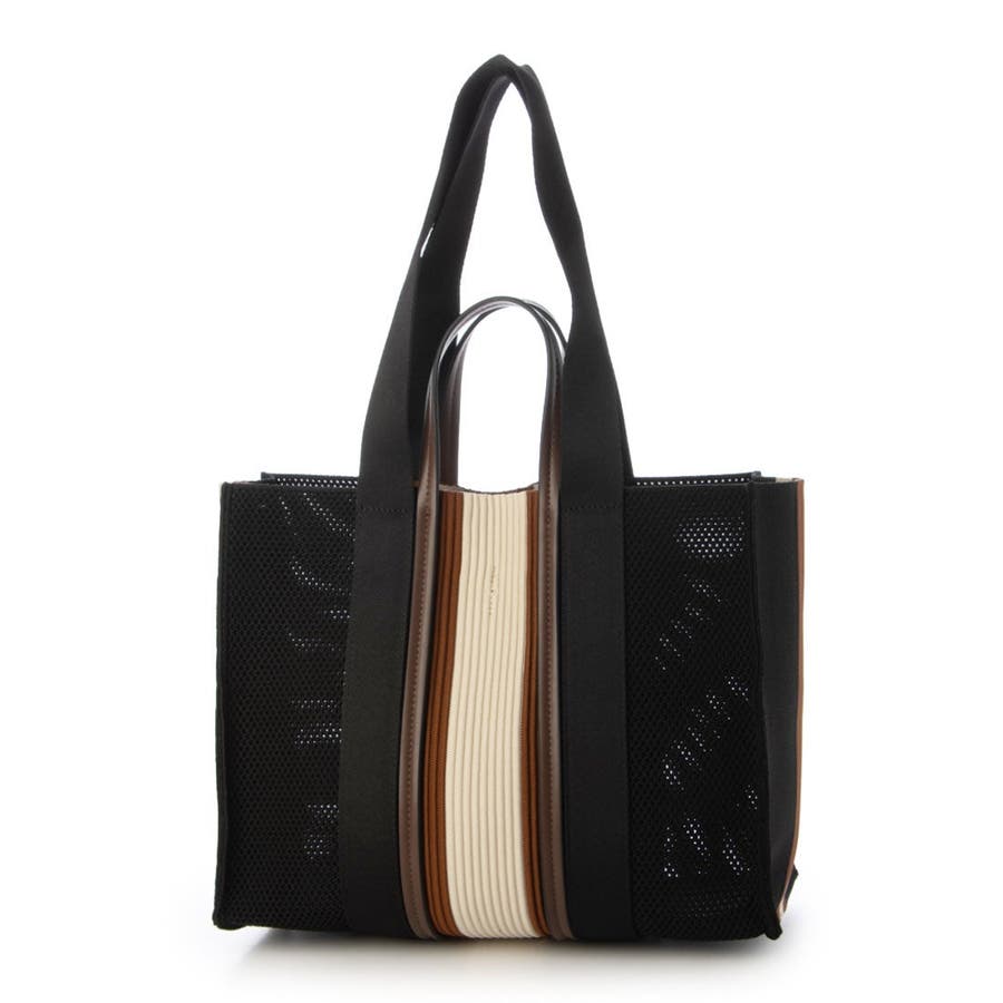 涼しげなメッシュと立体的な表情を持つ縦畝ジャガード生地を大胆に組み合わせた、トレンド感あふれるトートバッグです。