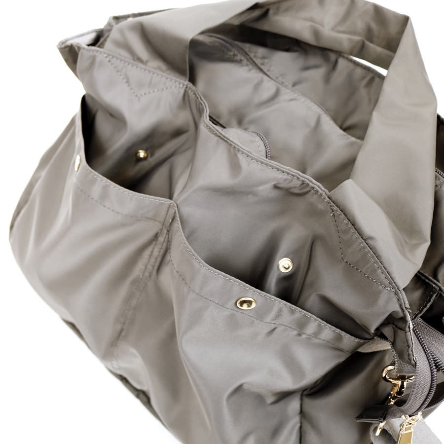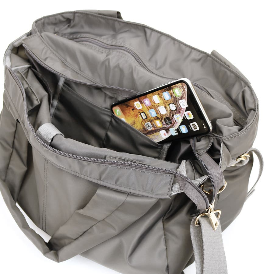 内部は2層構造で整理しやすく、たくさんのポケット付きなので小物もすっきり収納可能。